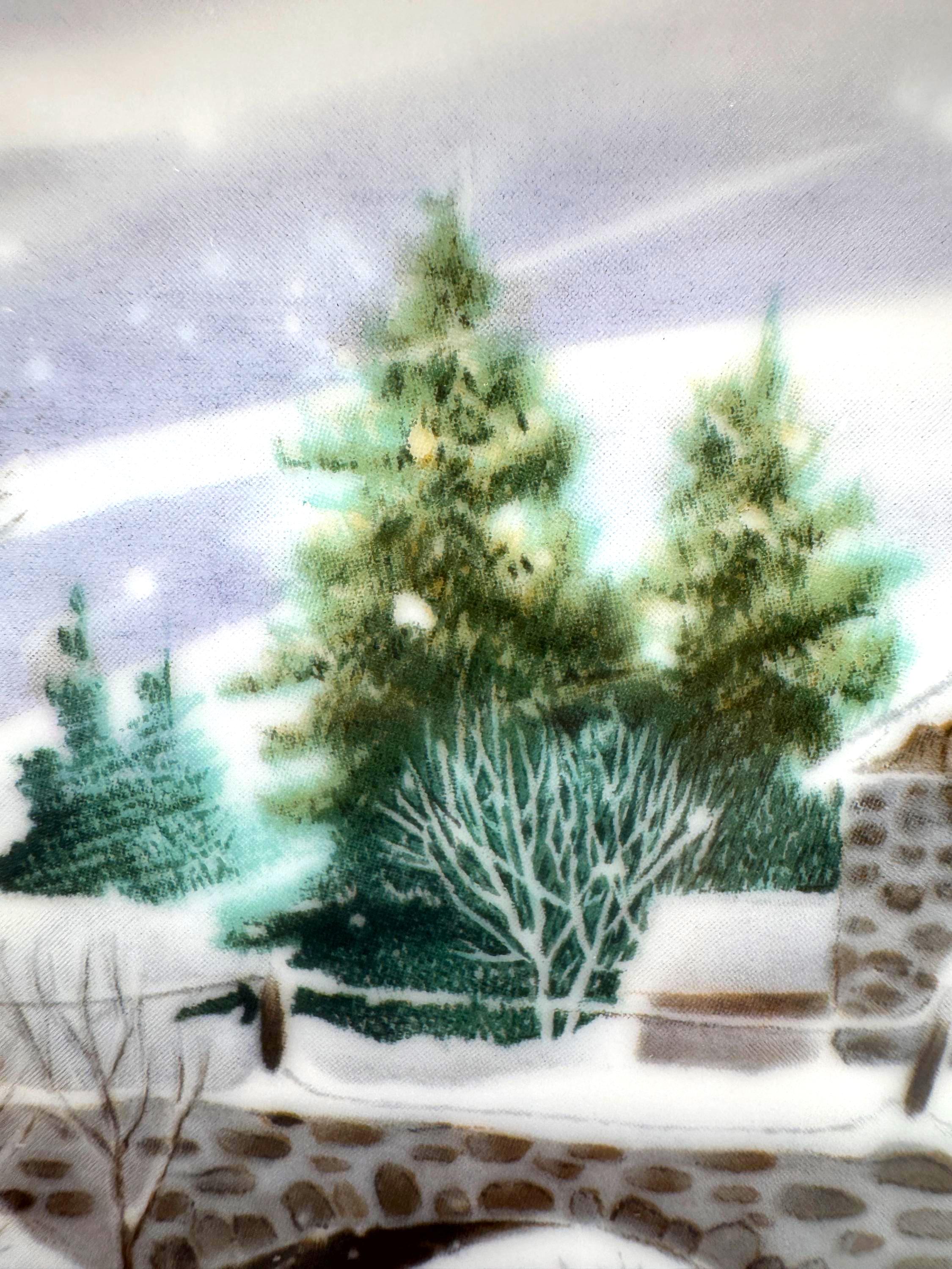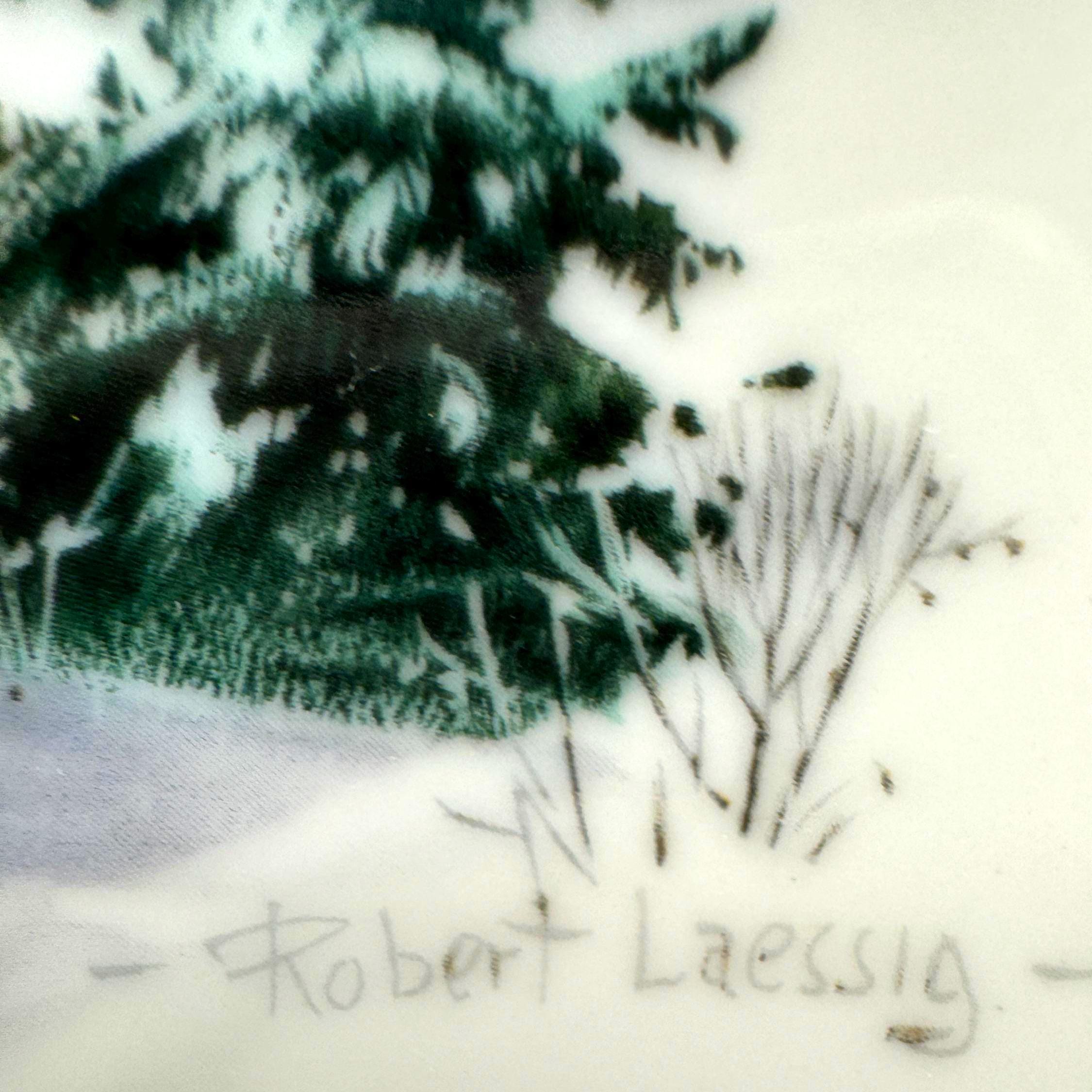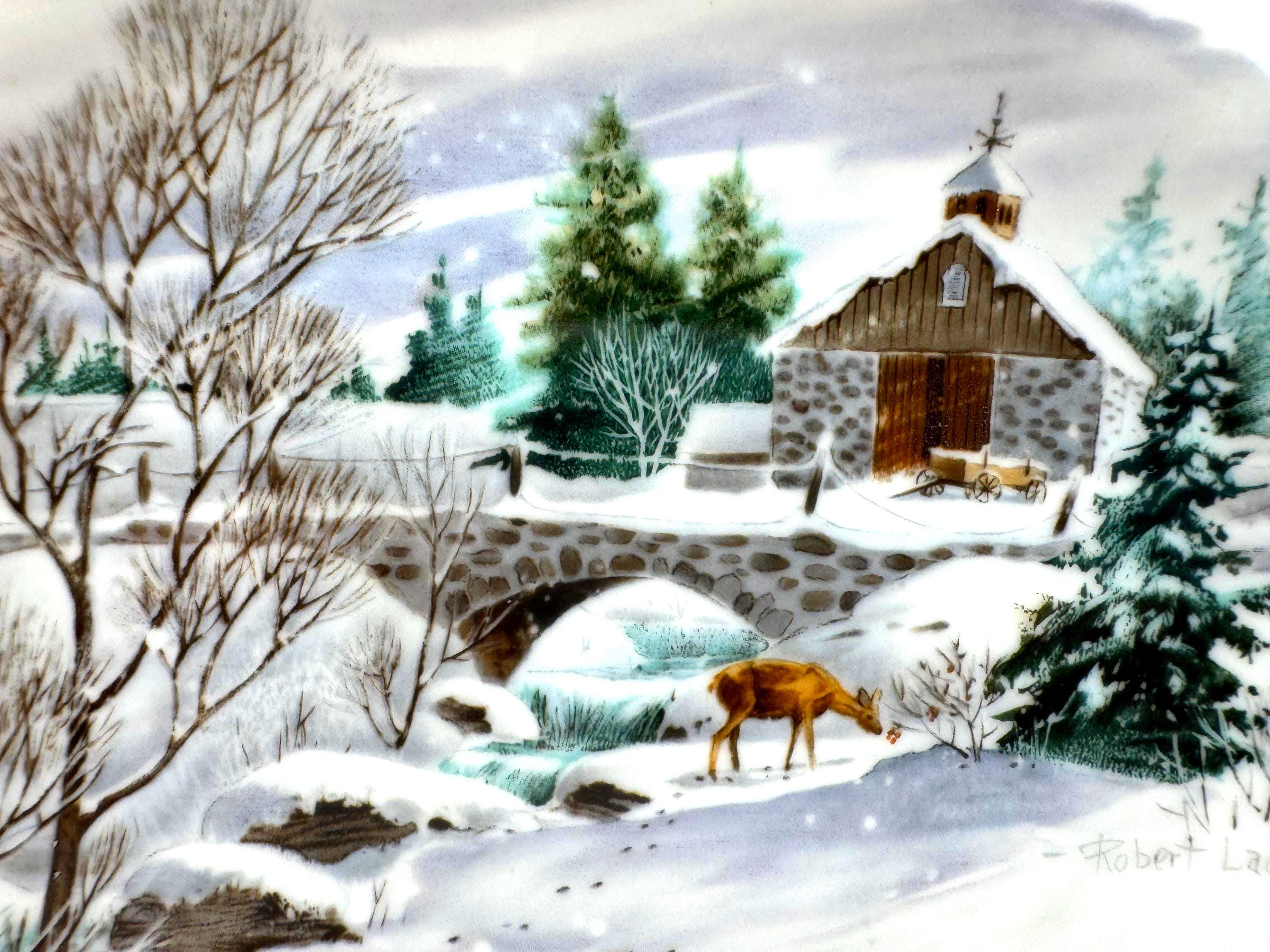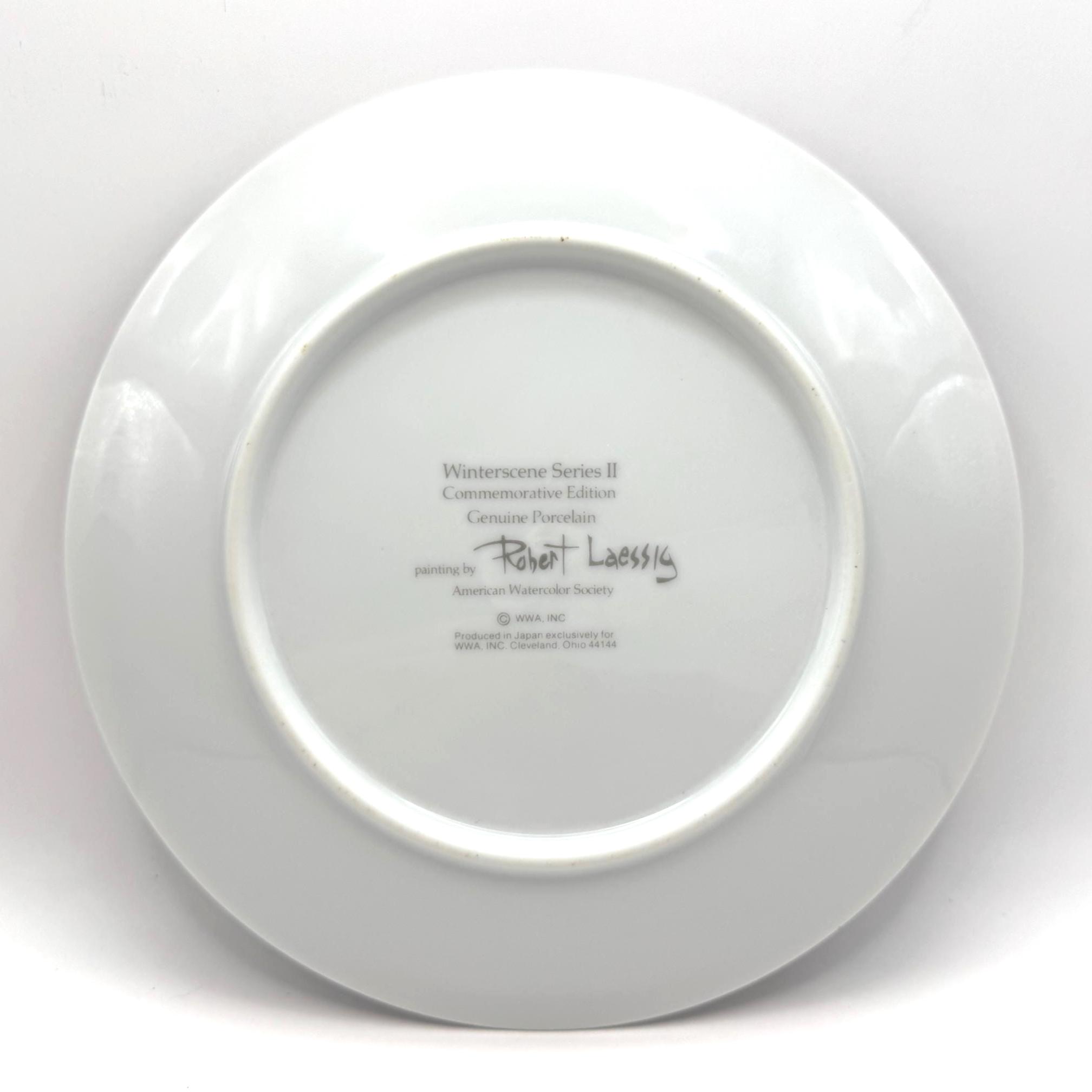 Bring a touch of peaceful nostalgia to your holiday decor with this beautiful Robert Laessig "Never a Christmas morning" collector plate, part of the Winterscene Series II by WWA (World Wide Art Studios). Produced in Japan, this fine porcelain plate captures the quiet beauty of a snowy Christmas morning and the timeless warmth of friendship.