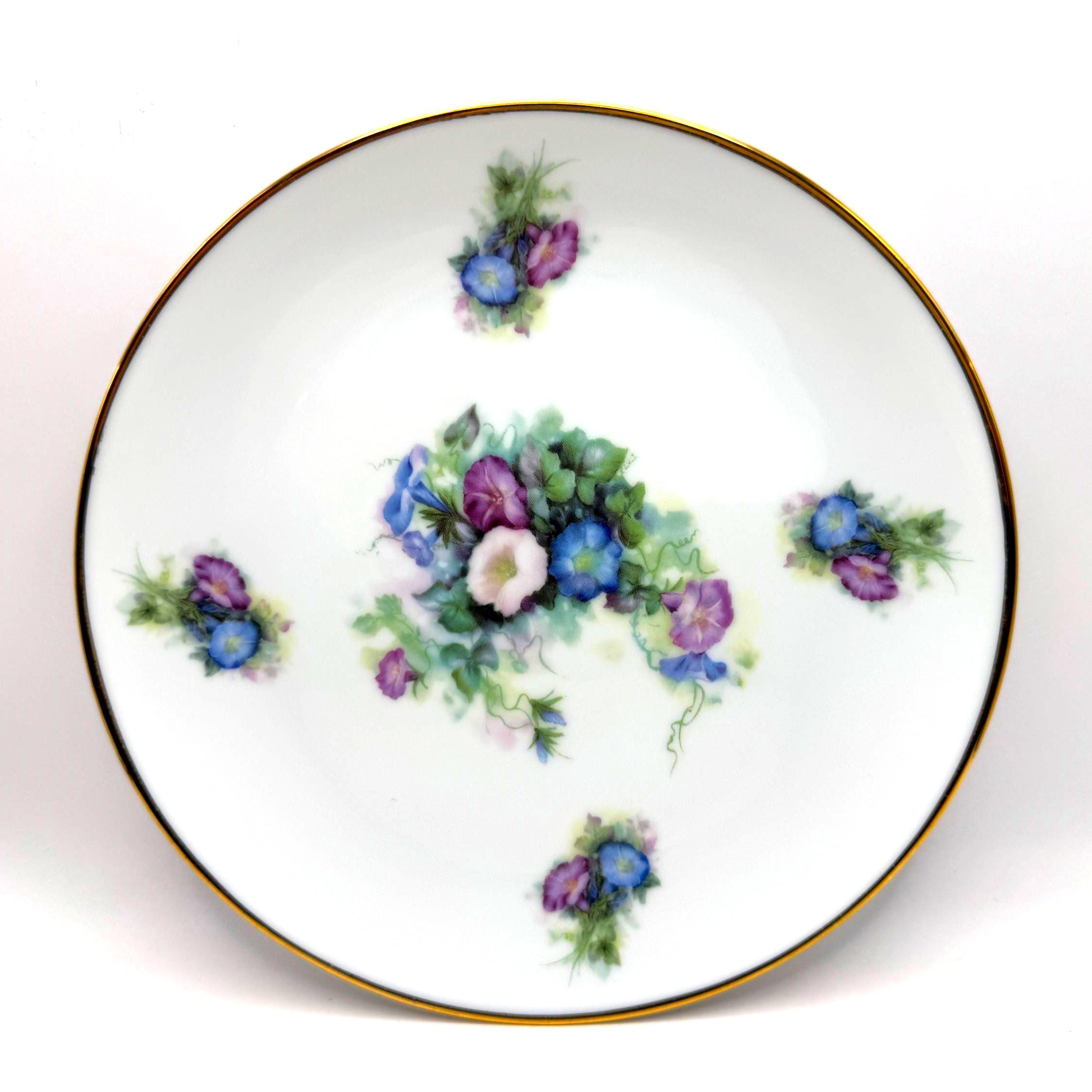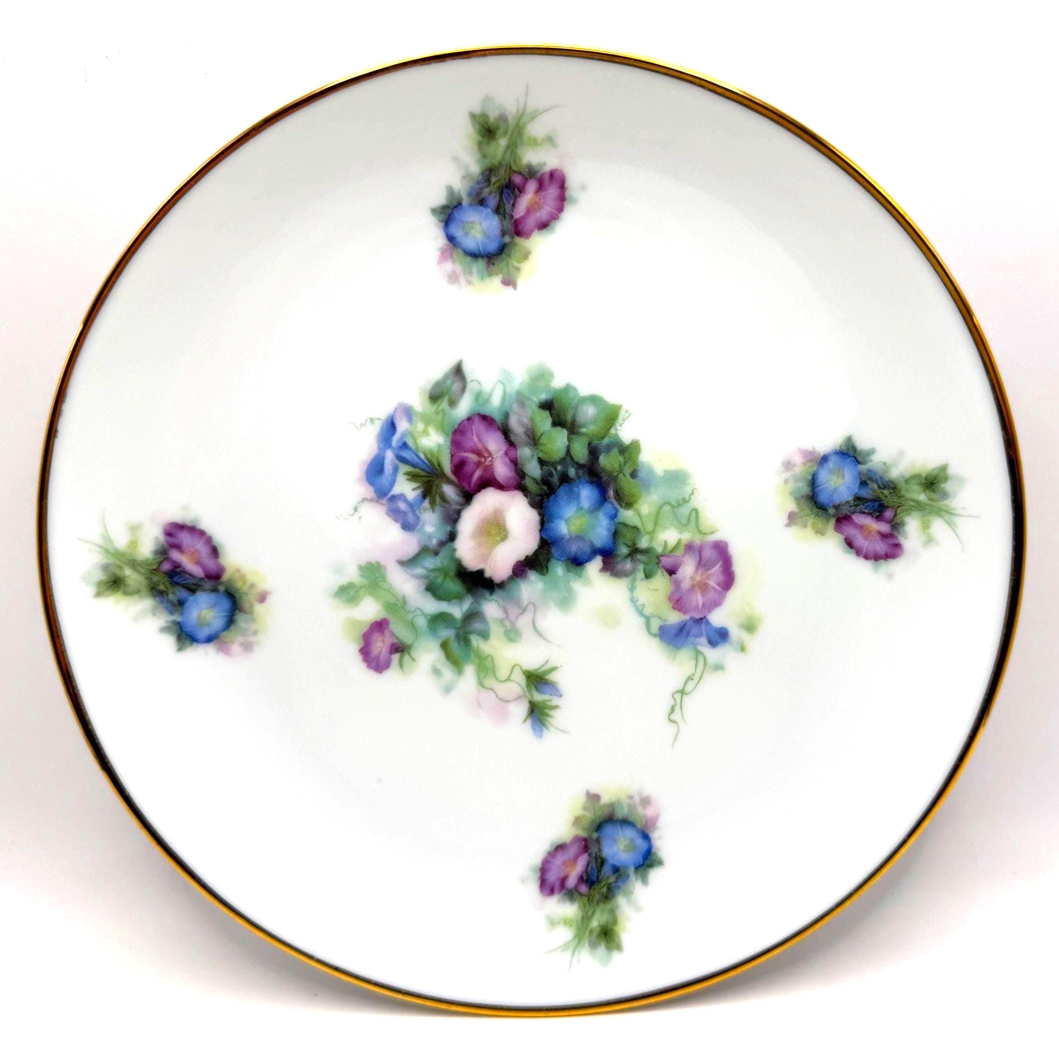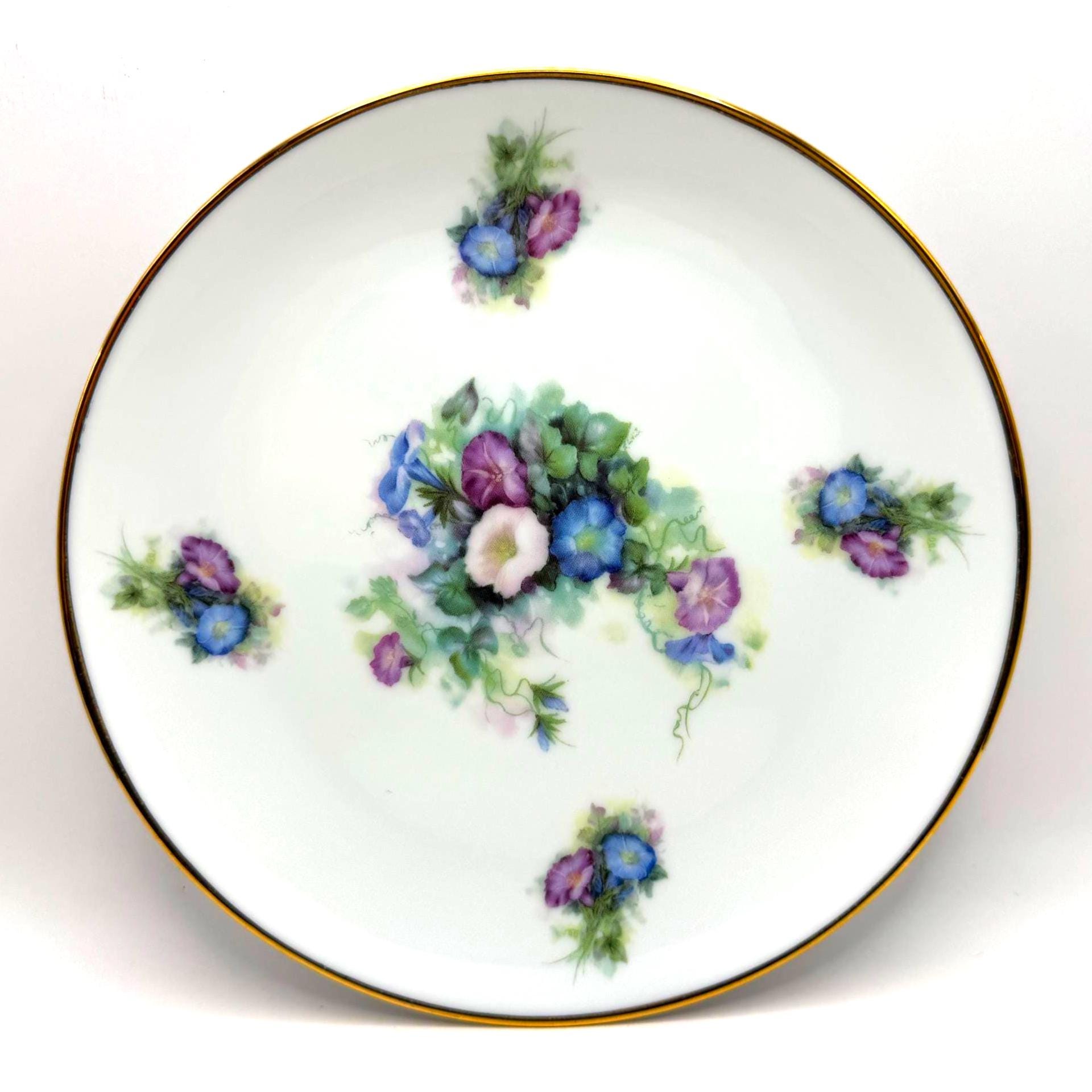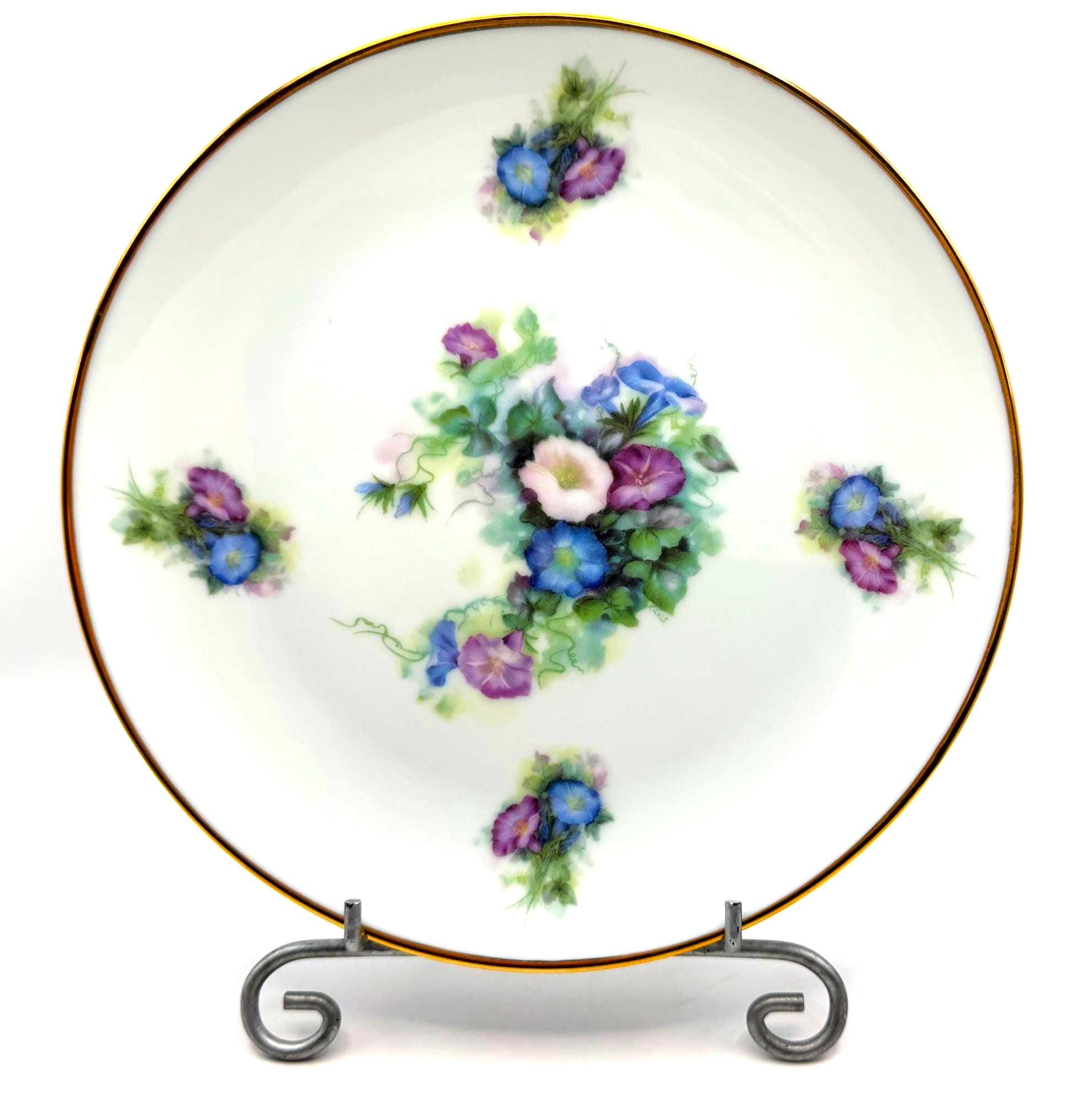 Add vintage floral charm to your home with the lovely Fielder Keepsakes Fine Porcelain Plate featuring a pastel bouquet of morning glories and trailing greenery. The design is soft, romantic, and beautifully detailed, accented with a gleaming gold rim for an elegant touch.