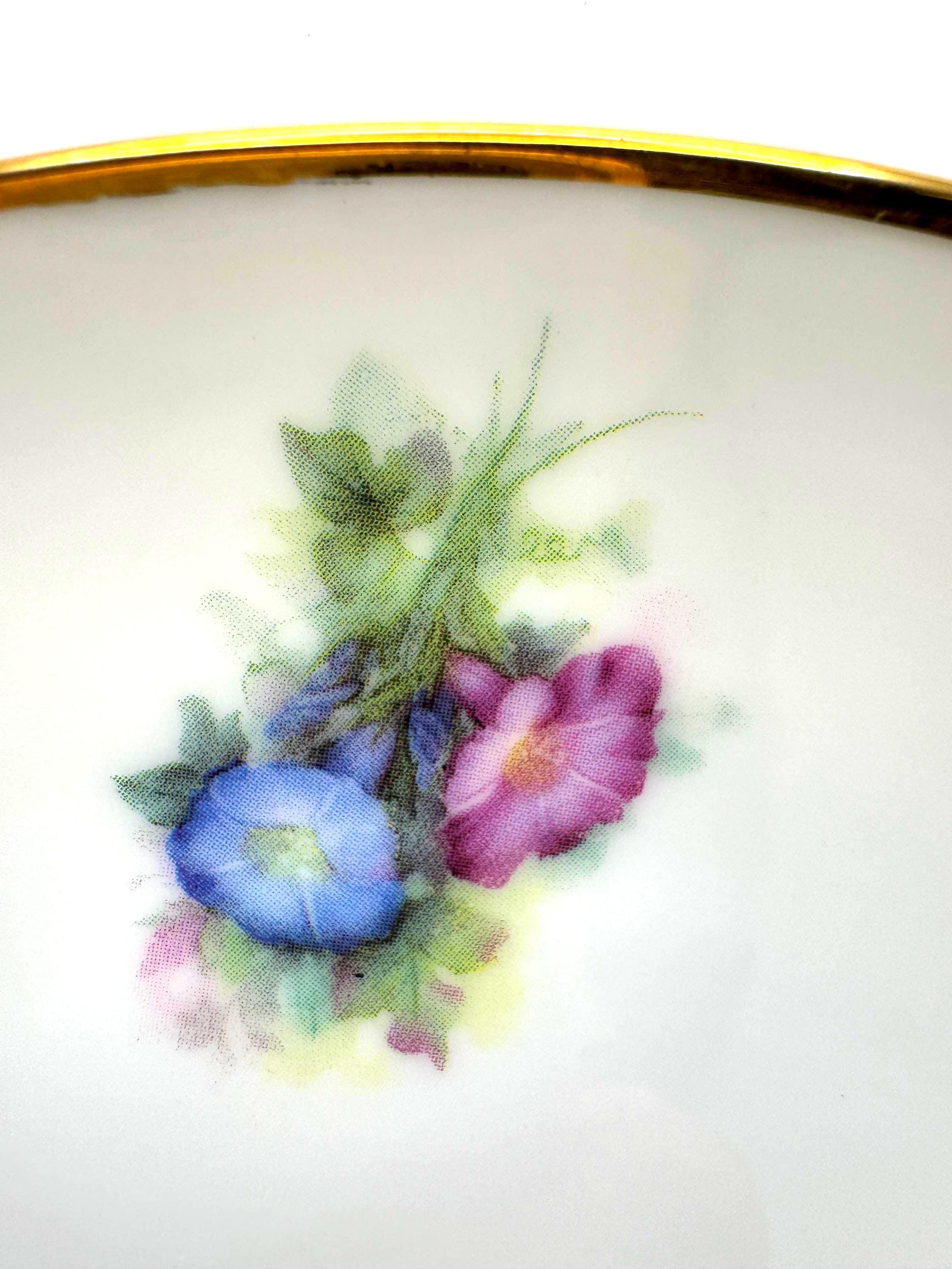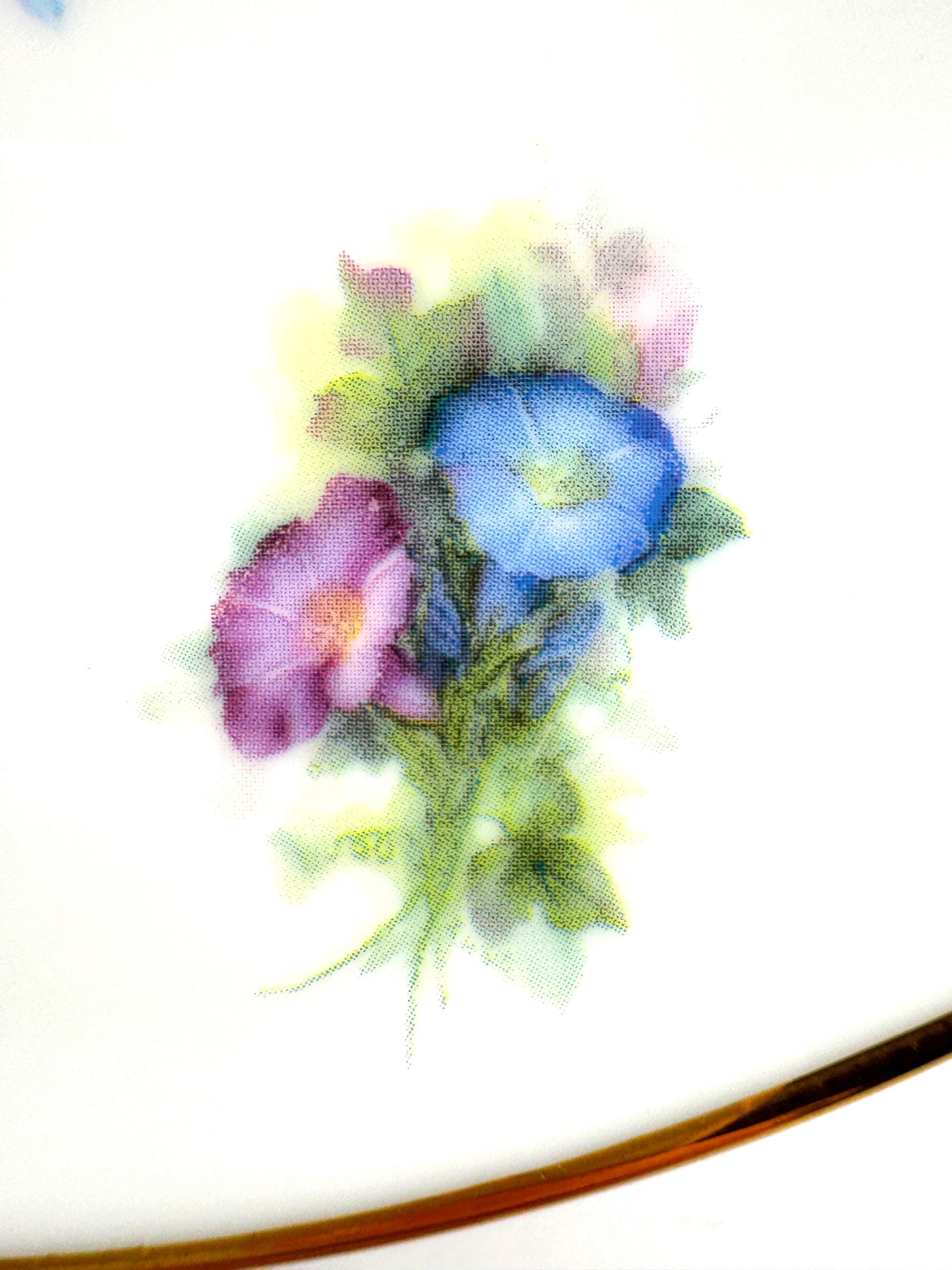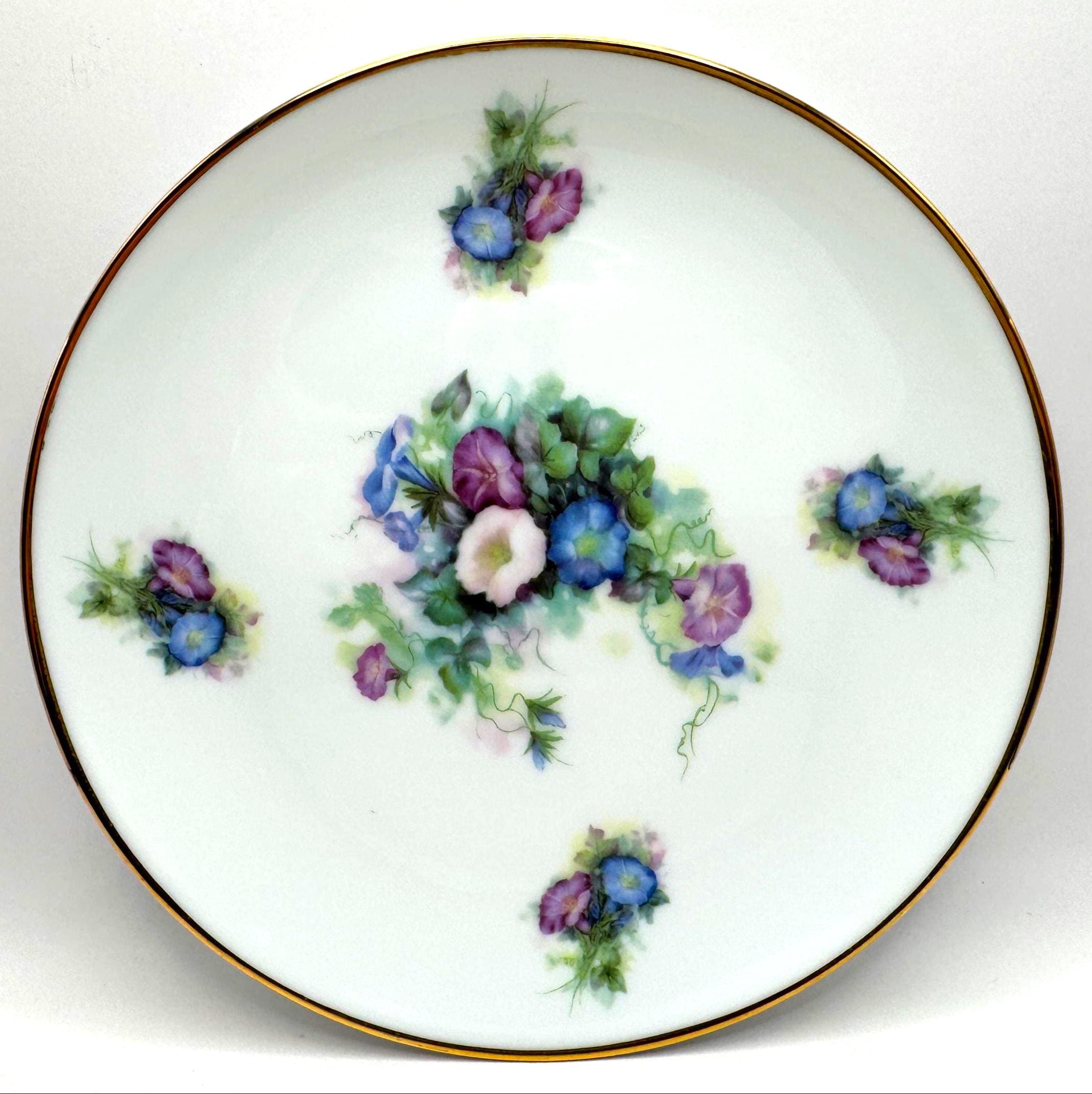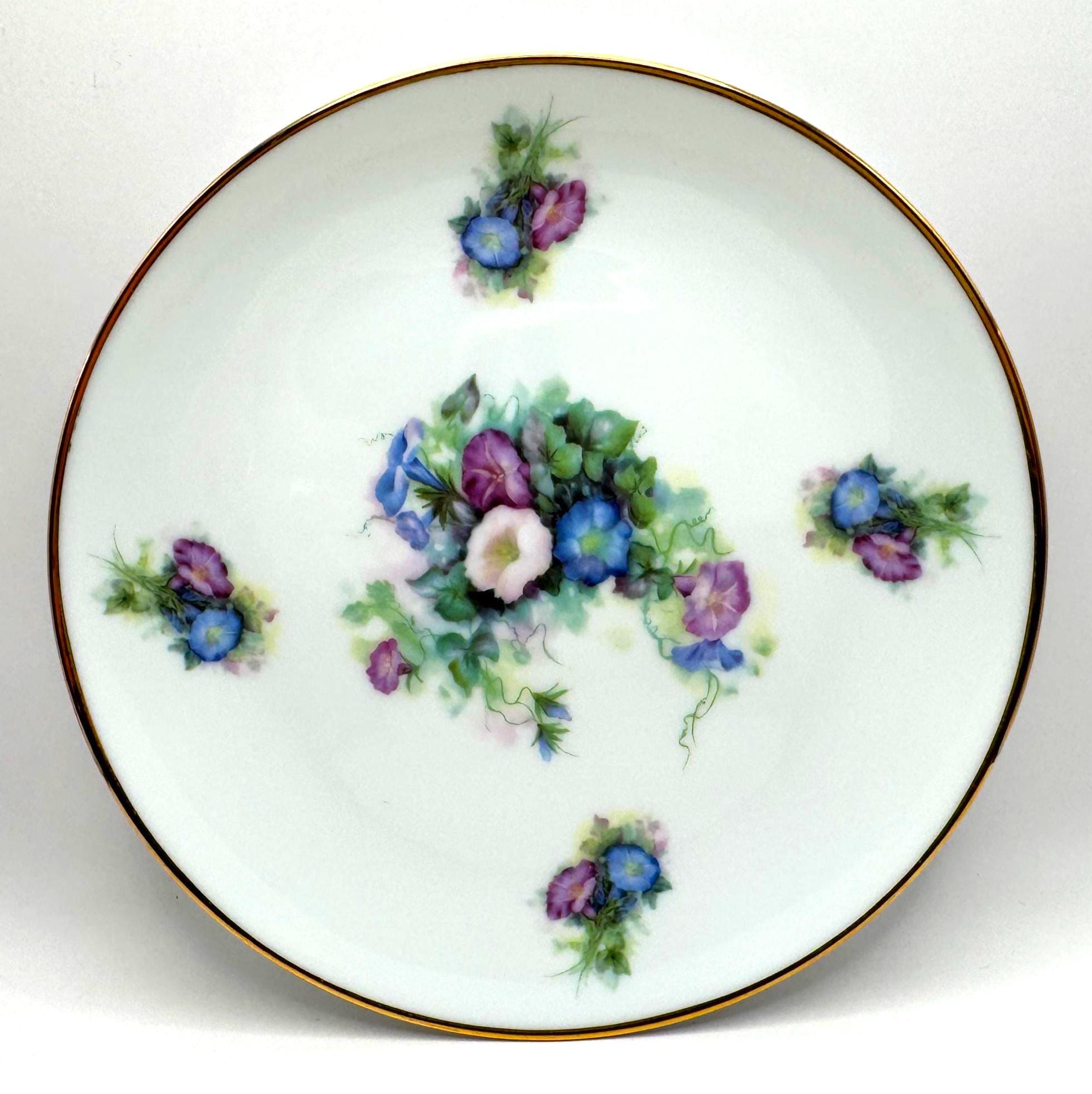 Add vintage floral charm to your home with the lovely Fielder Keepsakes Fine Porcelain Plate featuring a pastel bouquet of morning glories and trailing greenery. The design is soft, romantic, and beautifully detailed, accented with a gleaming gold rim for an elegant touch.