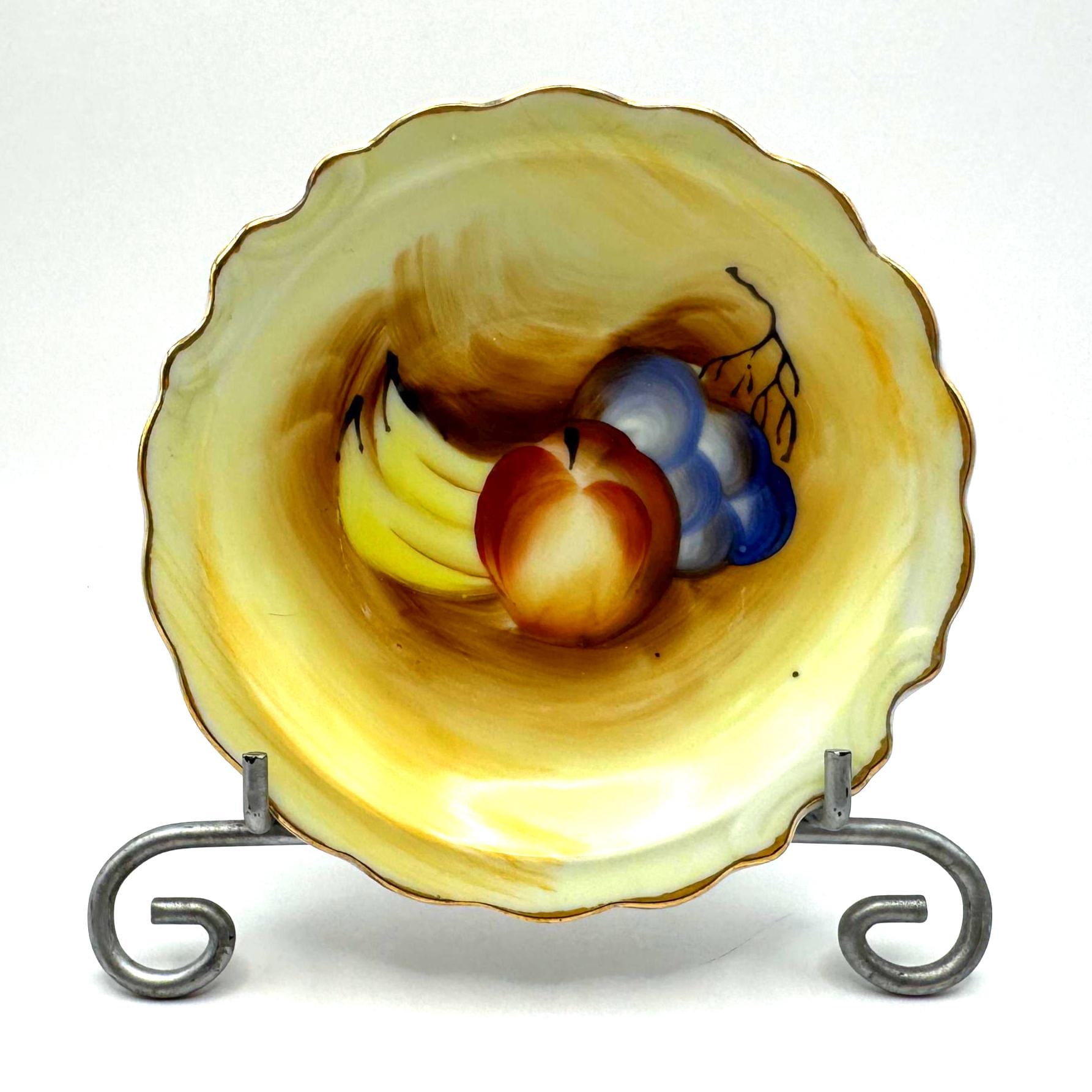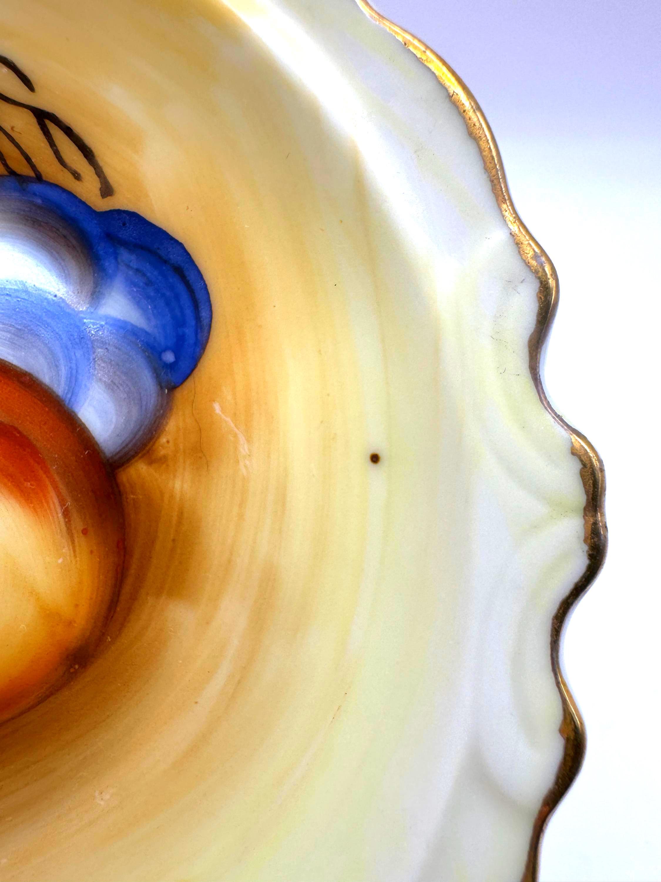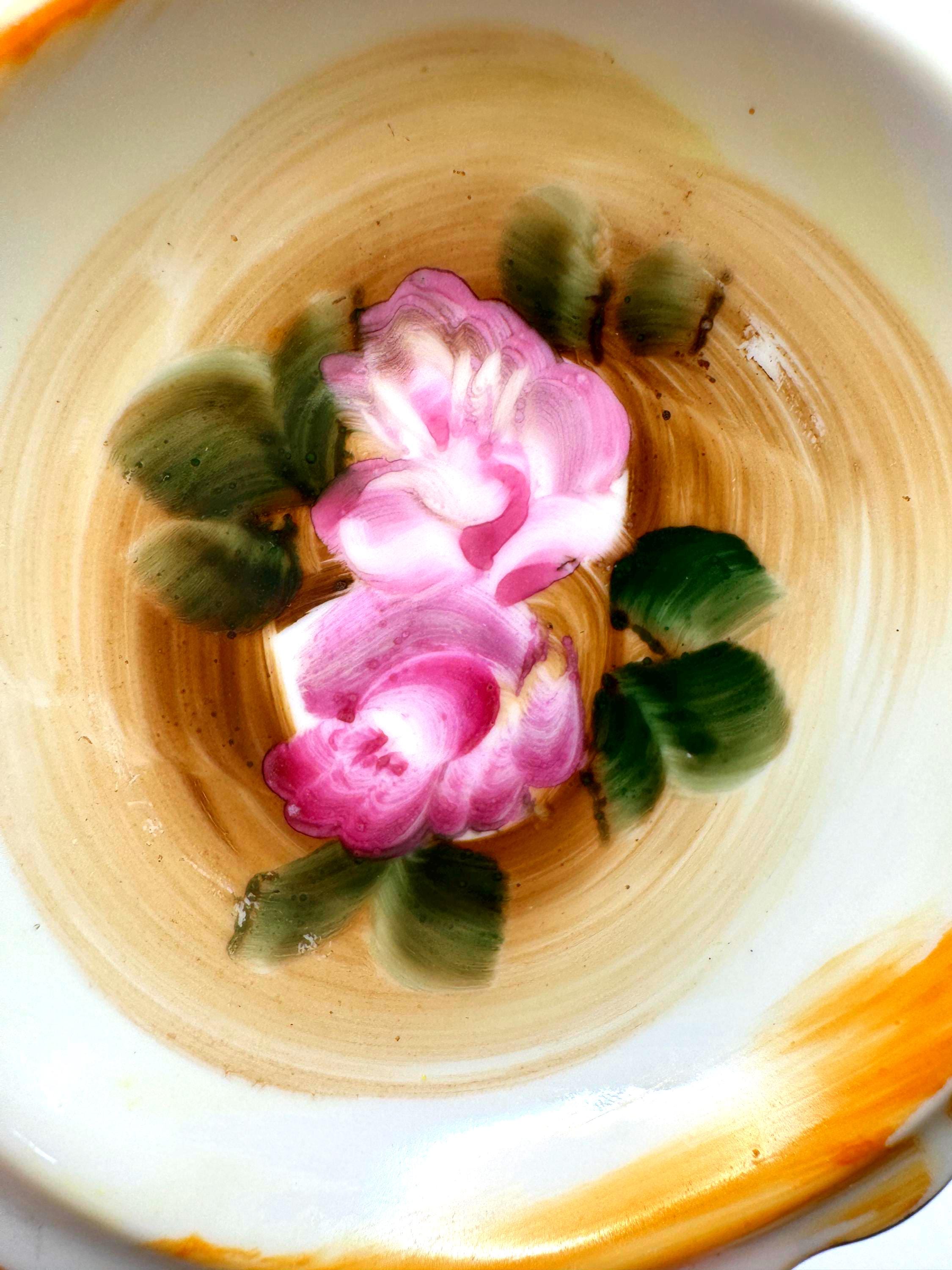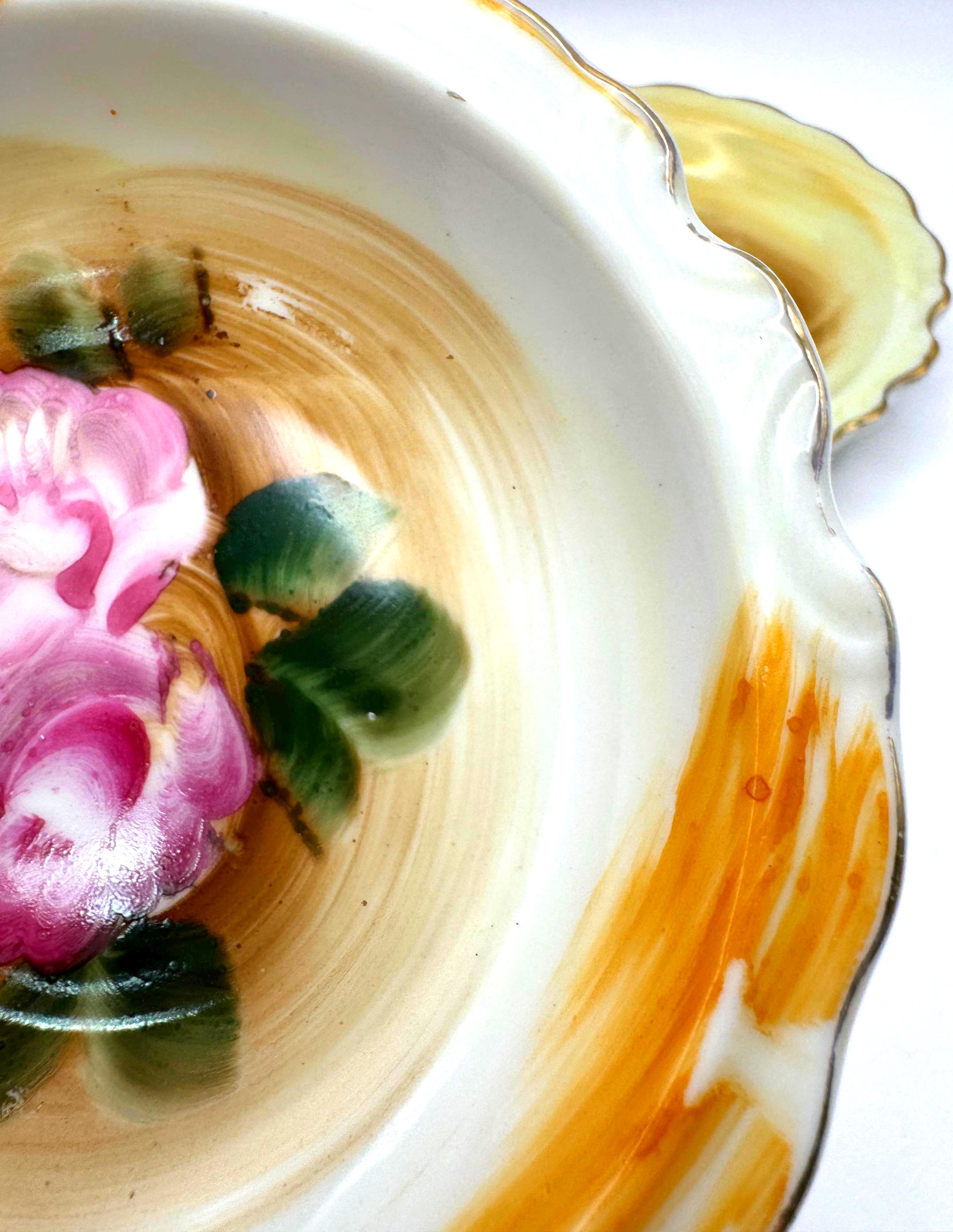 Beautifully detailed with painterly brushstrokes and finished with gold trim and a scalloped edge, these small bowls are ideal for use as trinket holders or vintage display accents.