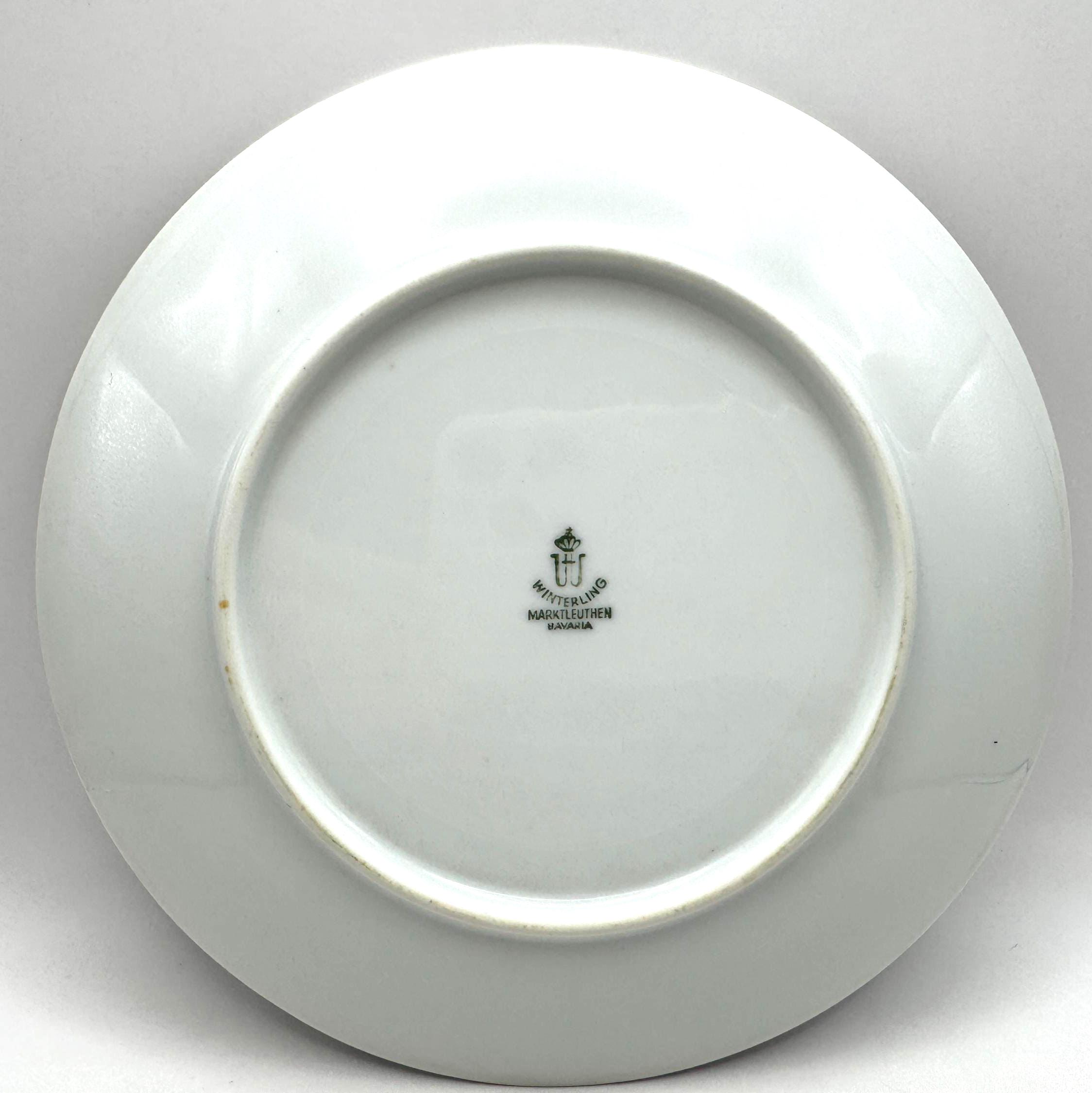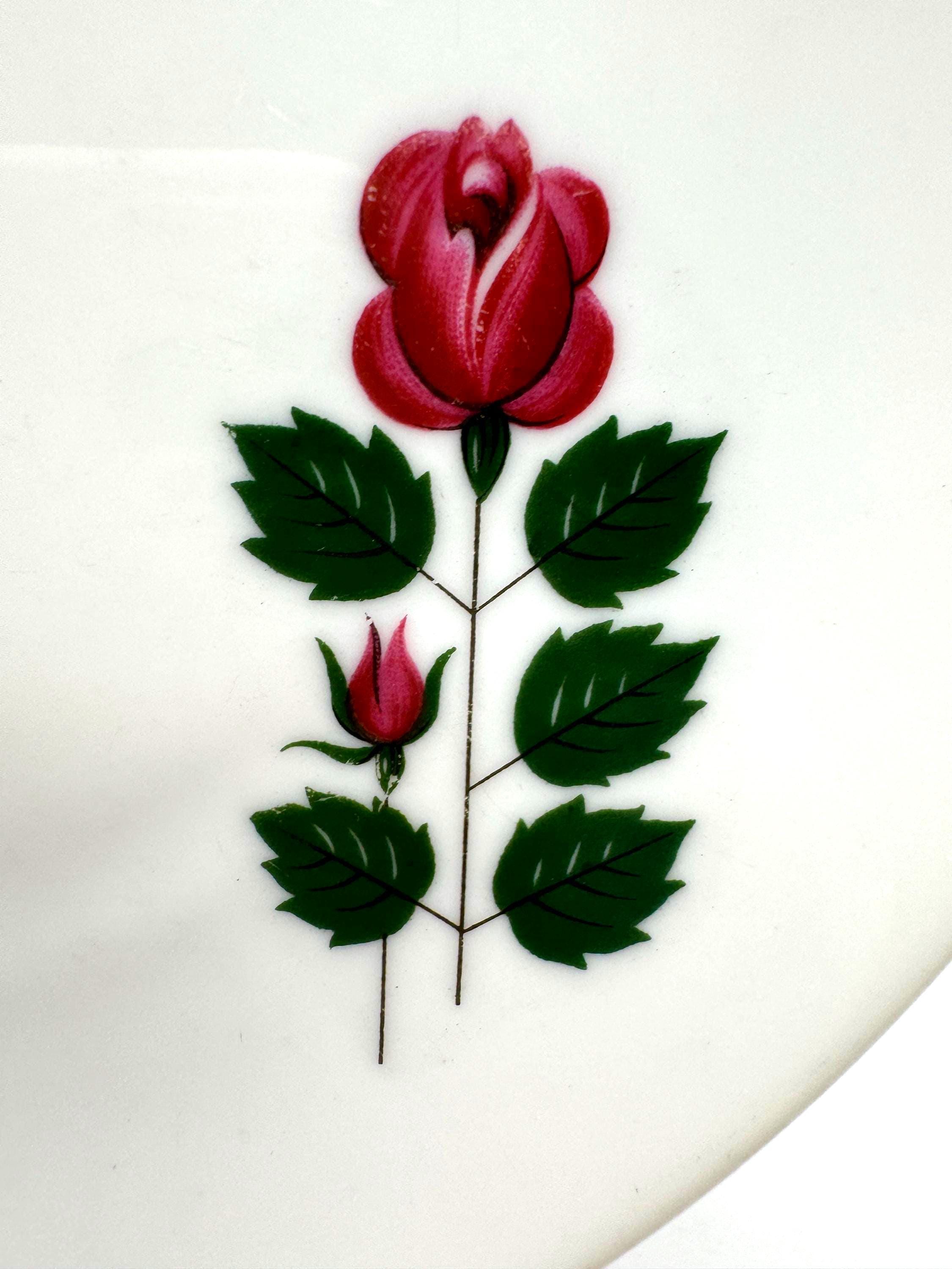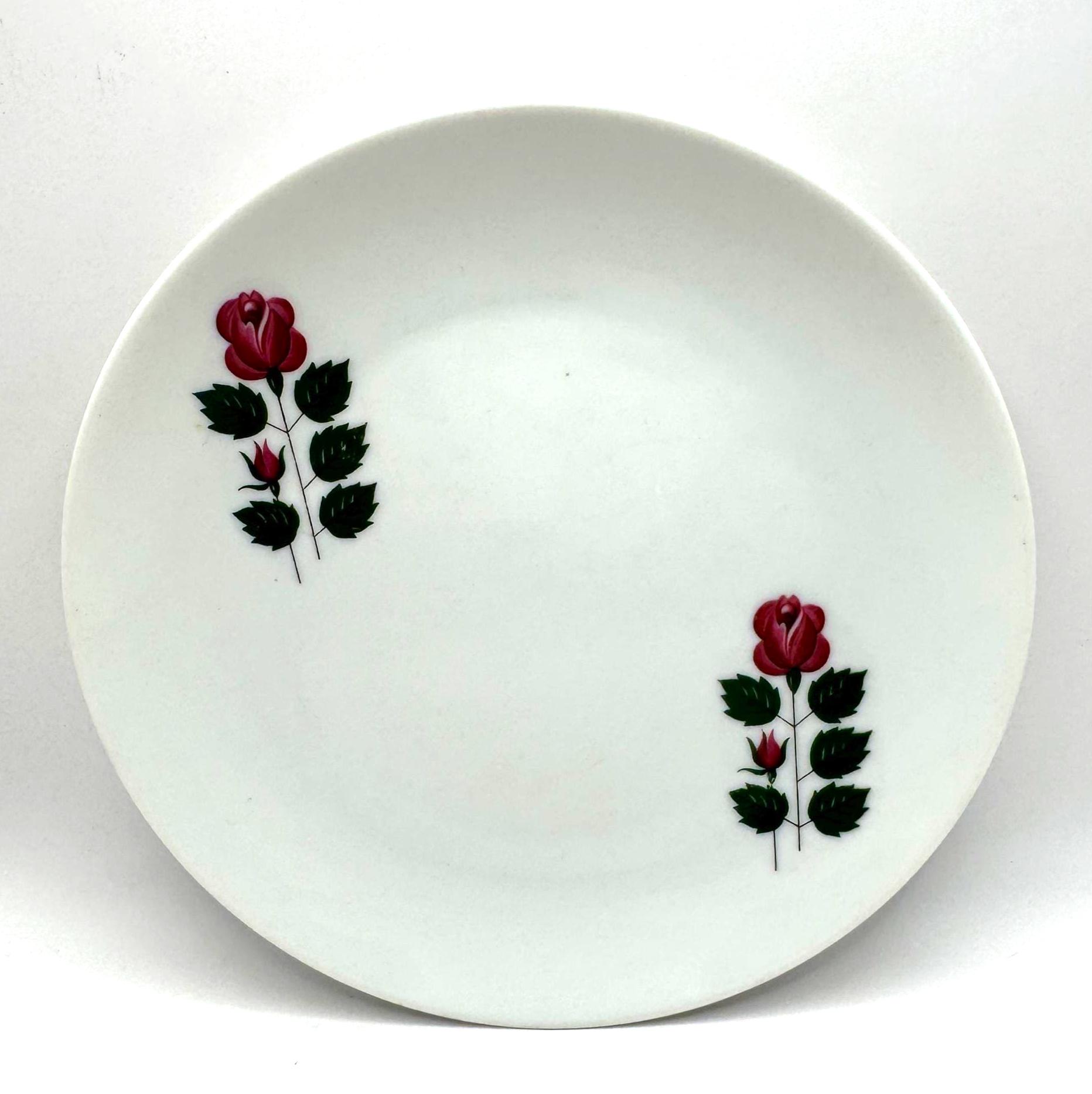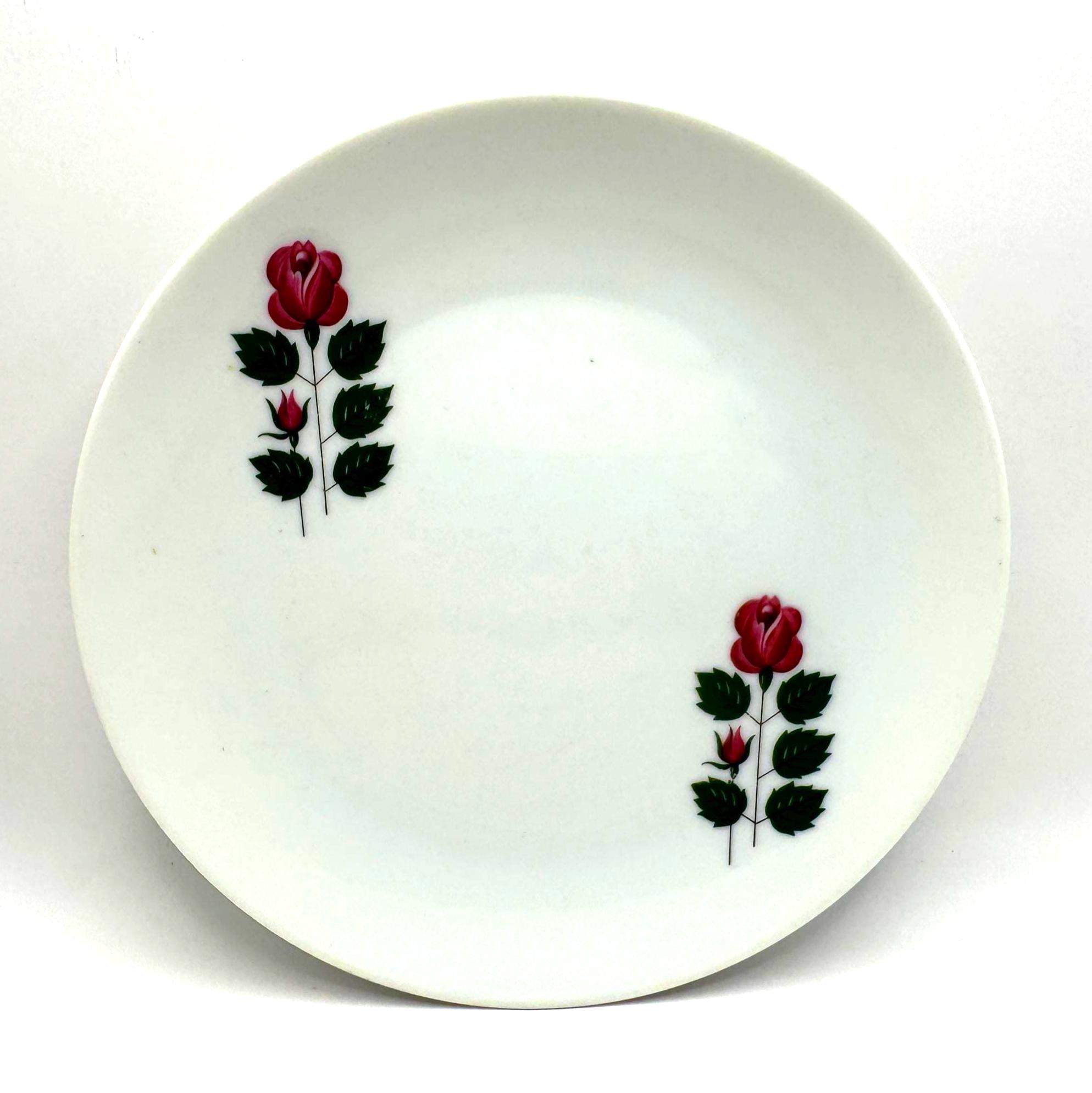 Lovely Winterling Markleuthen Bavaria porcelain salad/dessert plate featuring a dark pink rosebud design with deep green leaves on crisp white porcelain.