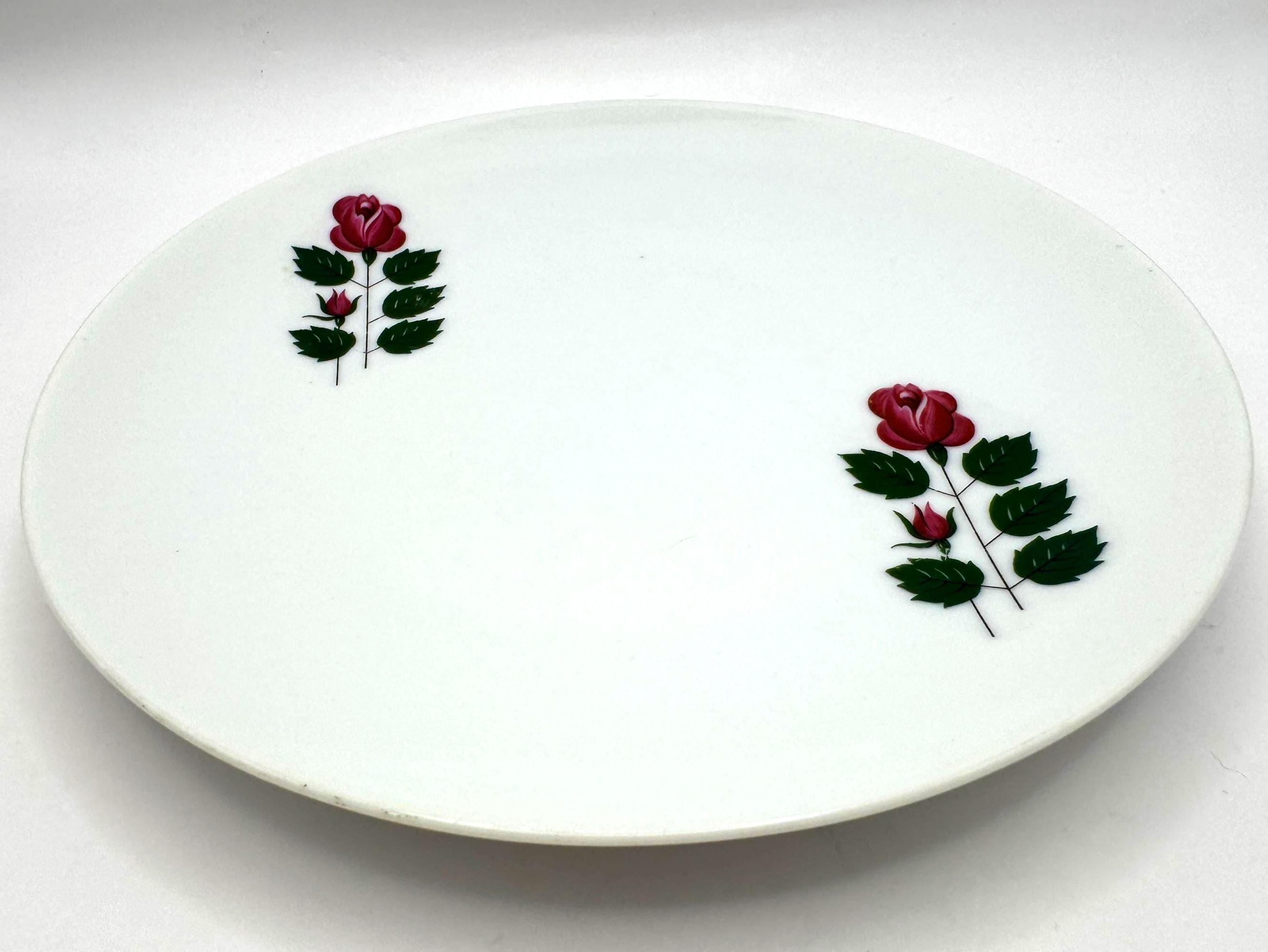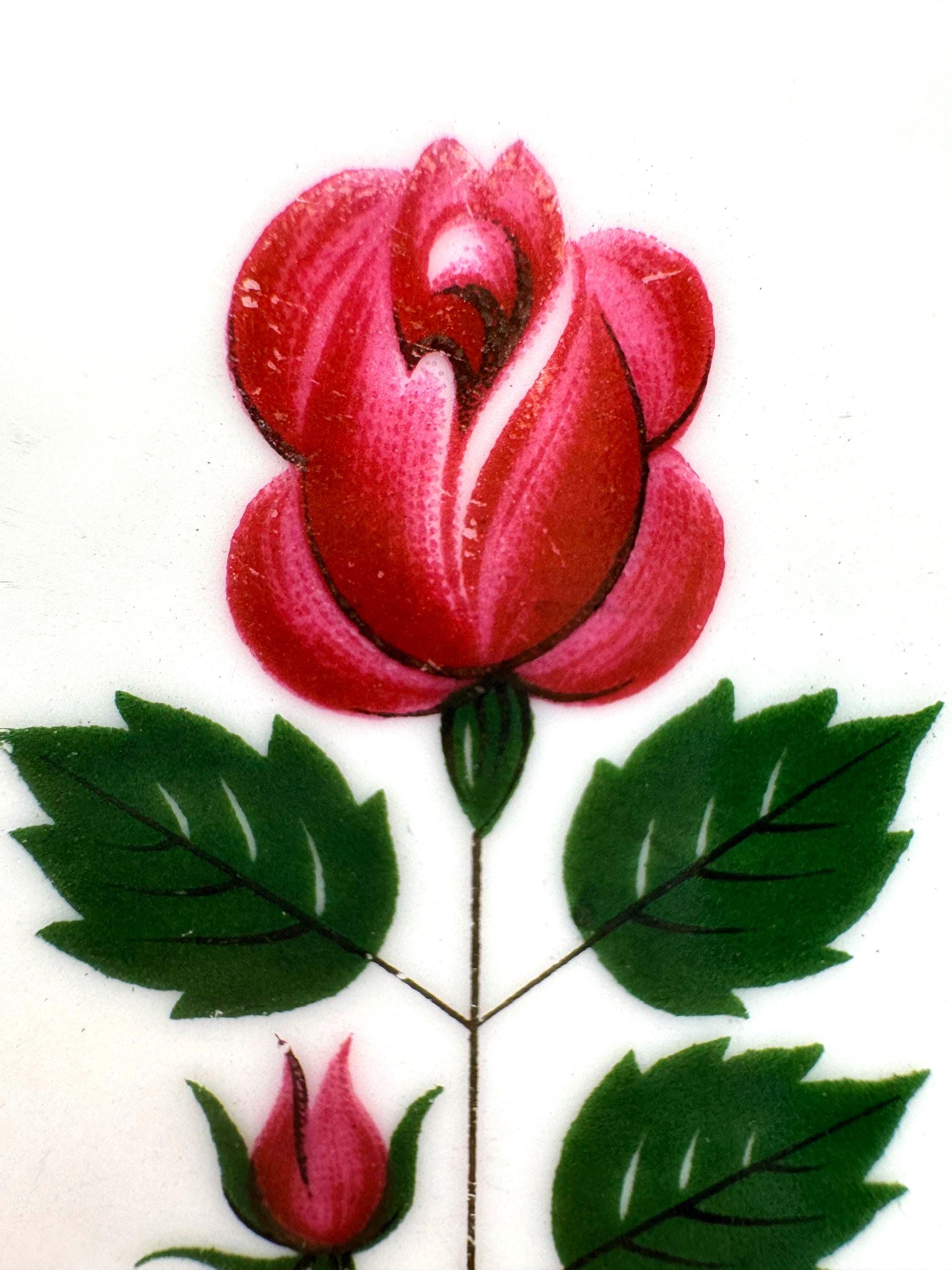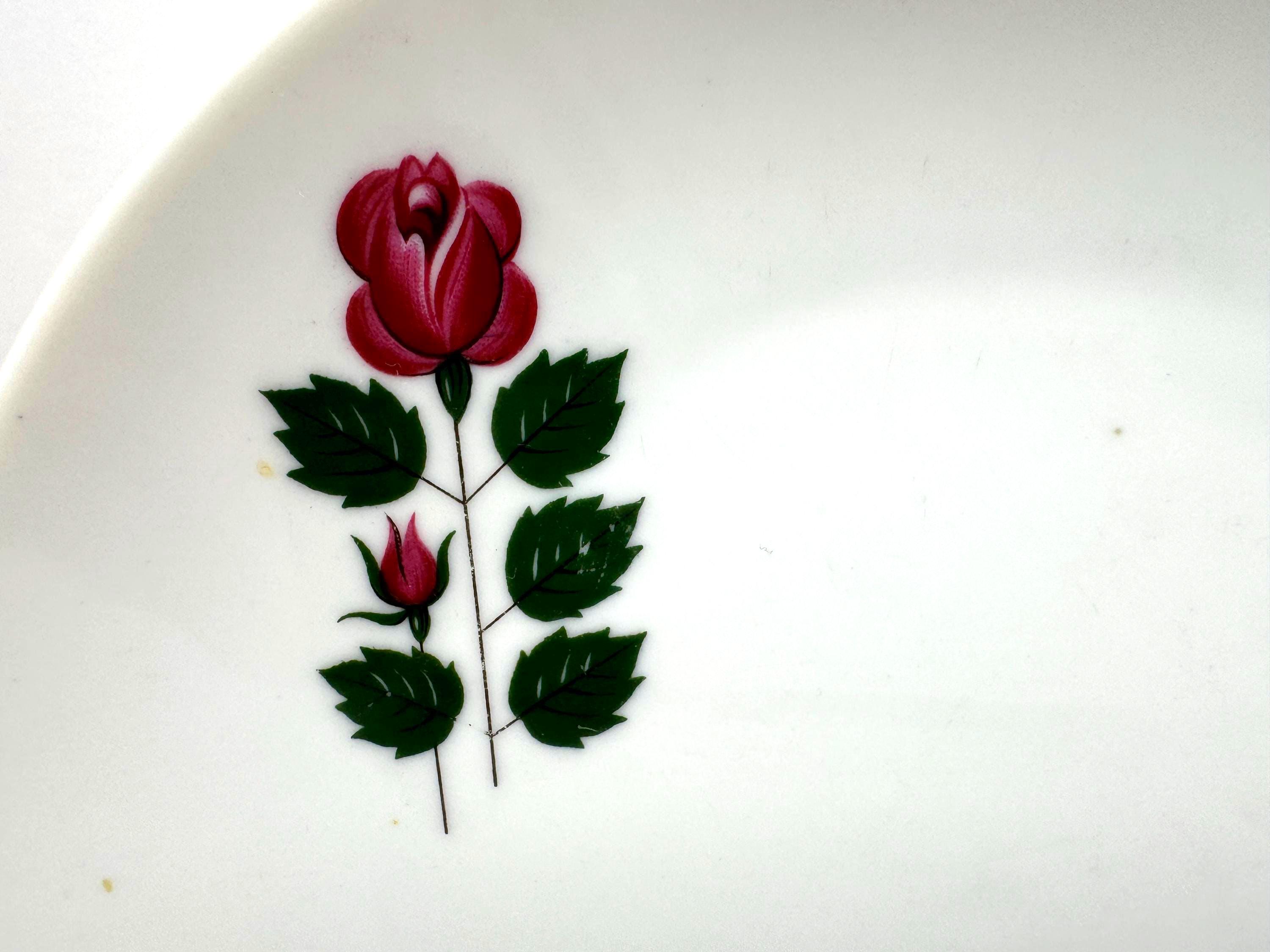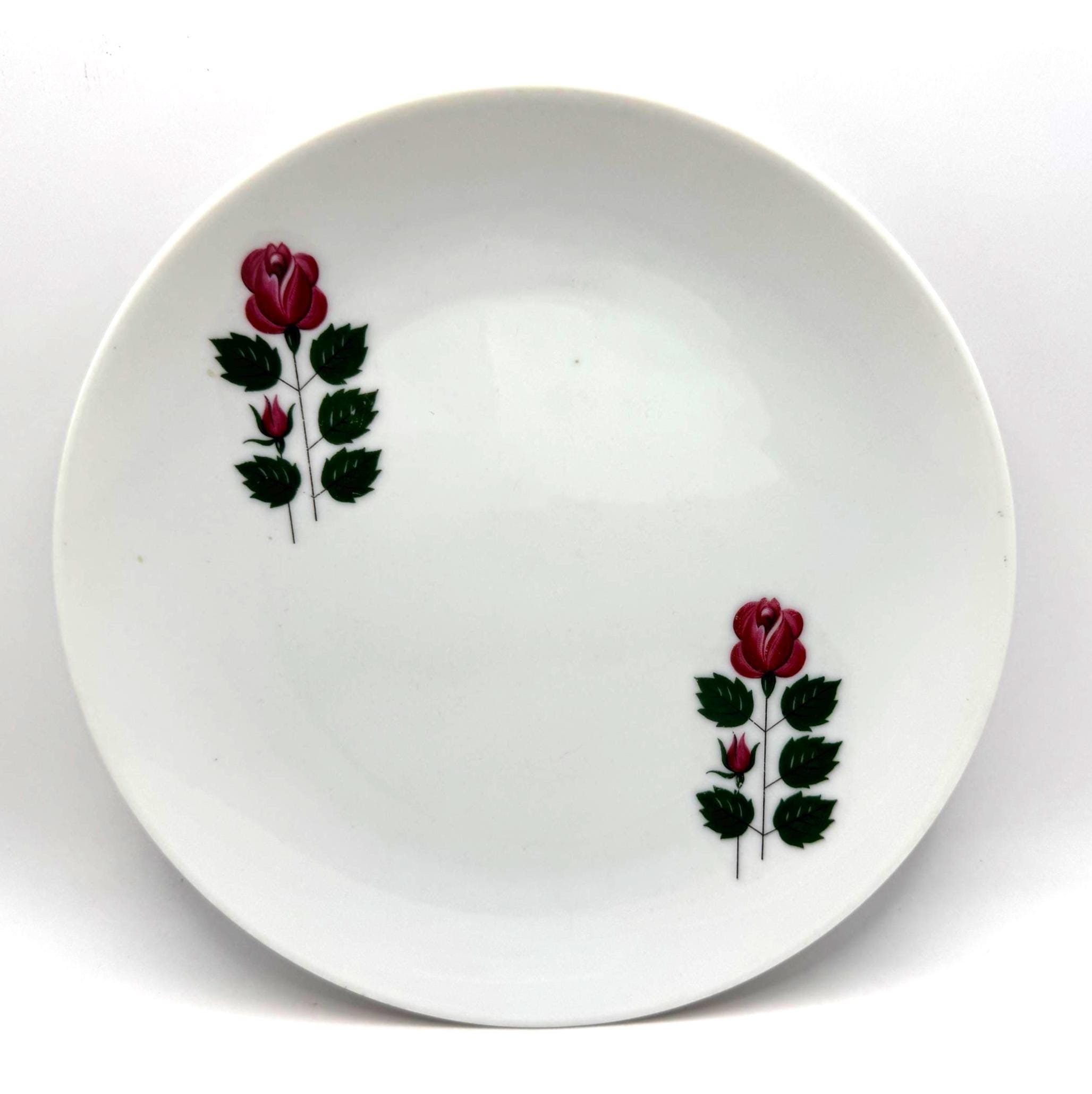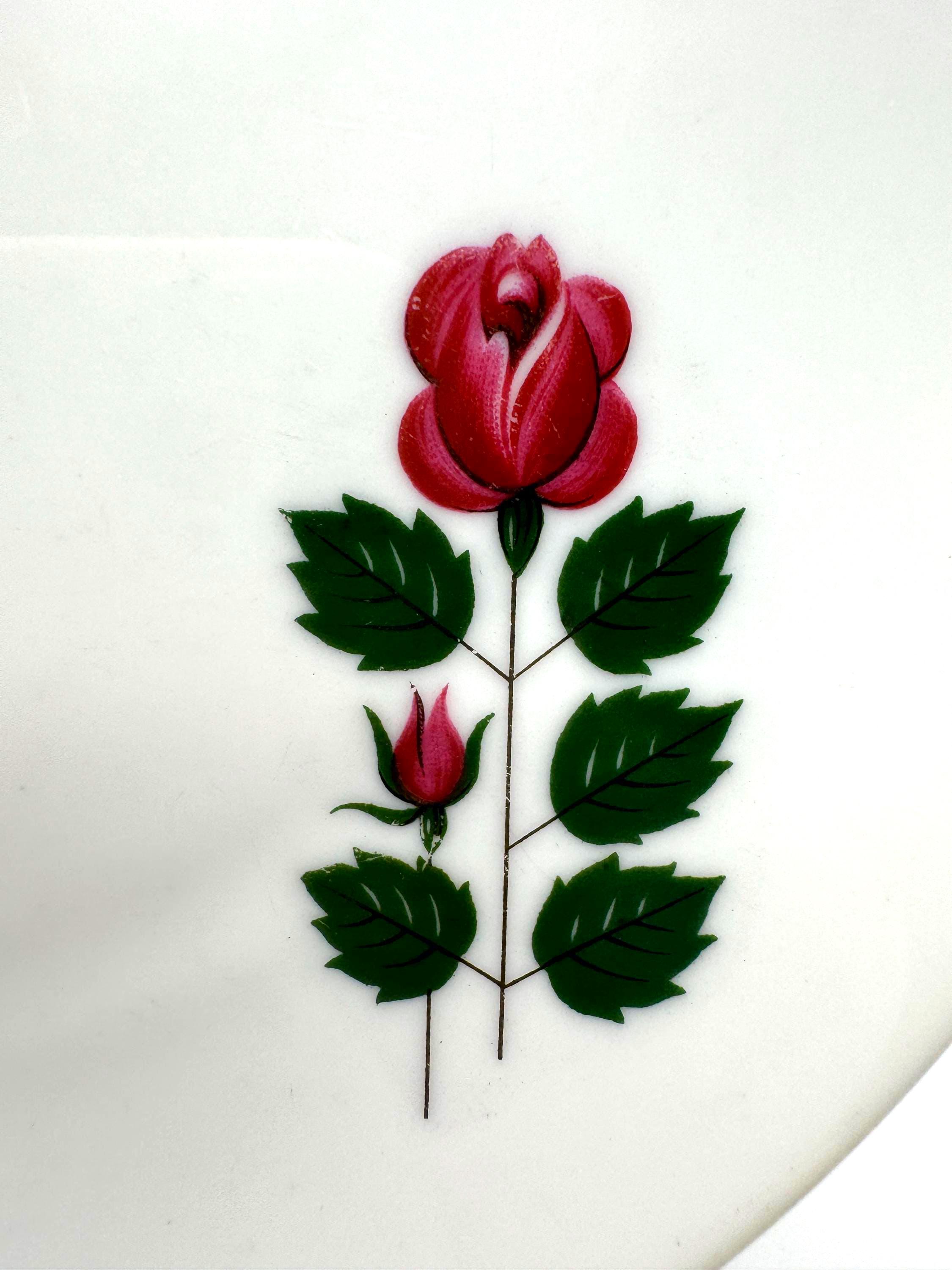 Lovely Winterling Markleuthen Bavaria porcelain salad/dessert plate featuring a dark pink rosebud design with deep green leaves on crisp white porcelain.