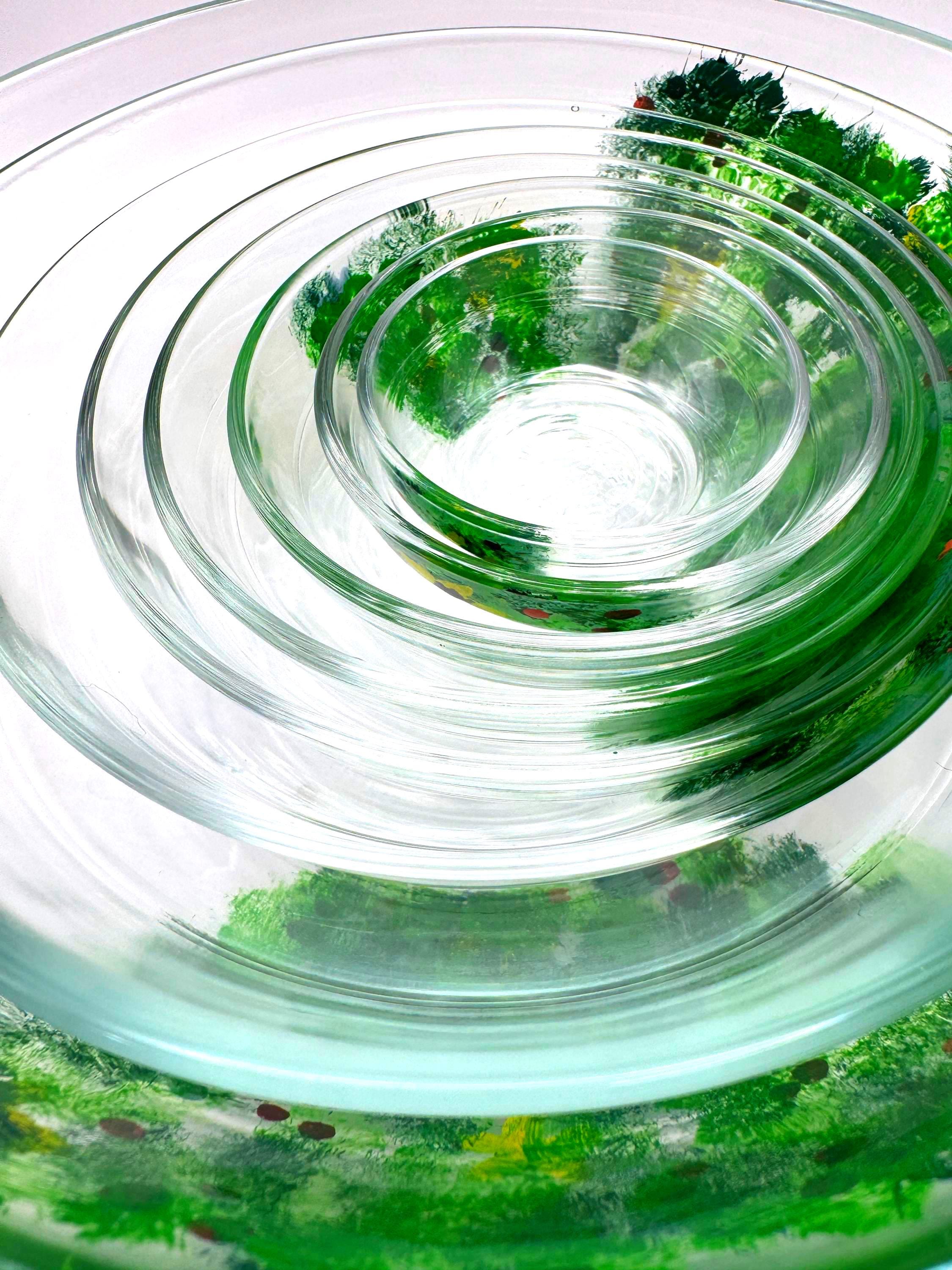 Made in France of tempered Duralex glass, these bowls are as durable as they are charming. Perfect for mixing, serving, or display---each bowl nests neatly into the next for efficient storage. Whether you love cottagecore decor or authentic mid-century European kitchenware, this set makes a standout additional to any collection.