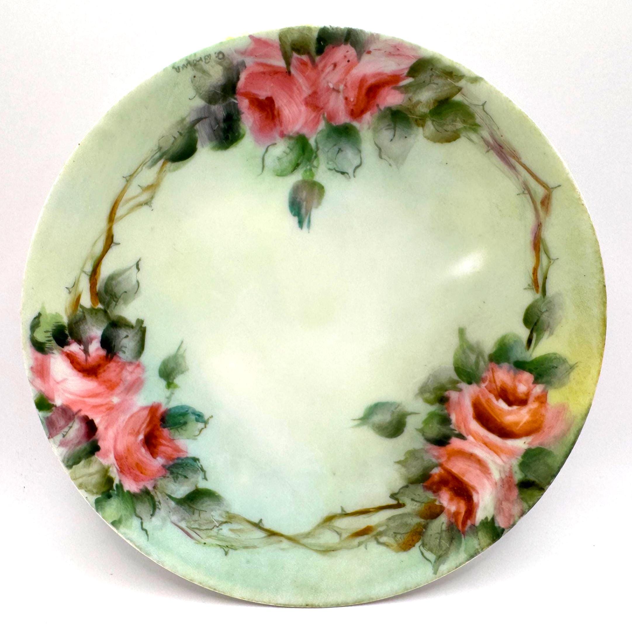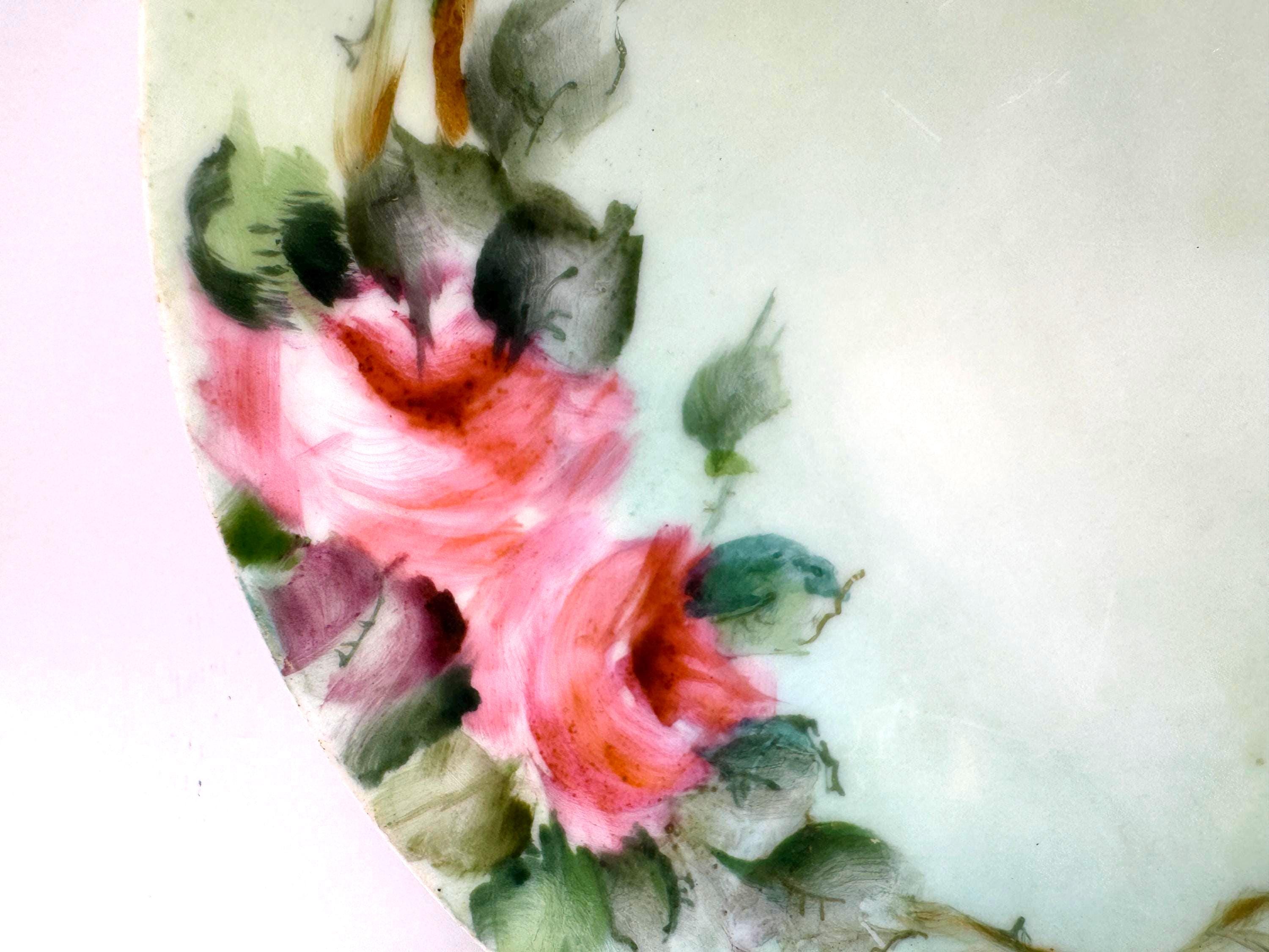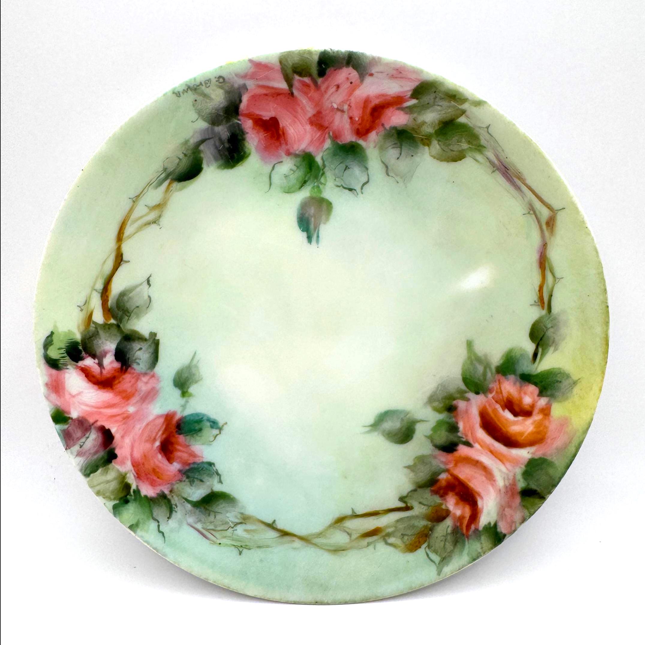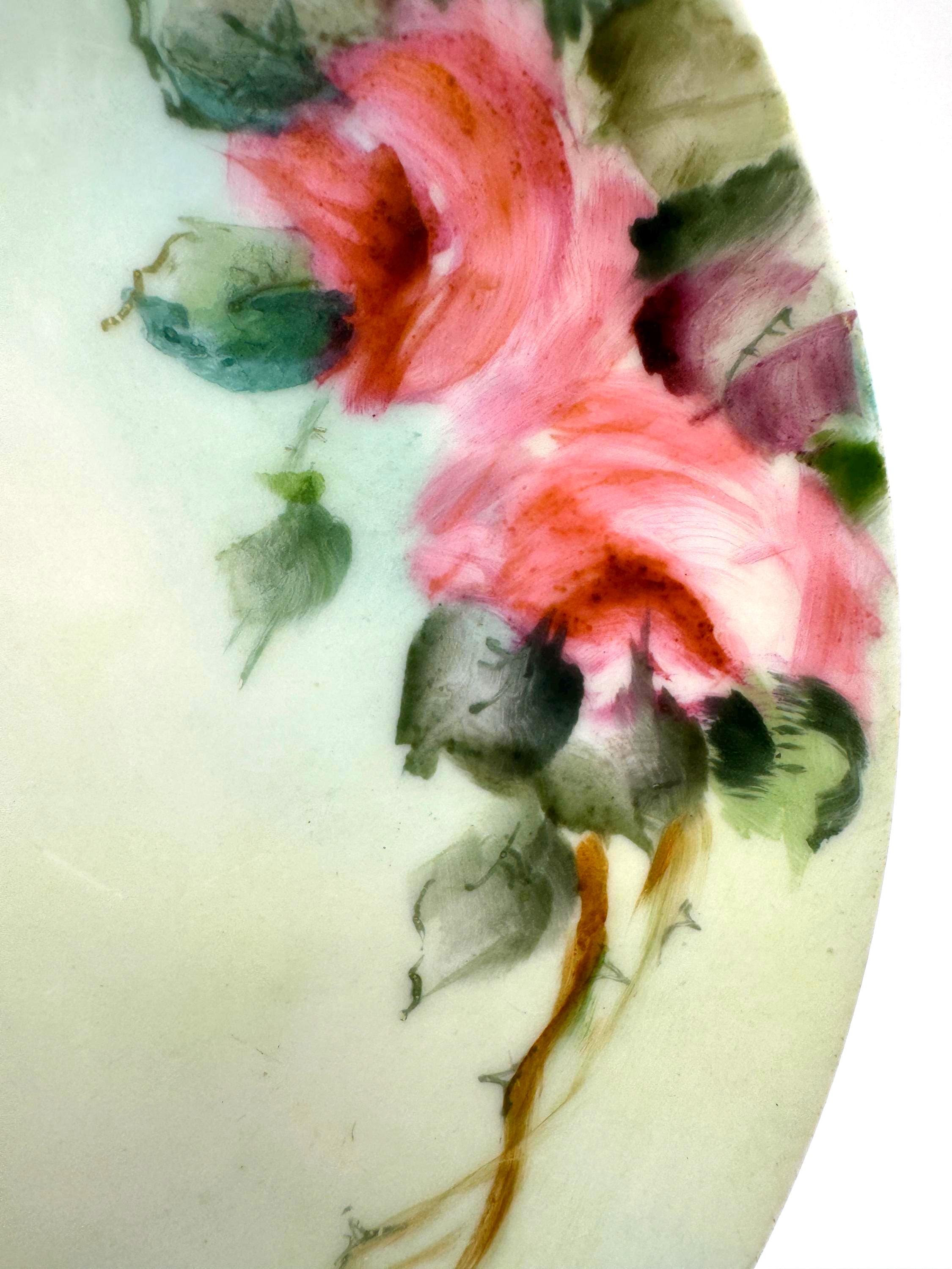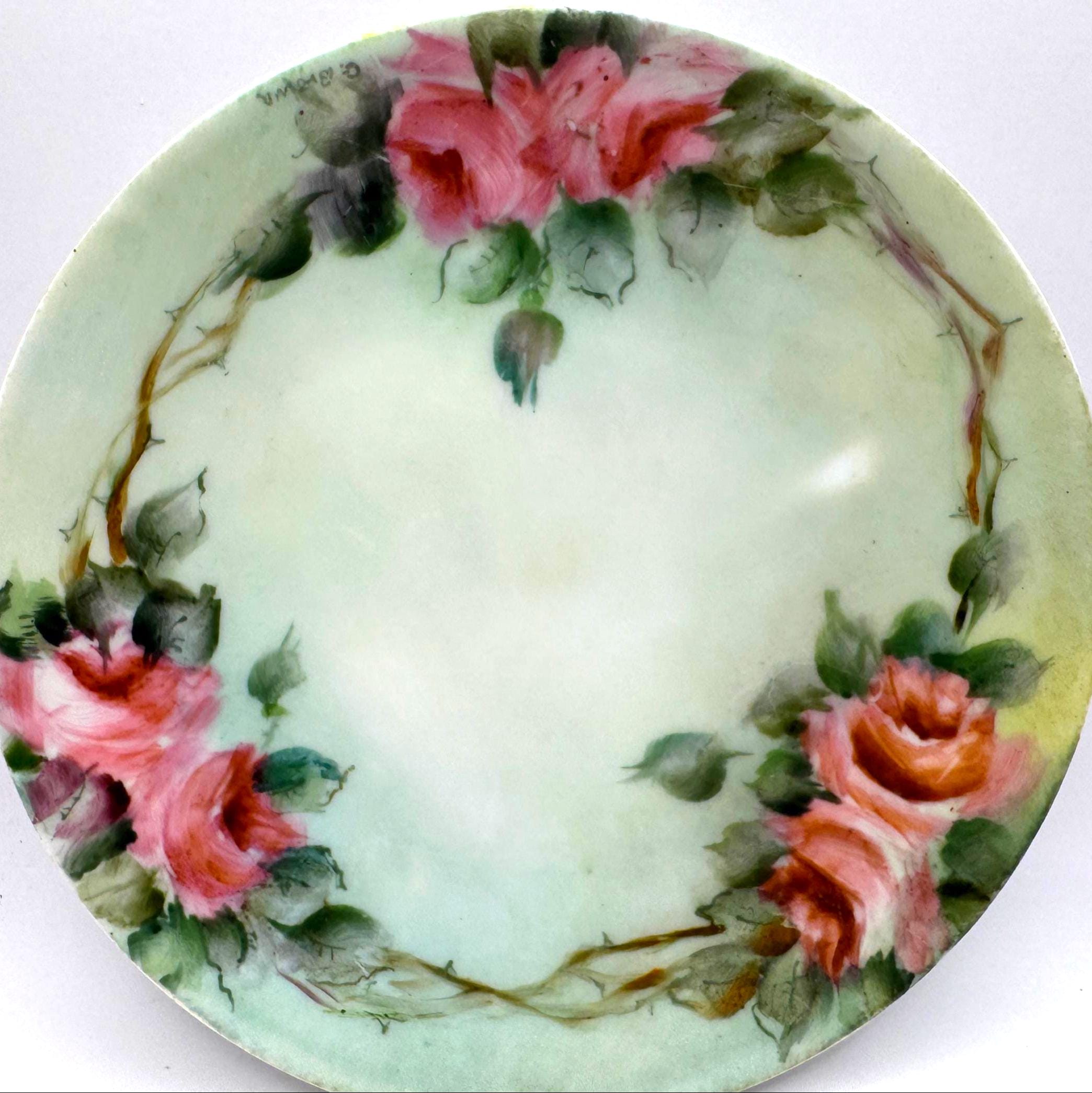 This antique Bavarian rose plate brings romantic, turn-of-the-century charm to any collection---perfect for wall display, china cabinet, or as a unique gift for lovers of hand-painted porcelain art.
