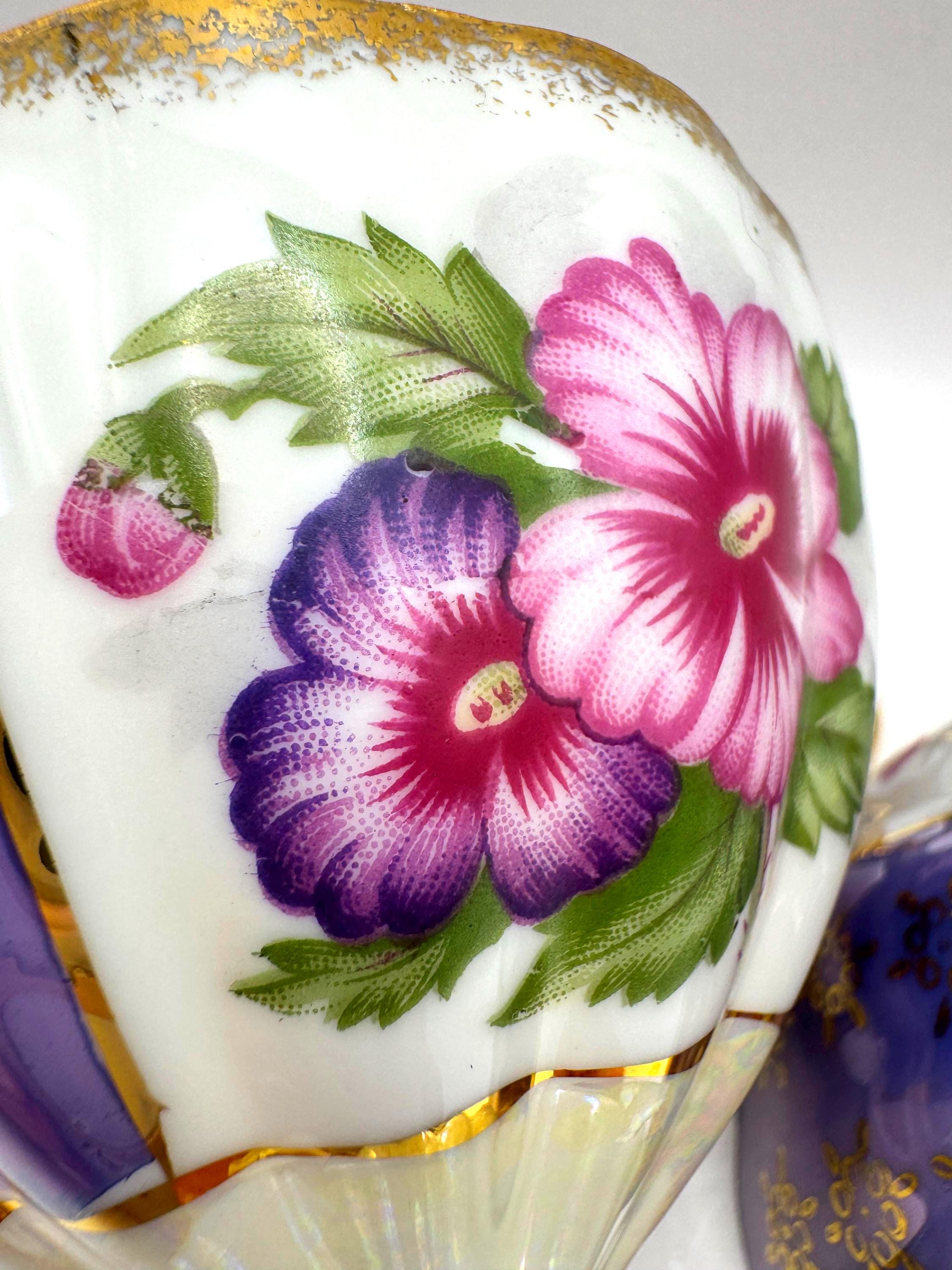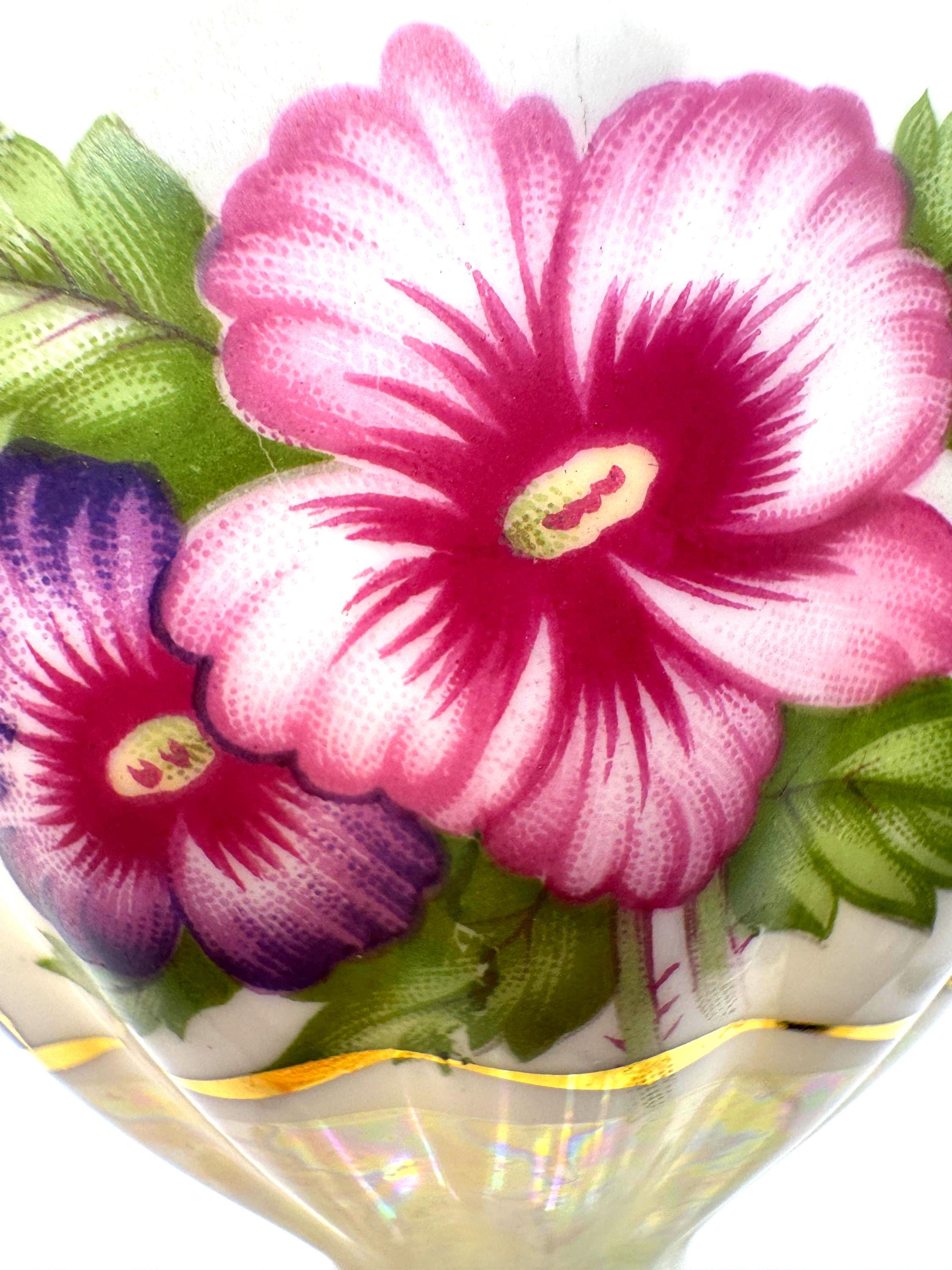 A beautiful duo for display, gifting, or serving---ideal for collectors of iridescent or floral porcelain.