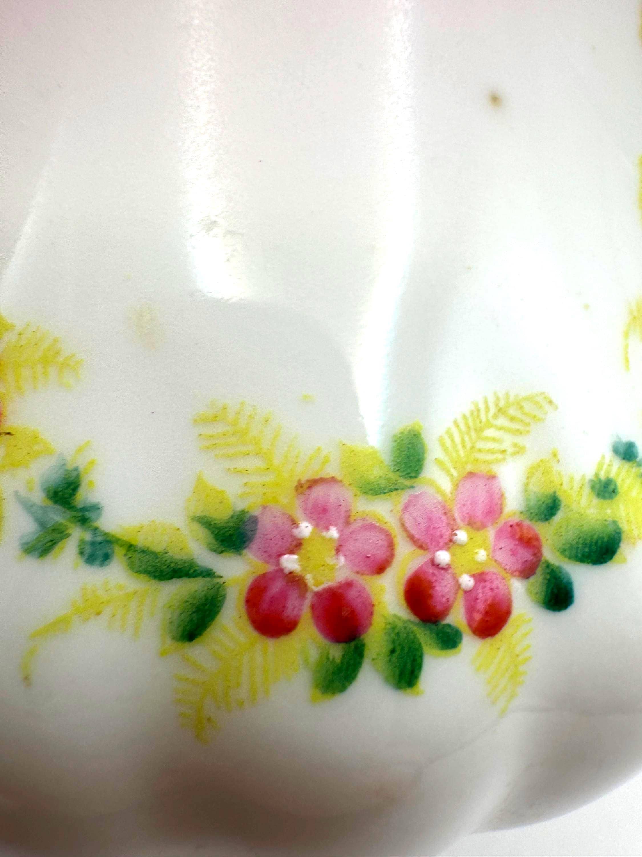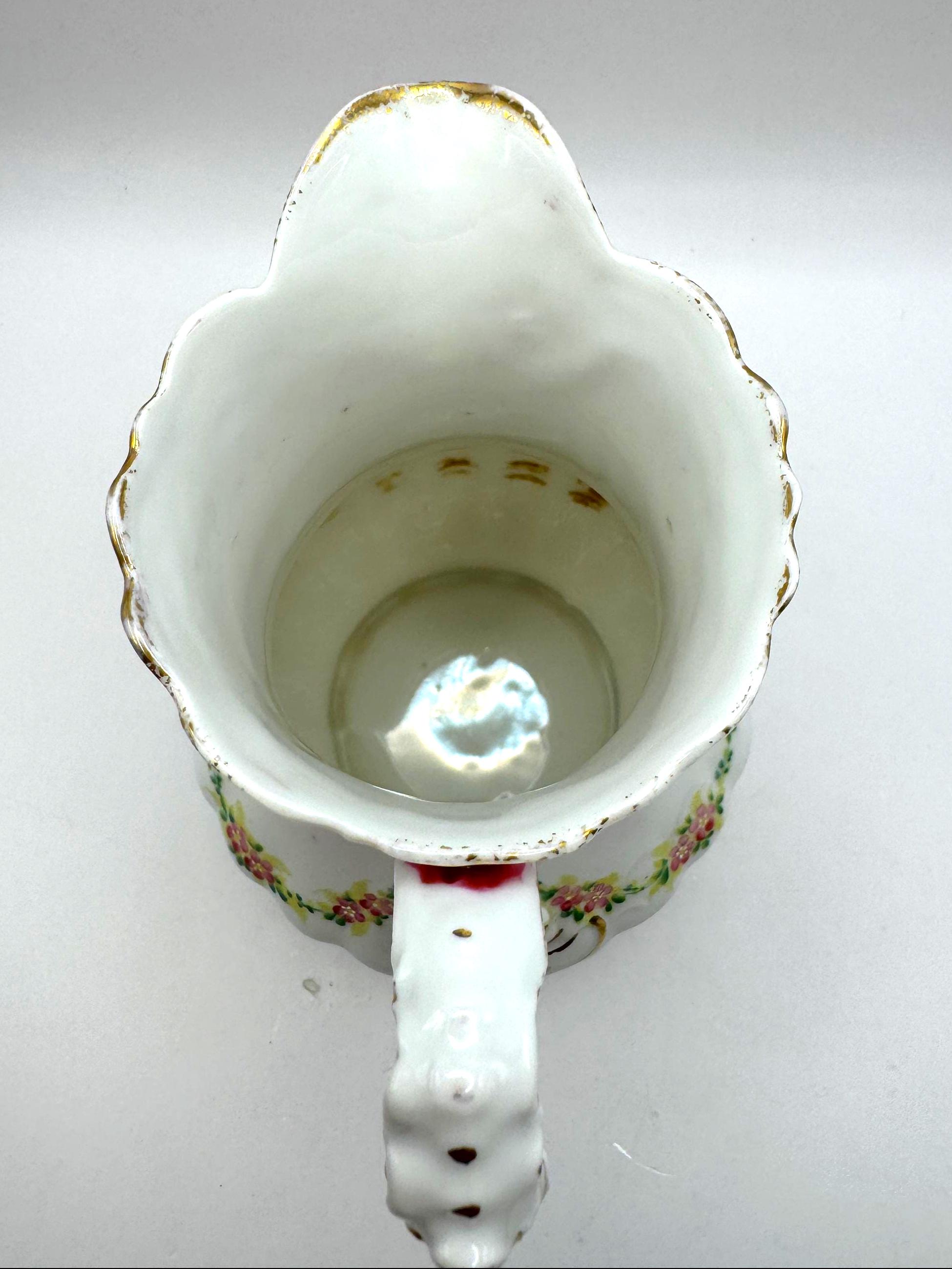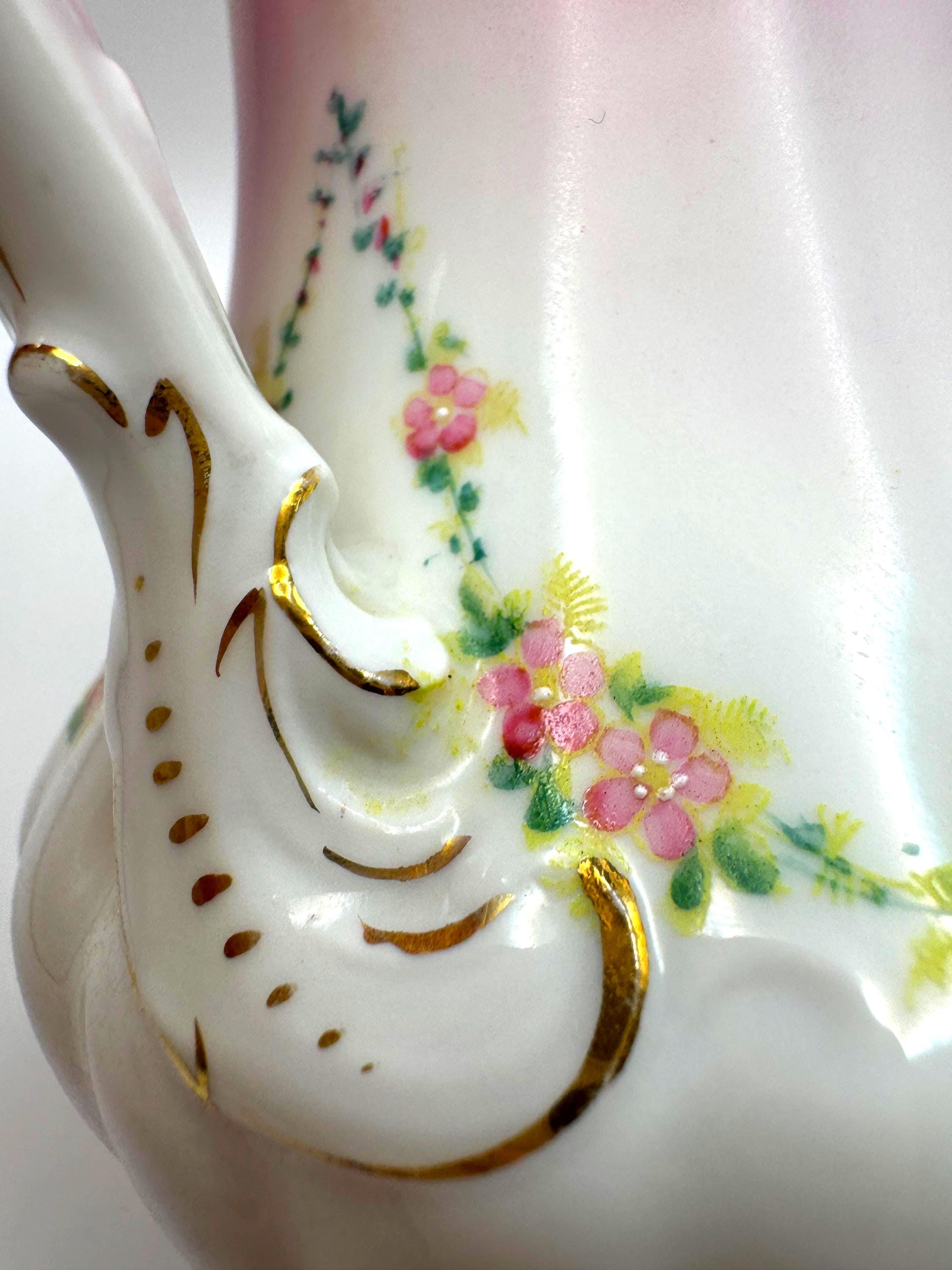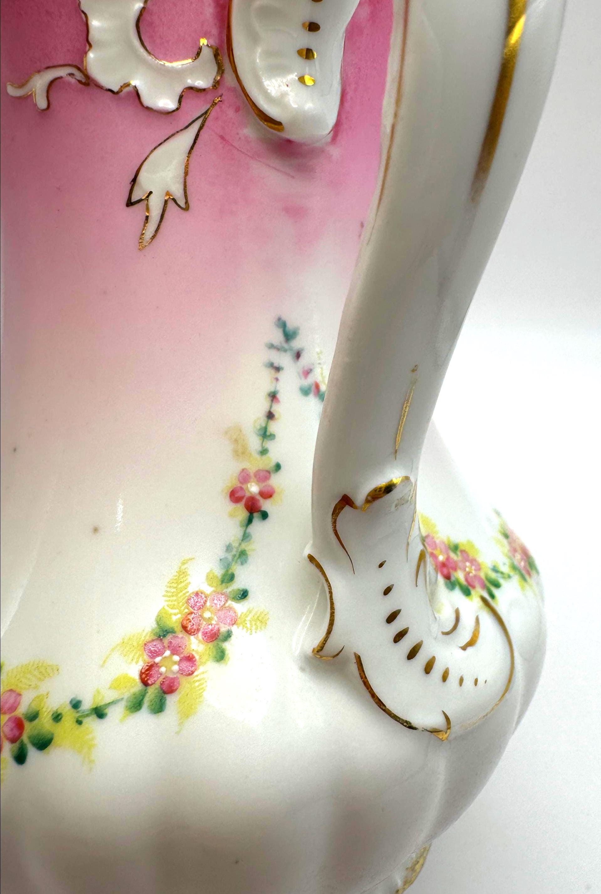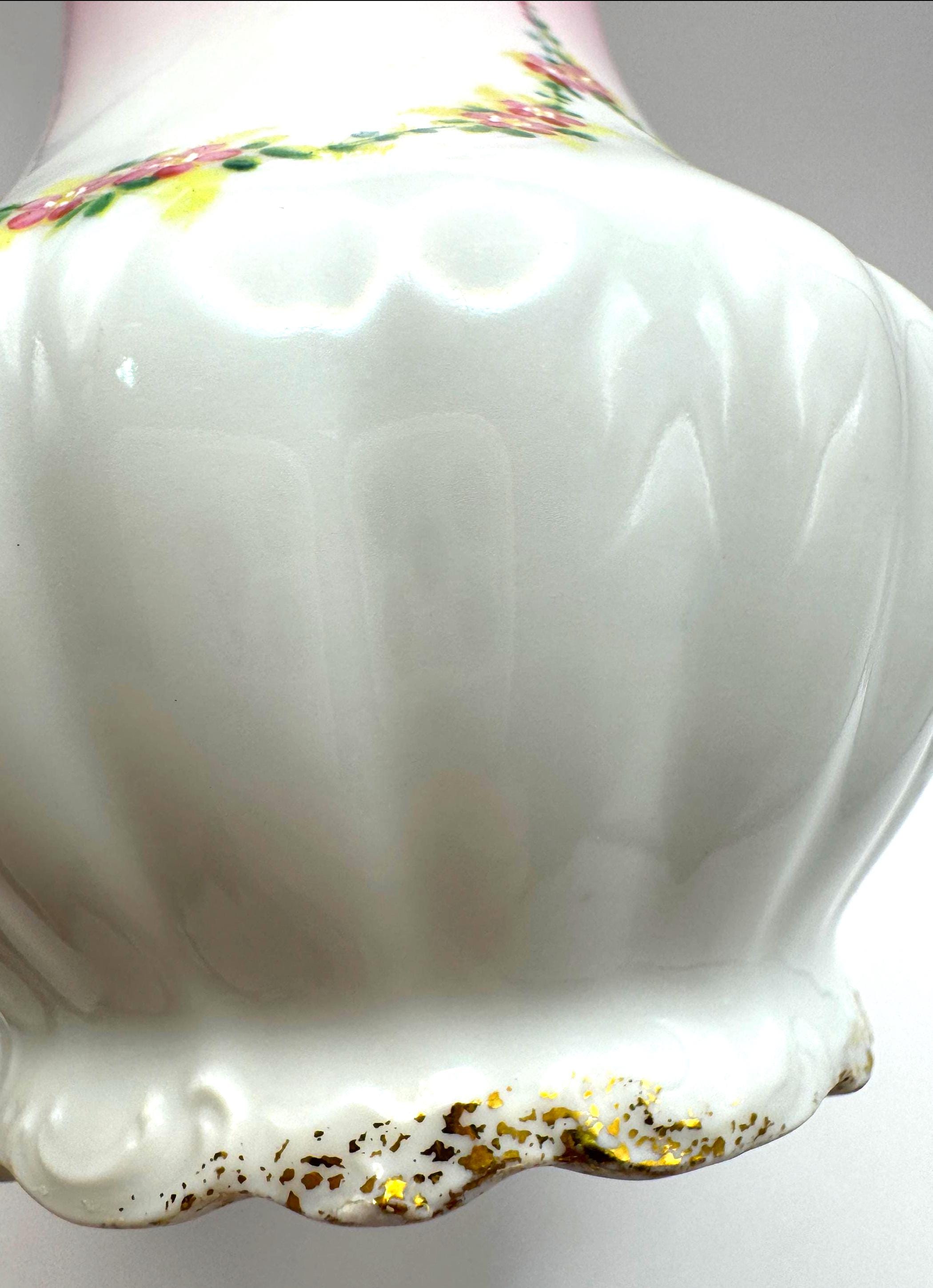 The floral garlands around the body are hand-painted with layered brushwork, shaded petals, soft background washes and raised enamel dot centers. This is a delicate, romantic piece with authentic antique charm. Perfect for Victorian decor, cottagecore styling, or shabby chic homes, or collectors of Austrian and Bohemian porcelain.