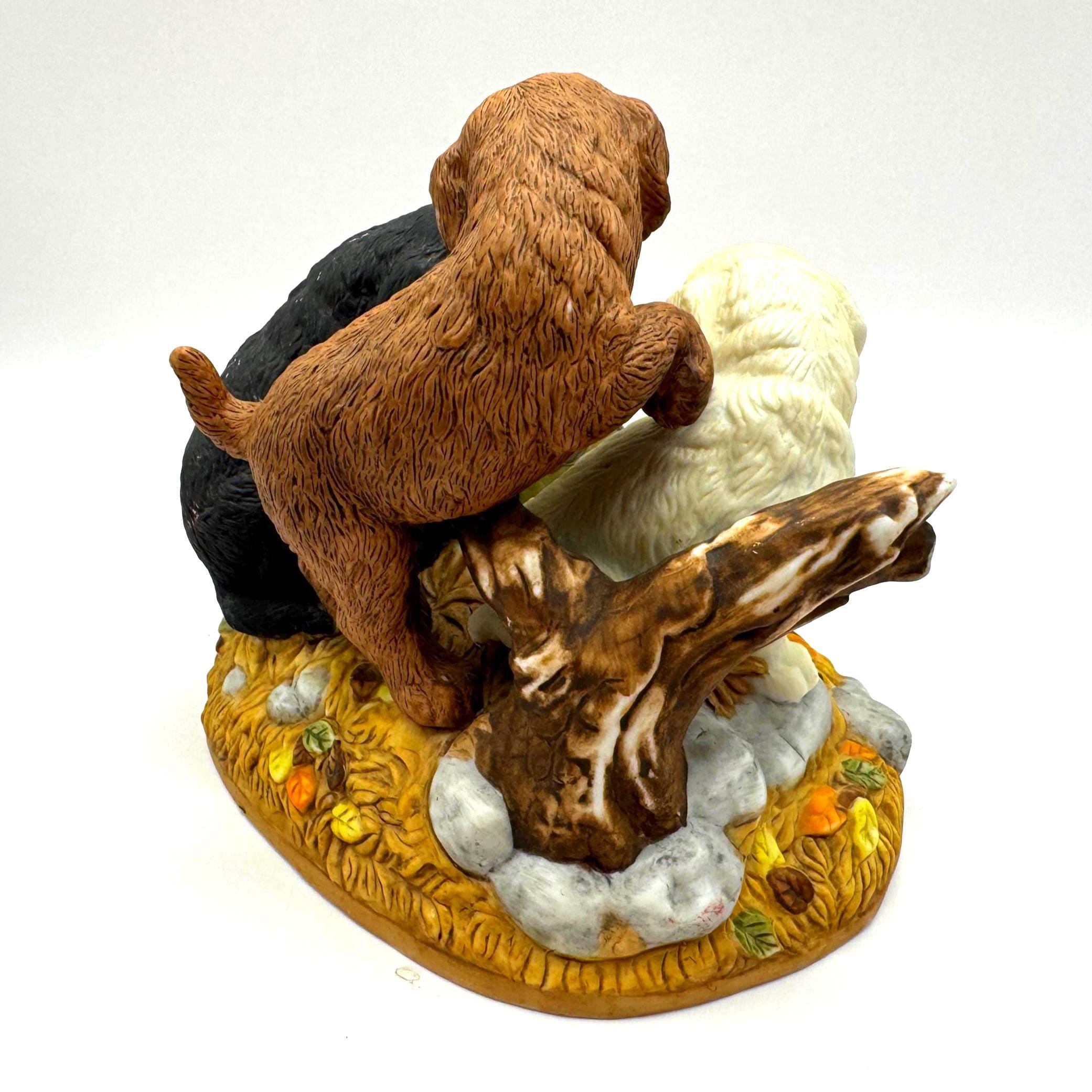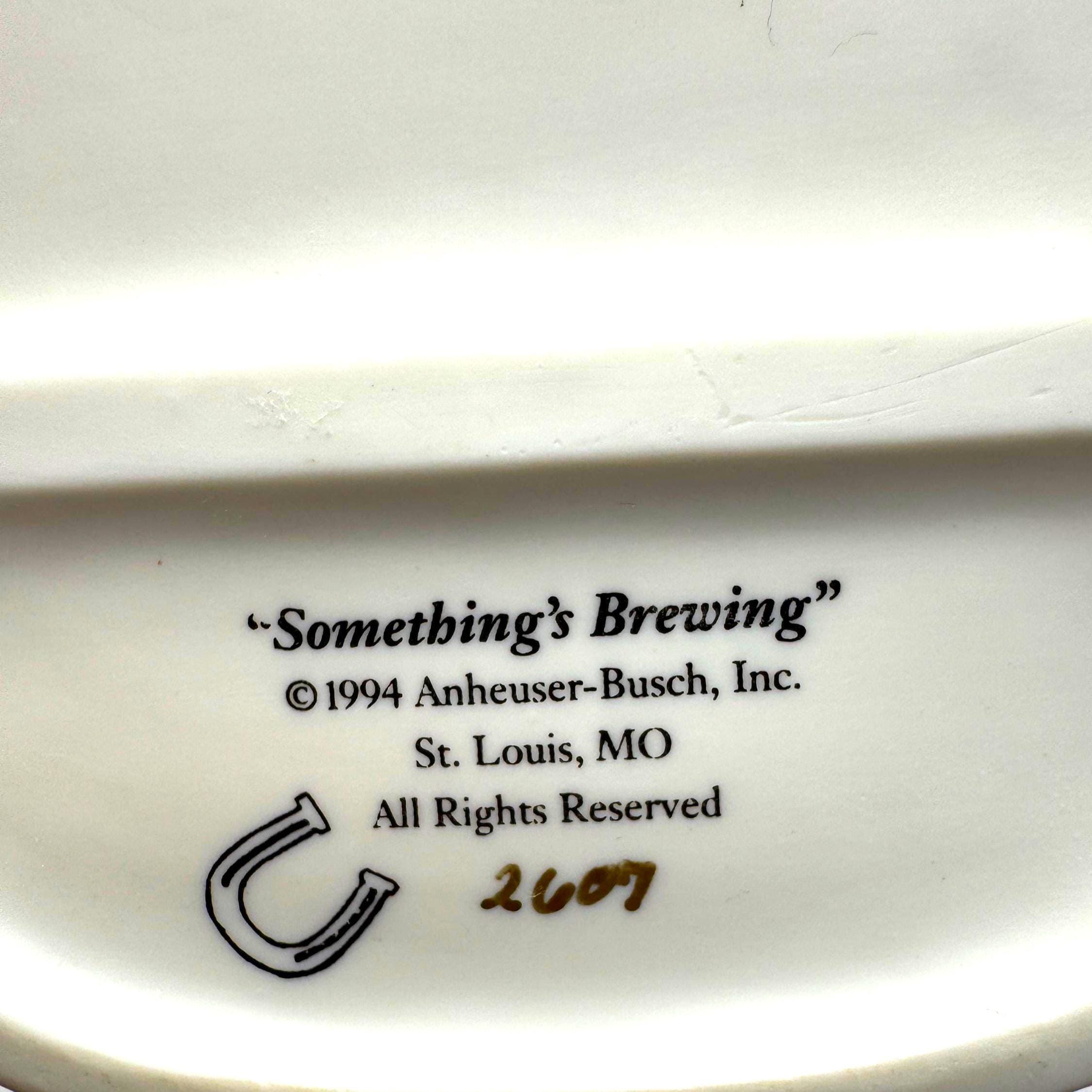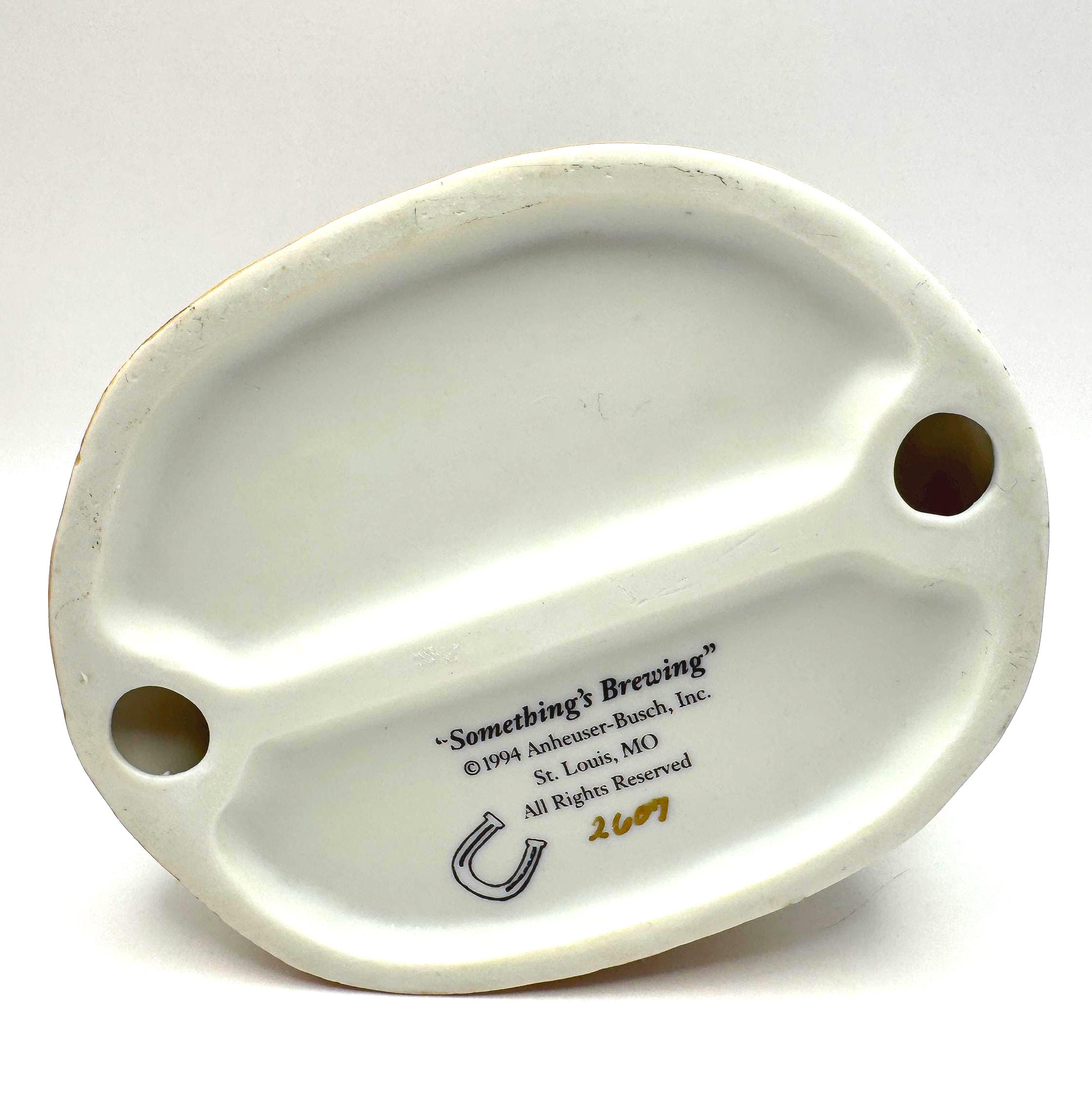 Bring a little mischief and charm into your home with this 1994 Anheuser-Busch “Something’s Brewing” figurine featuring three playful Labrador puppies investigating a camo Budweiser hat and a duck decoy. It’s humorous, nostalgic, and perfect for collectors of breweriana, dog figurines, and Bud memorabilia.