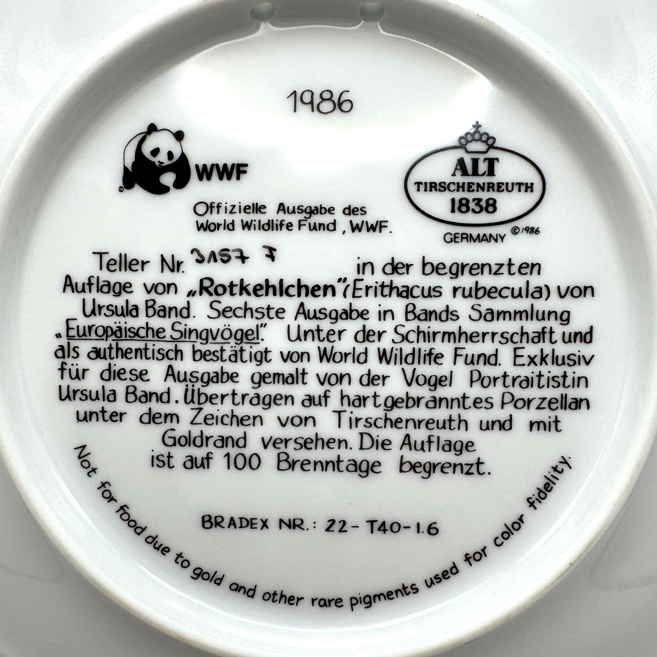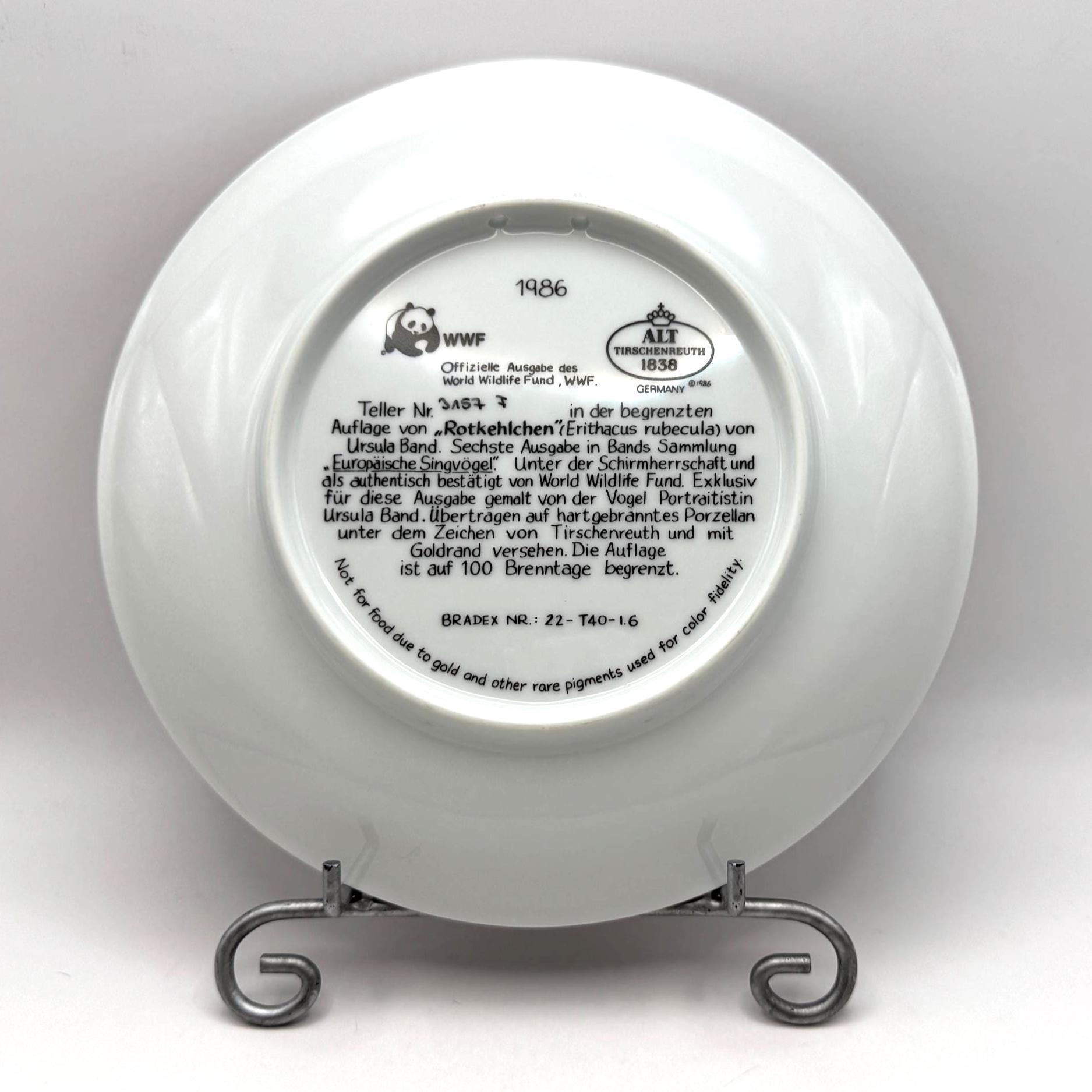 Bring a touch of classic European charm to your décor with this 1986 Alt Tirschenreuth “Rotkehlchen / European Robin” collector plate, an officially licensed WWF (World Wildlife Fund) issue from the European Songbirds series.