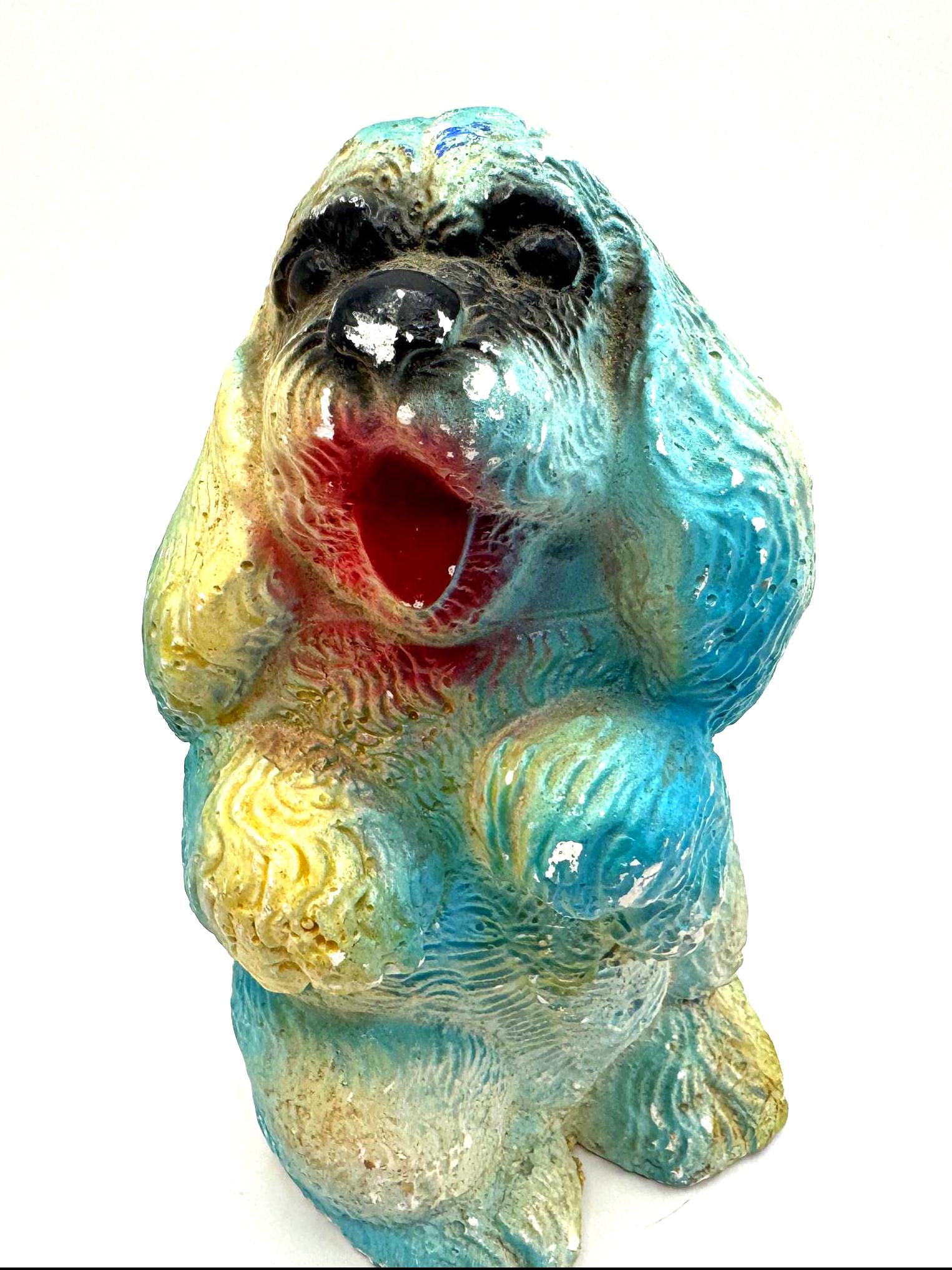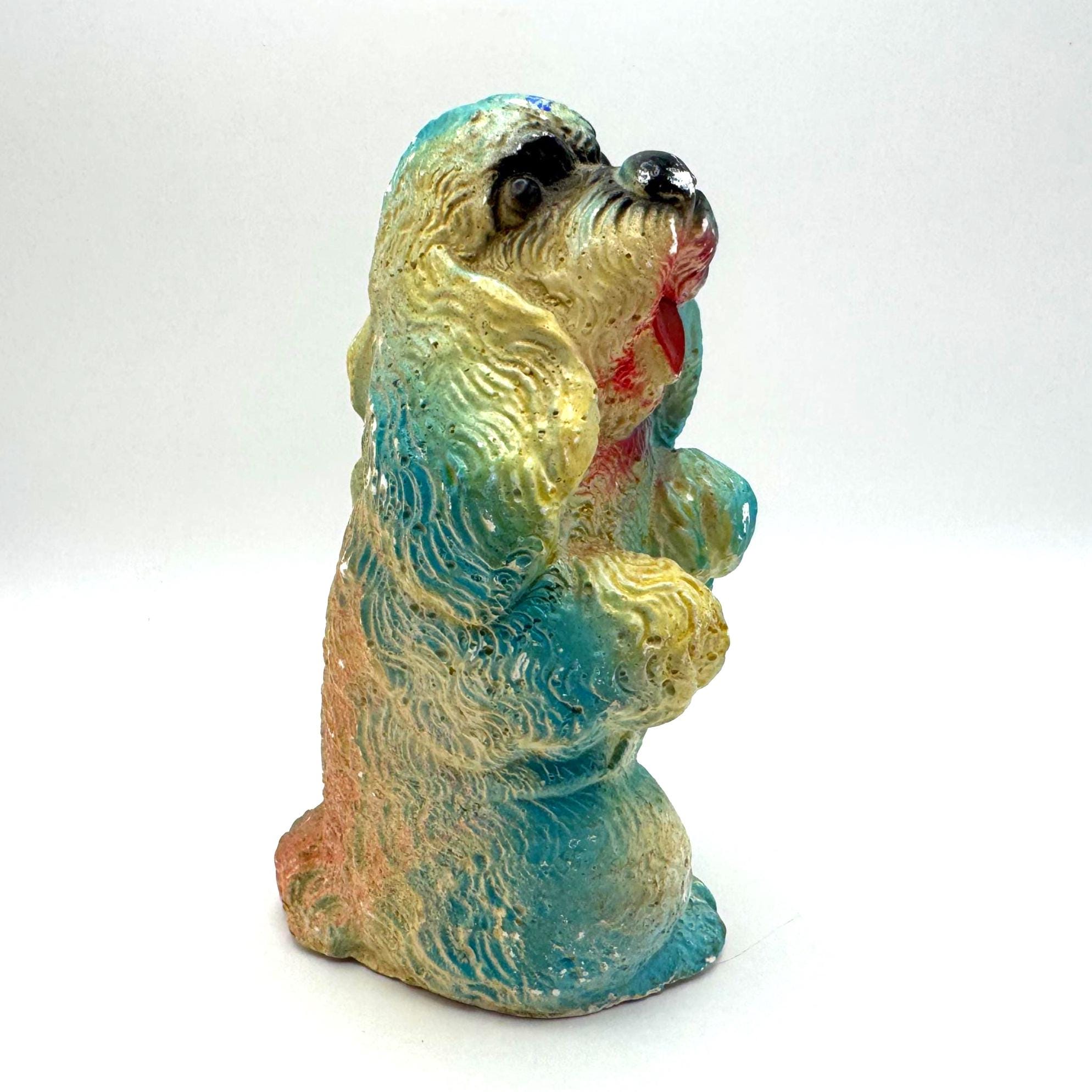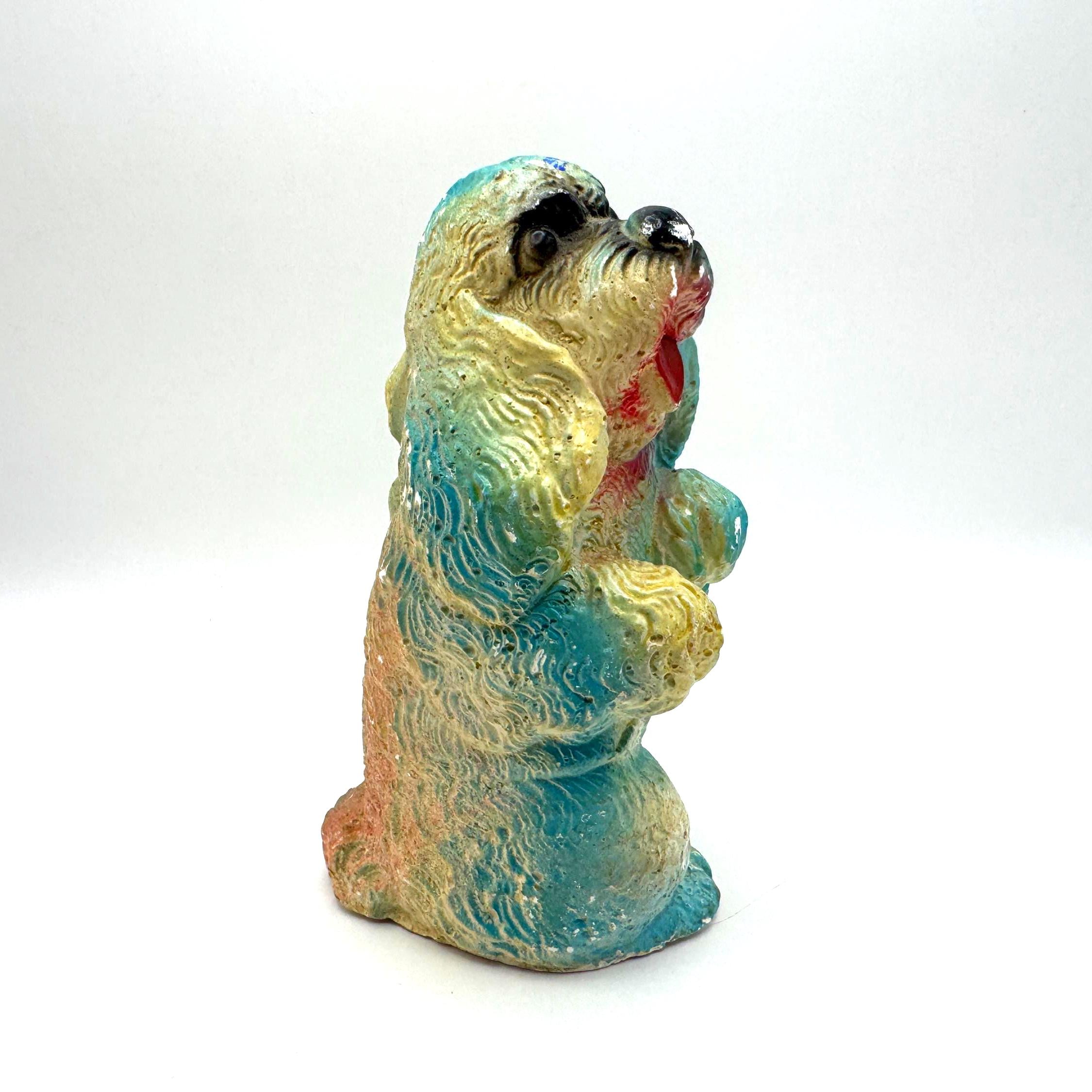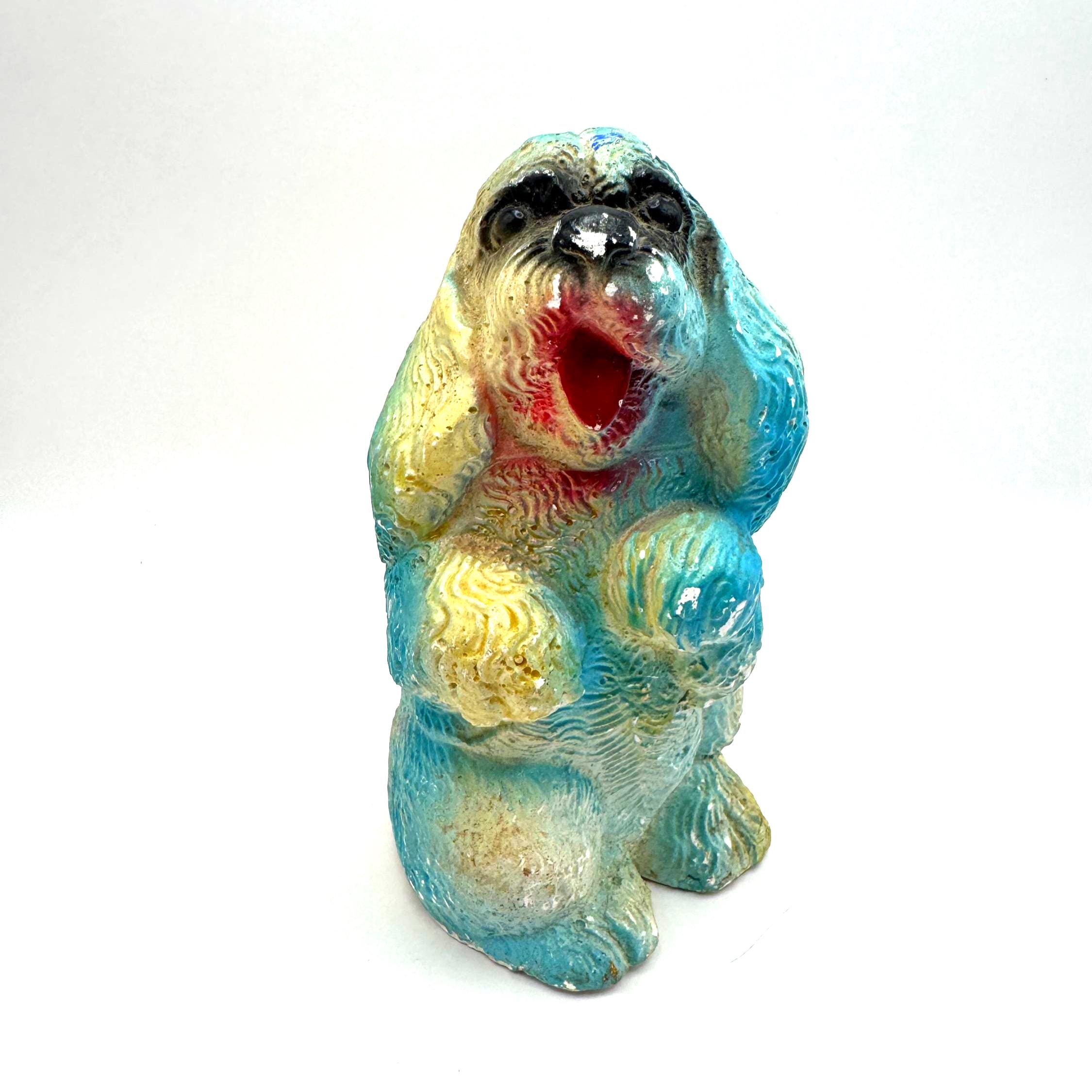 Bring home a piece of mid-century charm with this vintage chalkware dog figurine, a colorful 1950s–60s carnival-style piece full of personality and nostalgic charm.