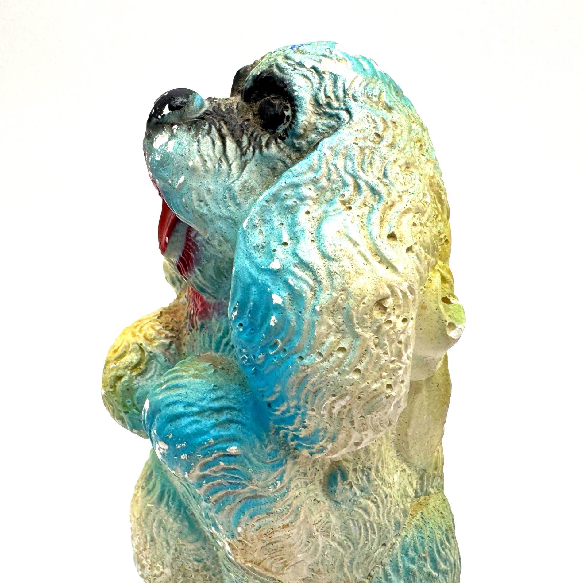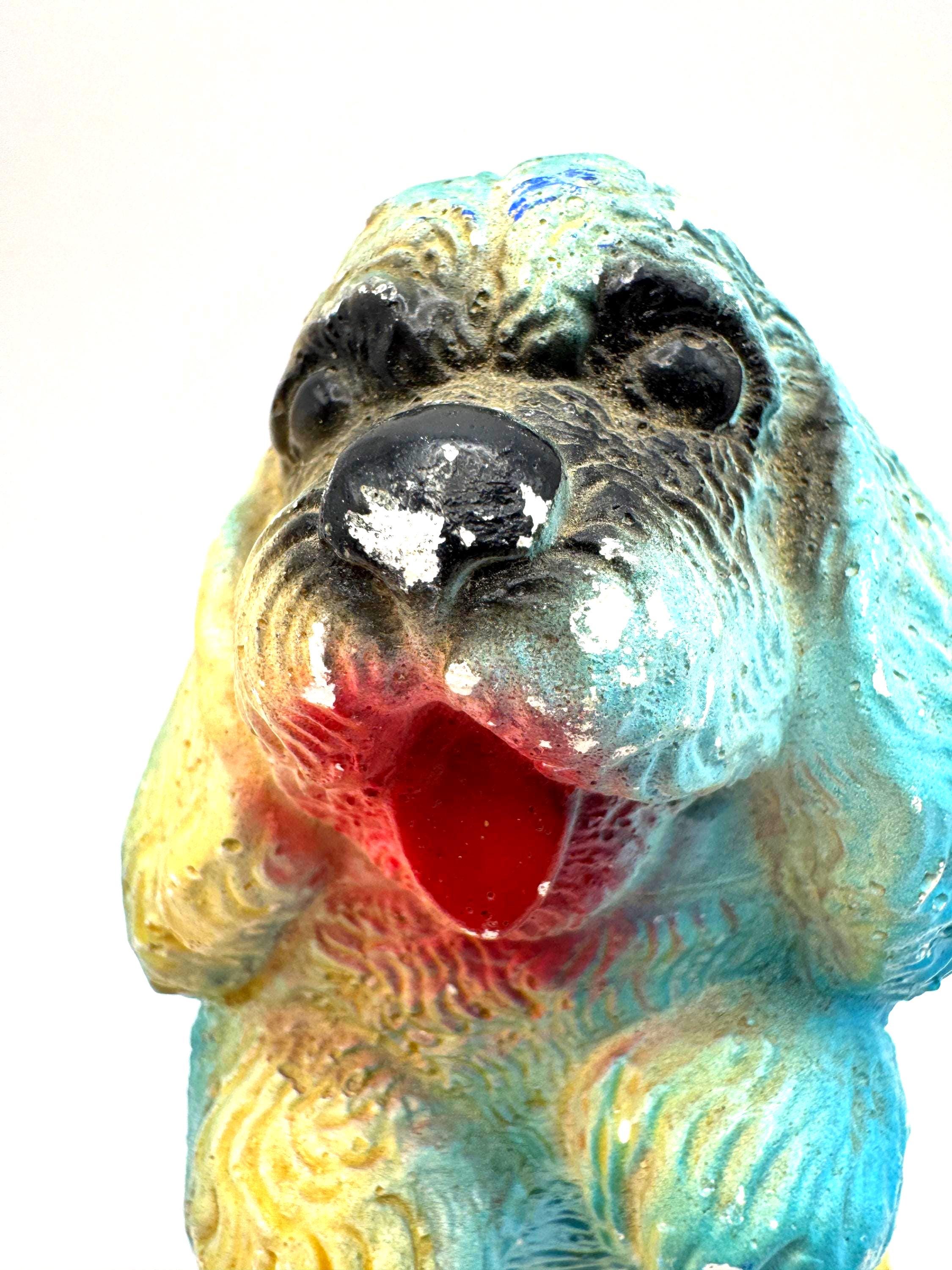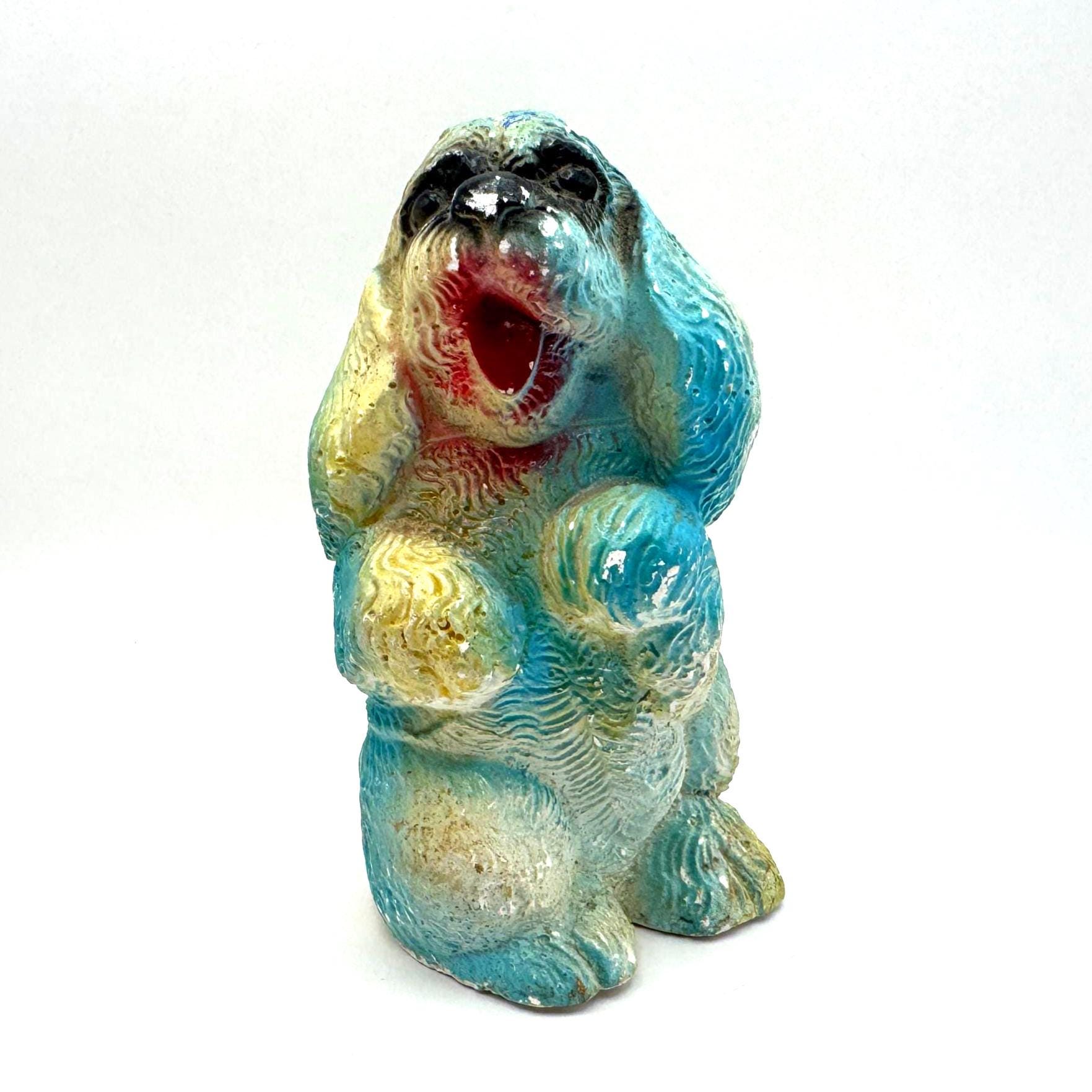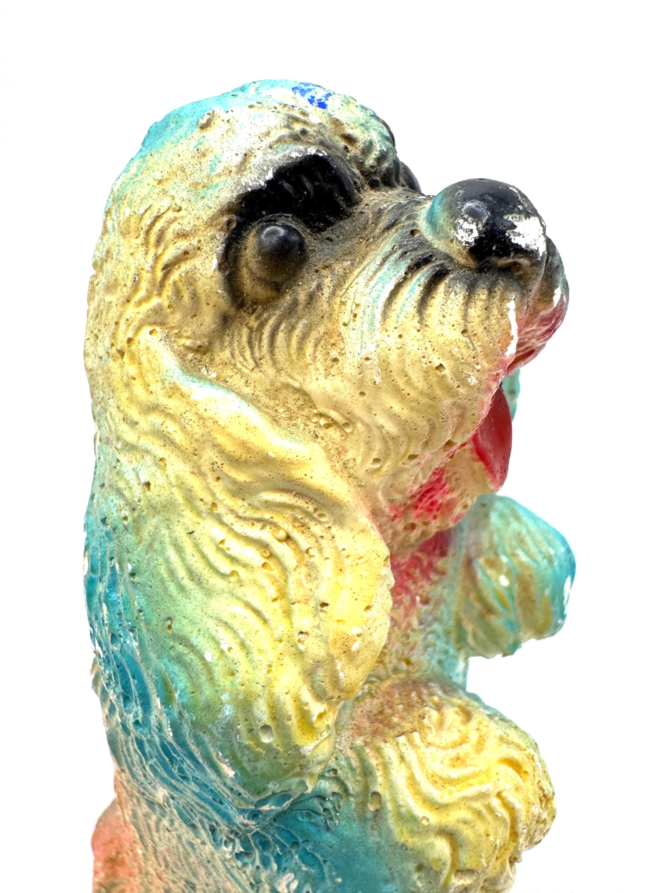 Bring home a piece of mid-century charm with this vintage chalkware dog figurine, a colorful 1950s–60s carnival-style piece full of personality and nostalgic charm.