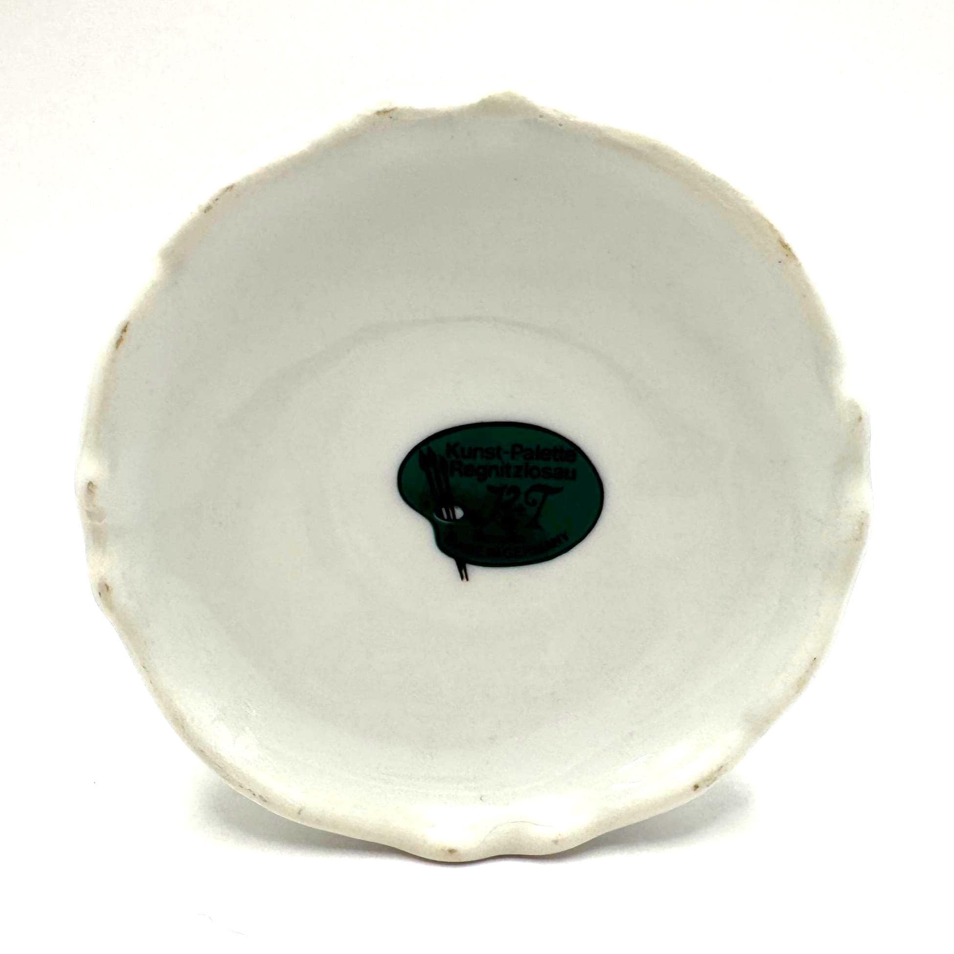 Original fired-on green overglaze Kunst-Palette Regnitzlosau (K+T) Bavaria, Made in Germany mark on the base.