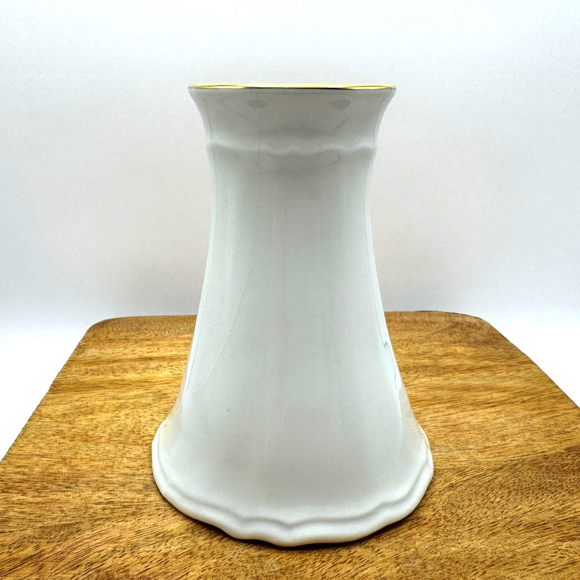 The vase has a gently flared shape and a subtle scalloped base, making it a timeless accent for traditional, cottage, or European-style décor.
