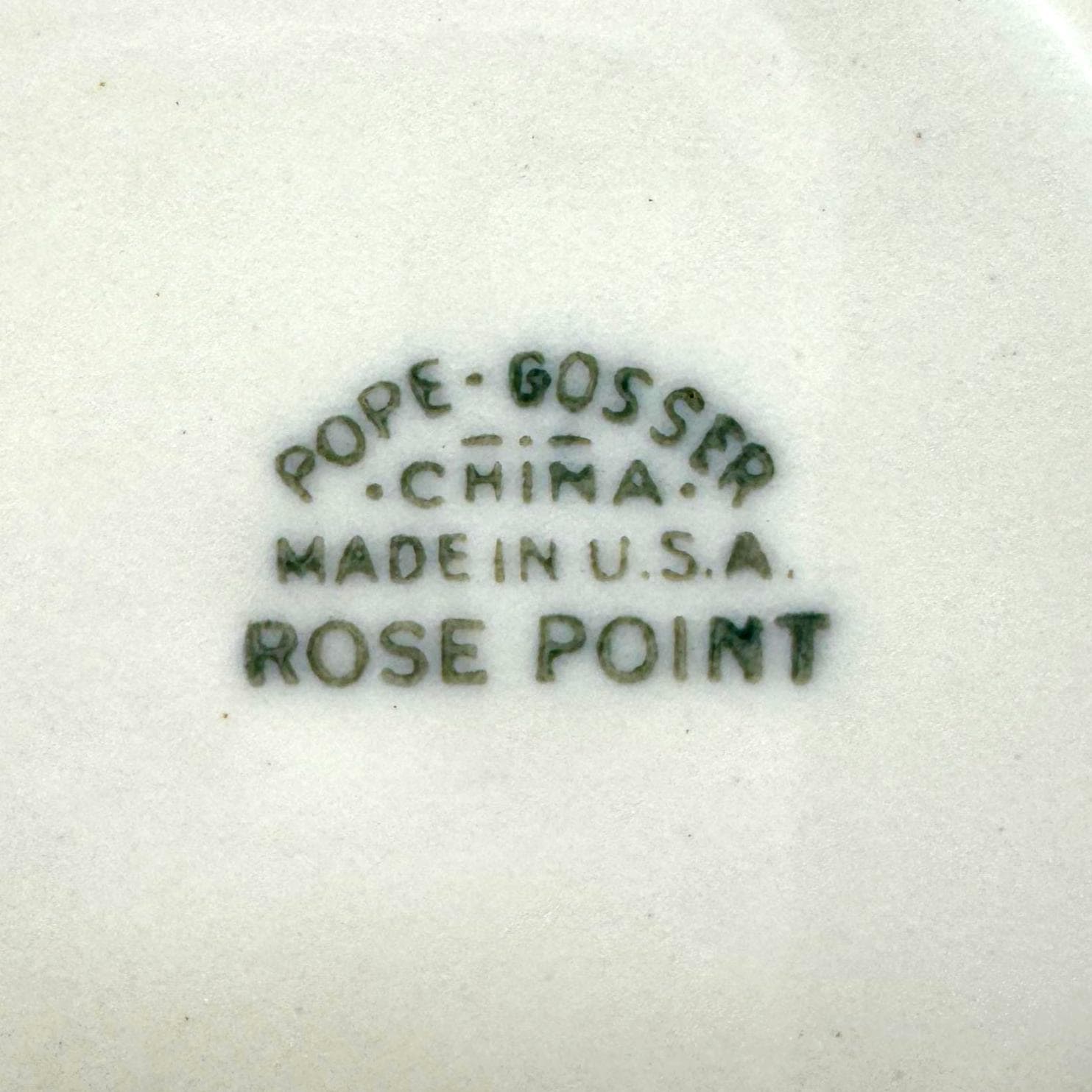 Rose Point was one of Pope-Gosser’s most popular mid-century patterns and remains a favorite for collectors, bridal décor, and elegant tea settings.