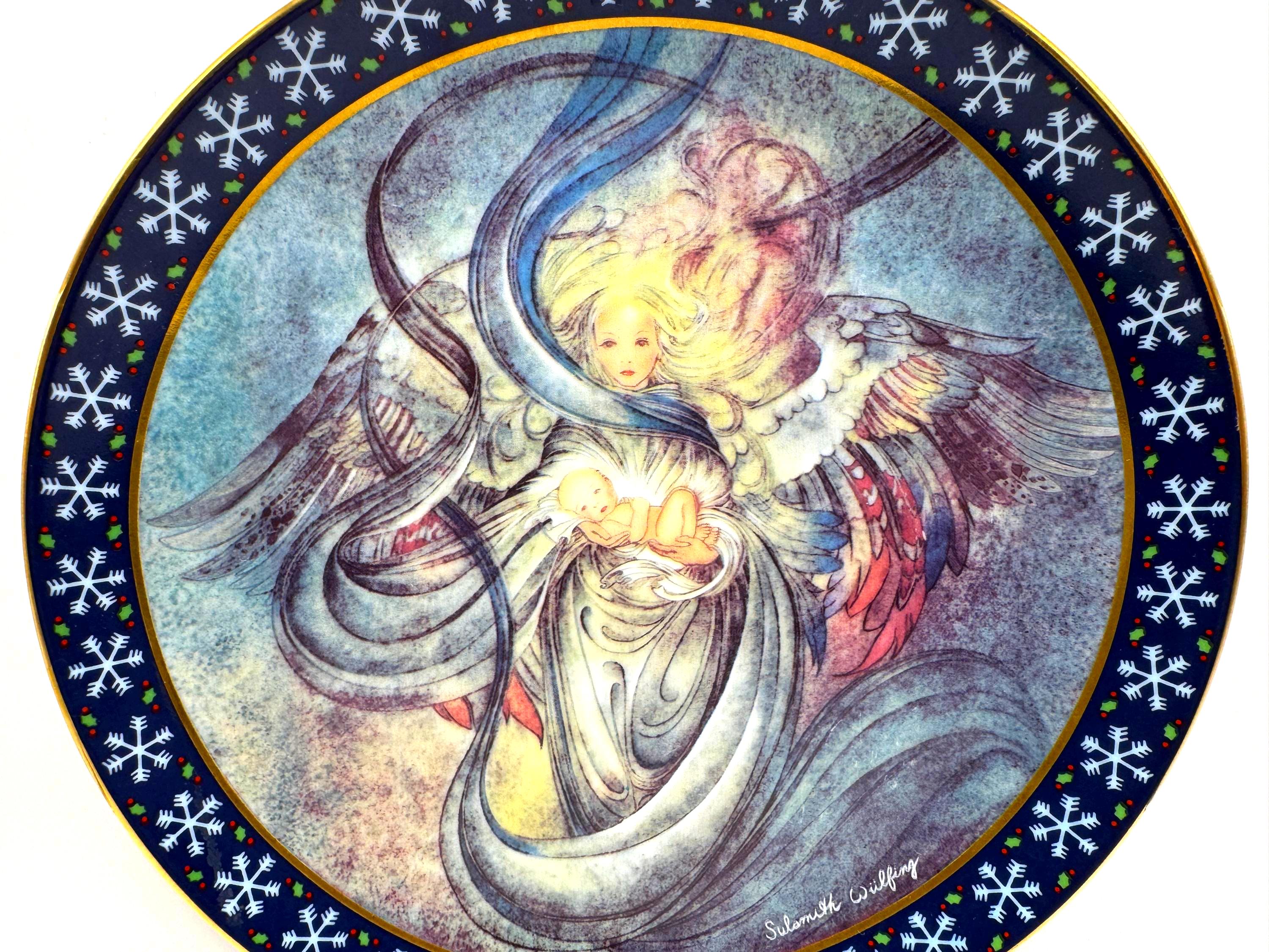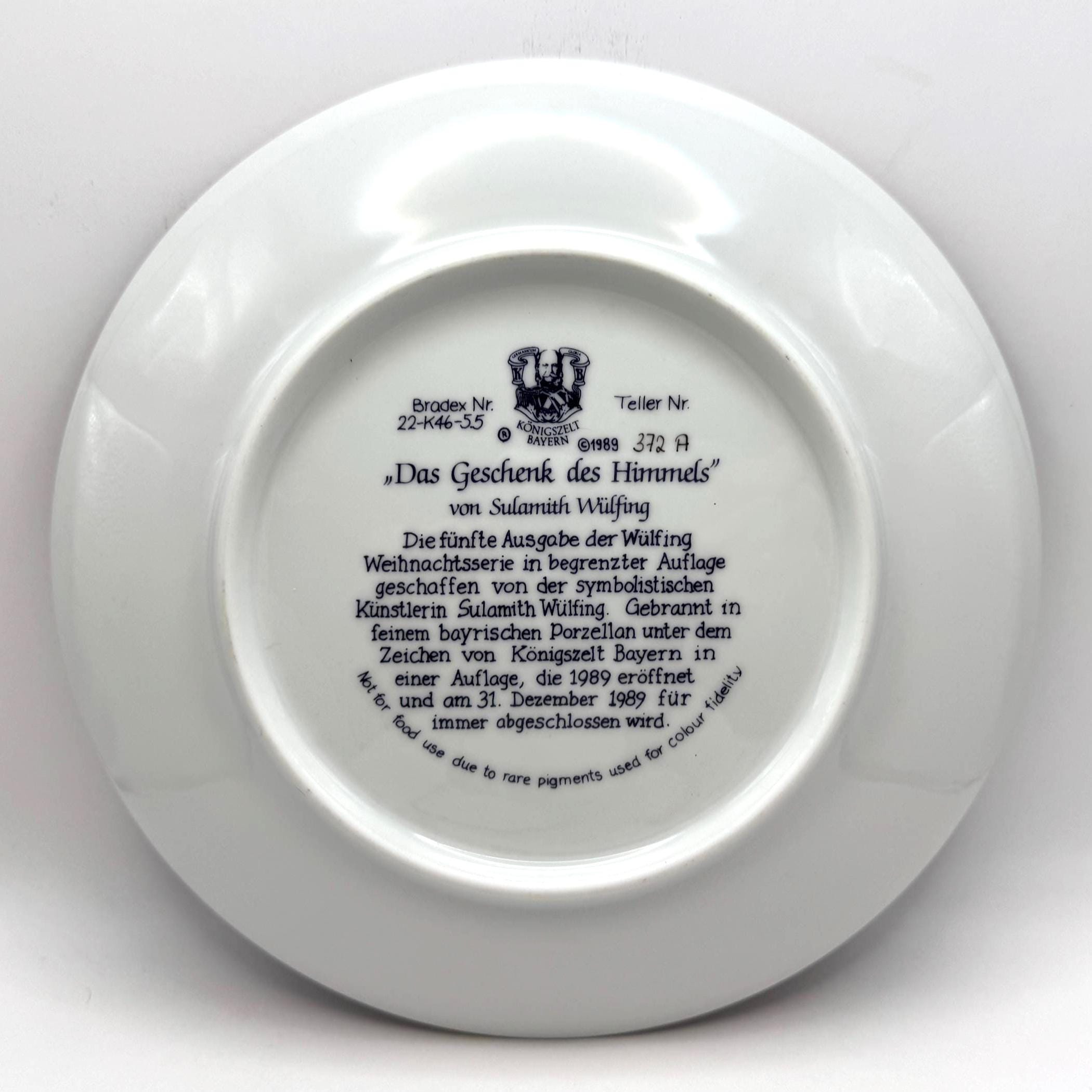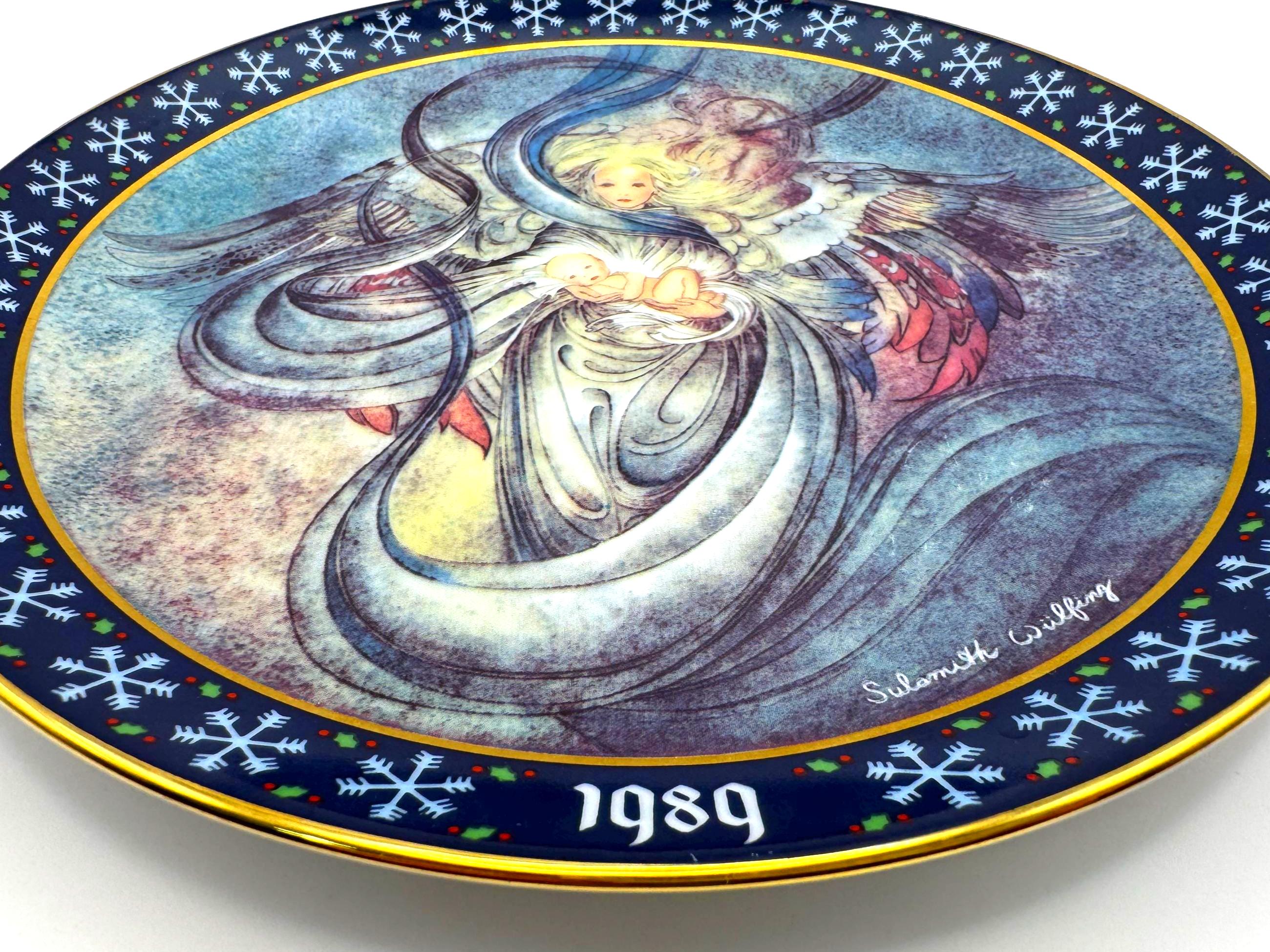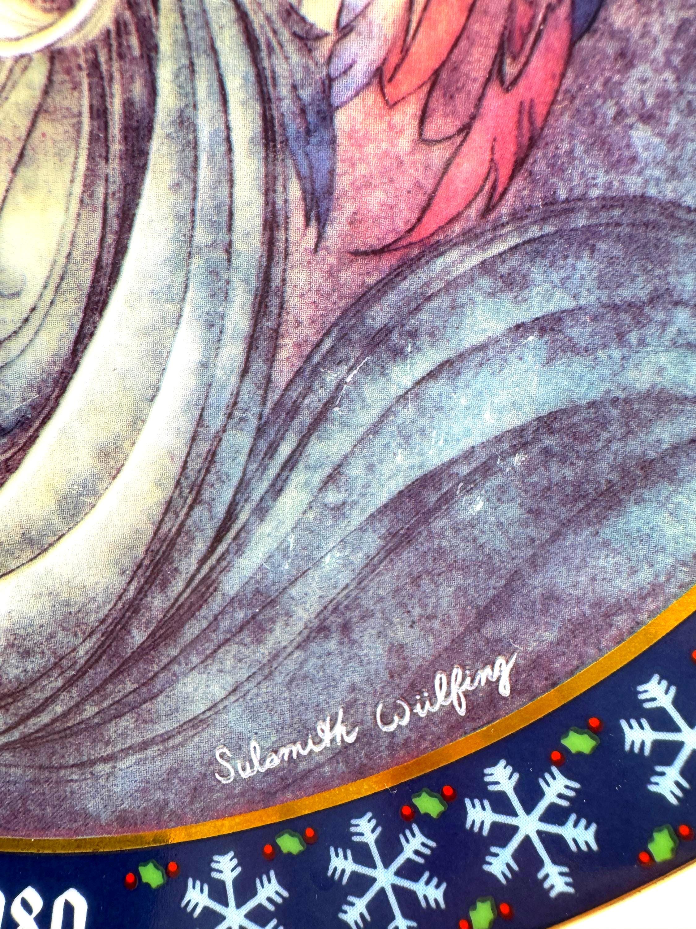 Beautiful vintage 1989 Christmas collector plate featuring the ethereal angel artwork of Sulamith Wülfing. This is the larger 9½” diameter plate from Wülfing’s Christmas series, produced in fine Bavarian porcelain by Königszelt Bayern in Germany.