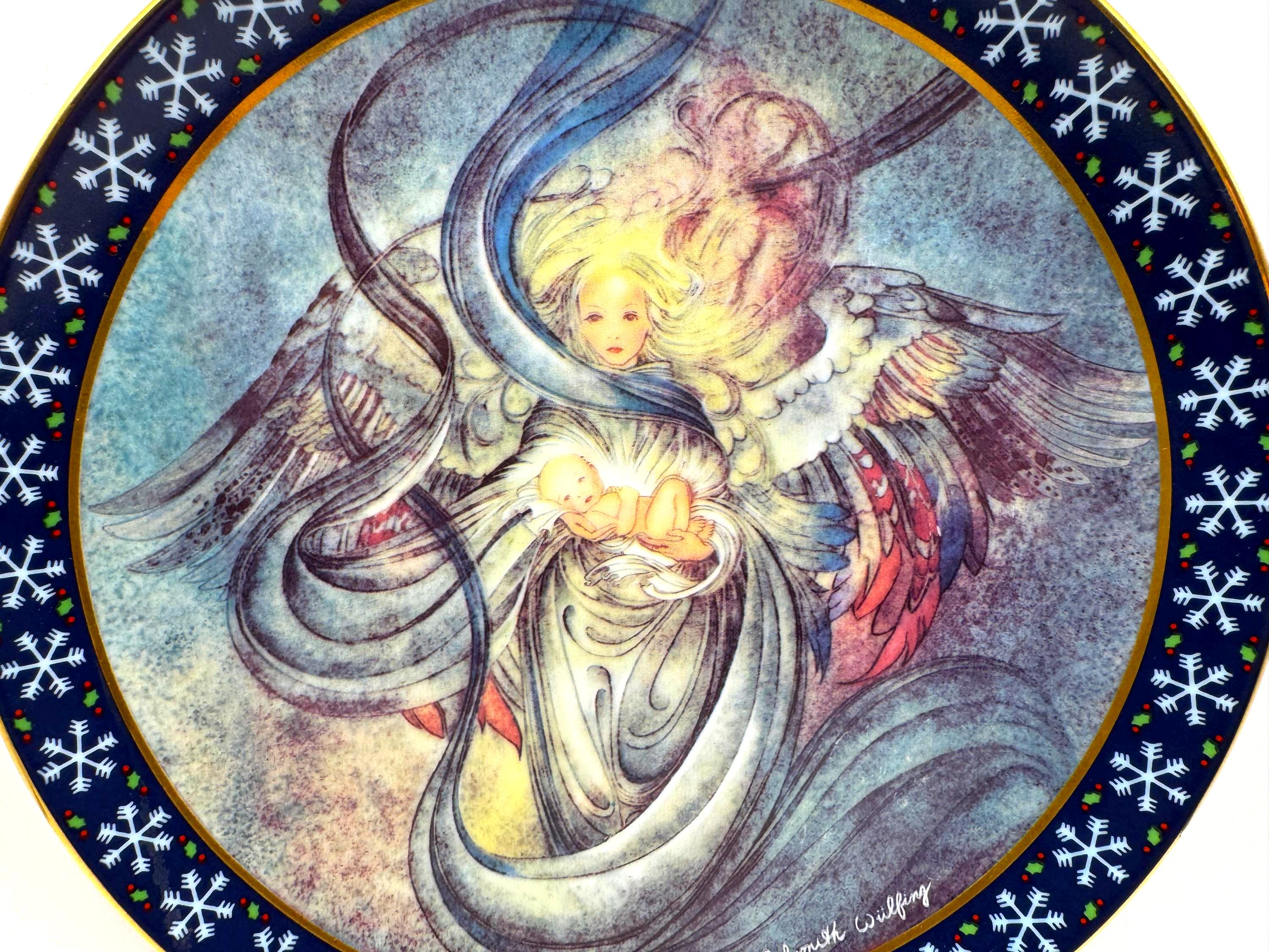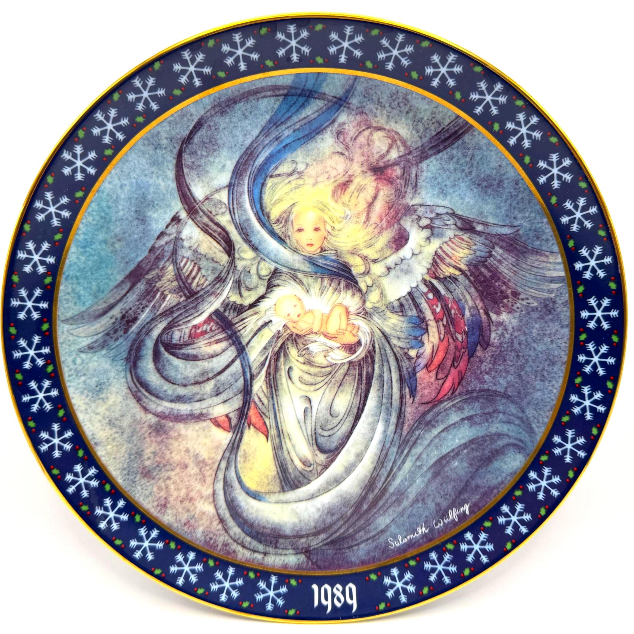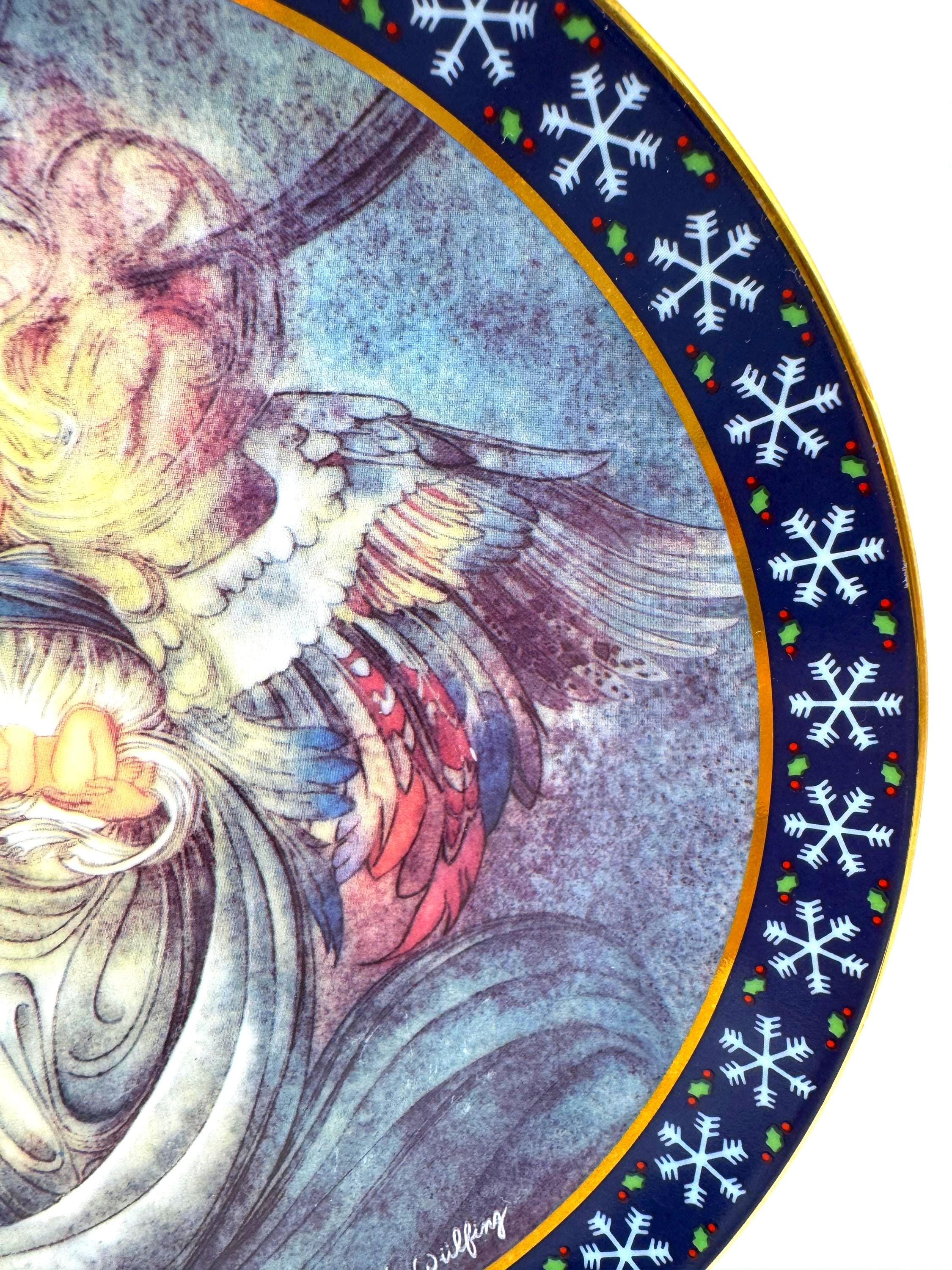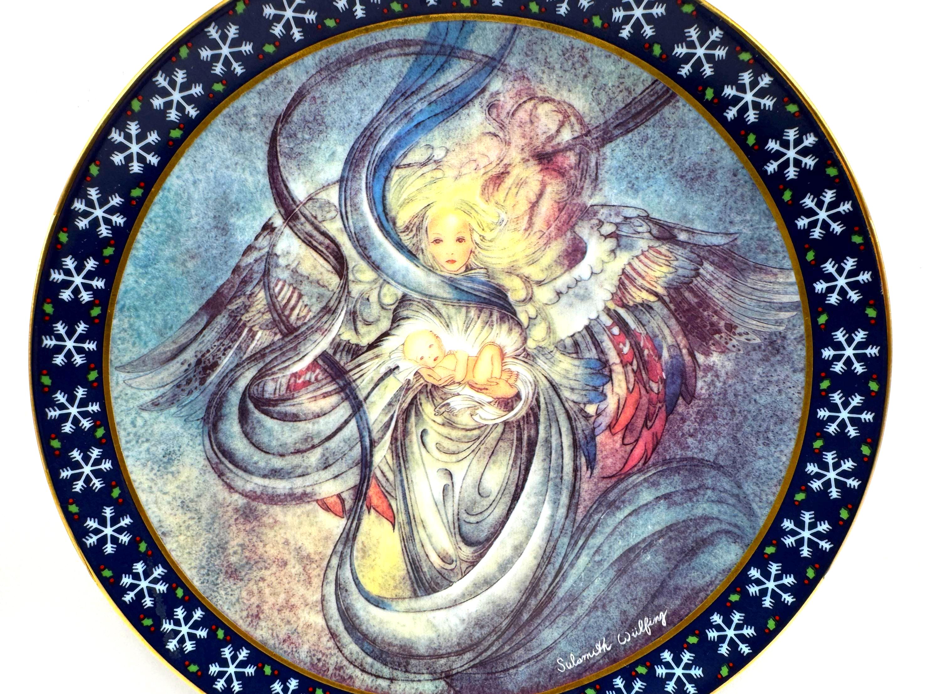 Beautiful vintage 1989 Christmas collector plate featuring the ethereal angel artwork of Sulamith Wülfing. This is the larger 9½” diameter plate from Wülfing’s Christmas series, produced in fine Bavarian porcelain by Königszelt Bayern in Germany.