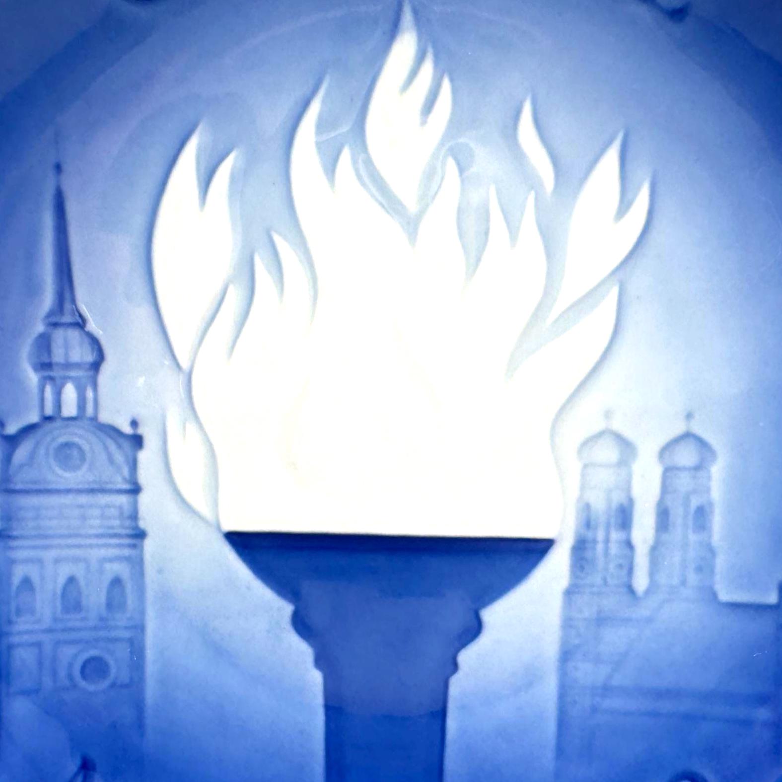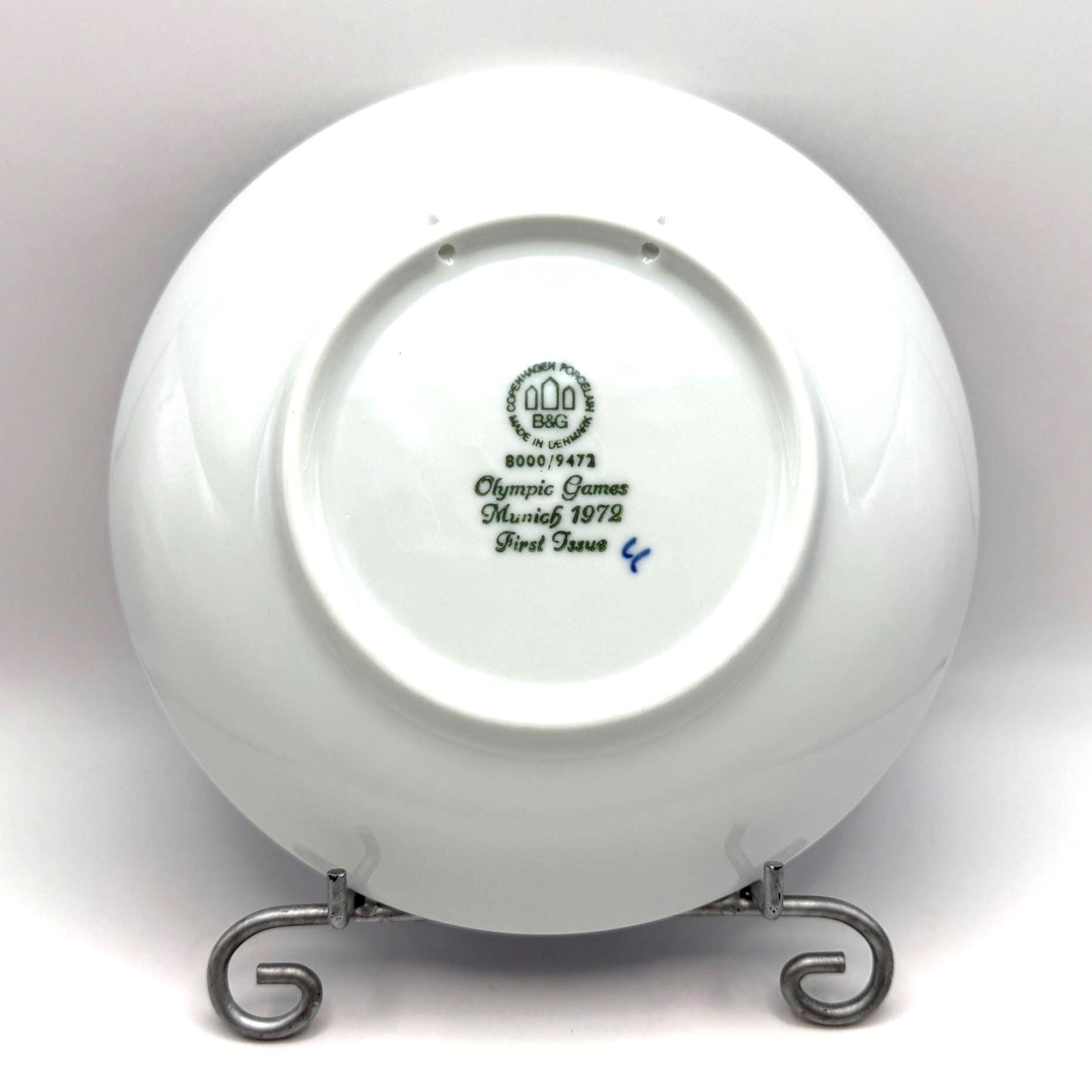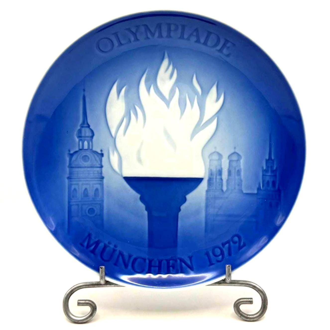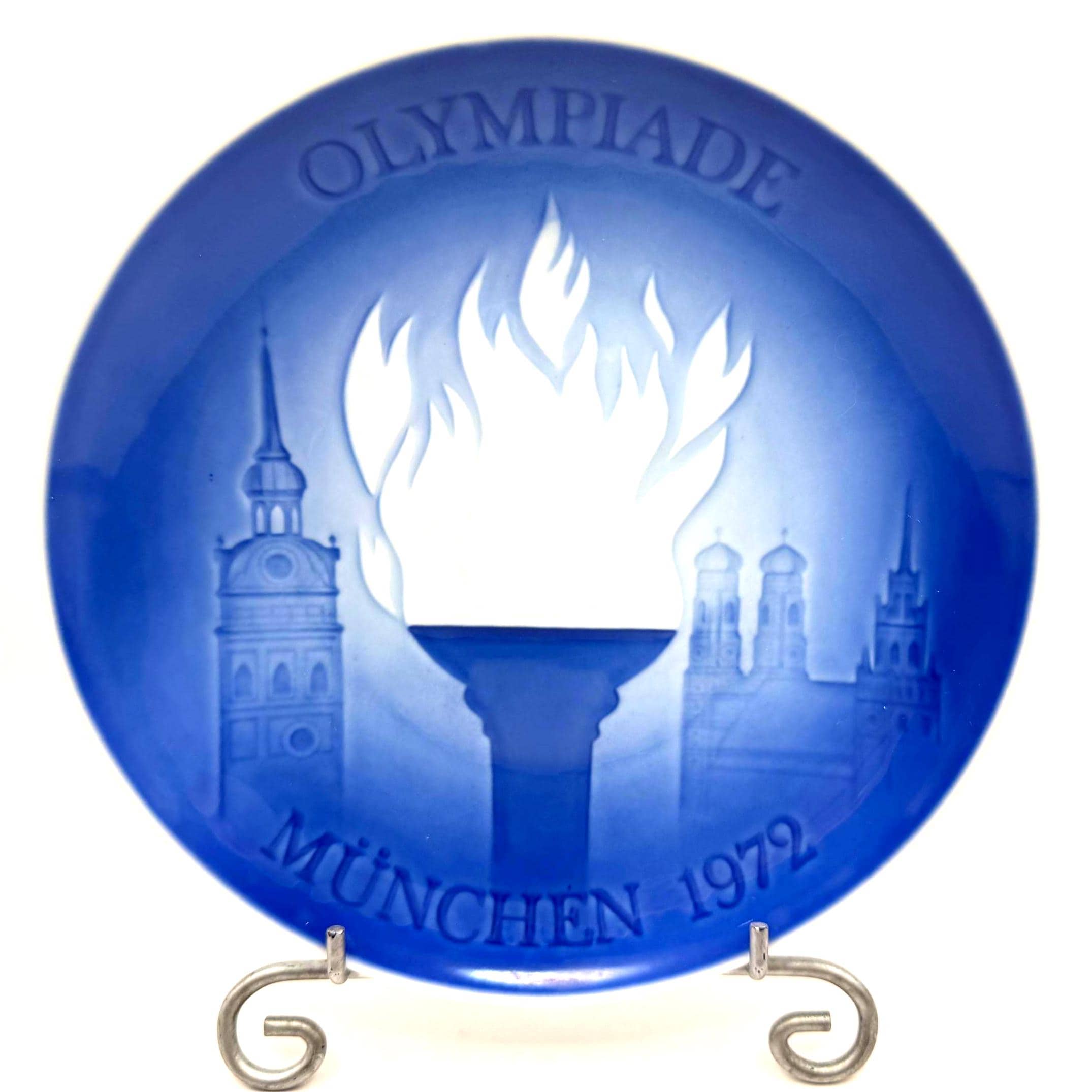 Commemorative porcelain plate celebrating the 1972 Olympic Games in Munich, produced by Bing & Grondahl (B&G) of Copenhagen, Denmark.