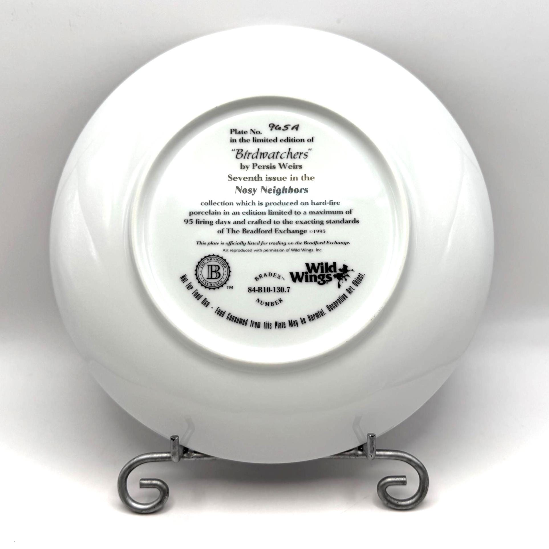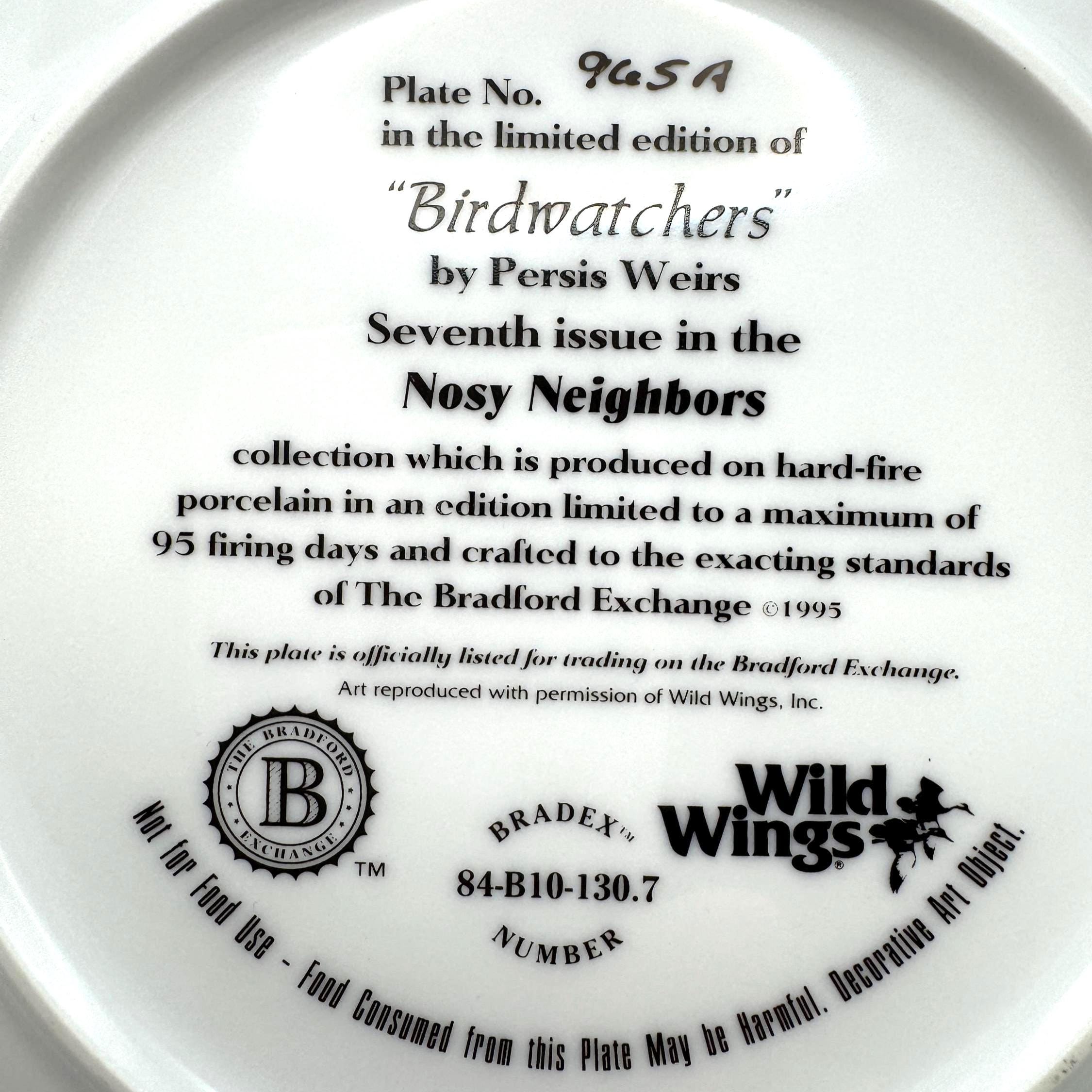 This piece is the Seventh Issue in the “Nosy Neighbors” collection, produced in 1995 on hard-fired porcelain. It is clearly marked on the back and was officially listed for trading on The Bradford Exchange.