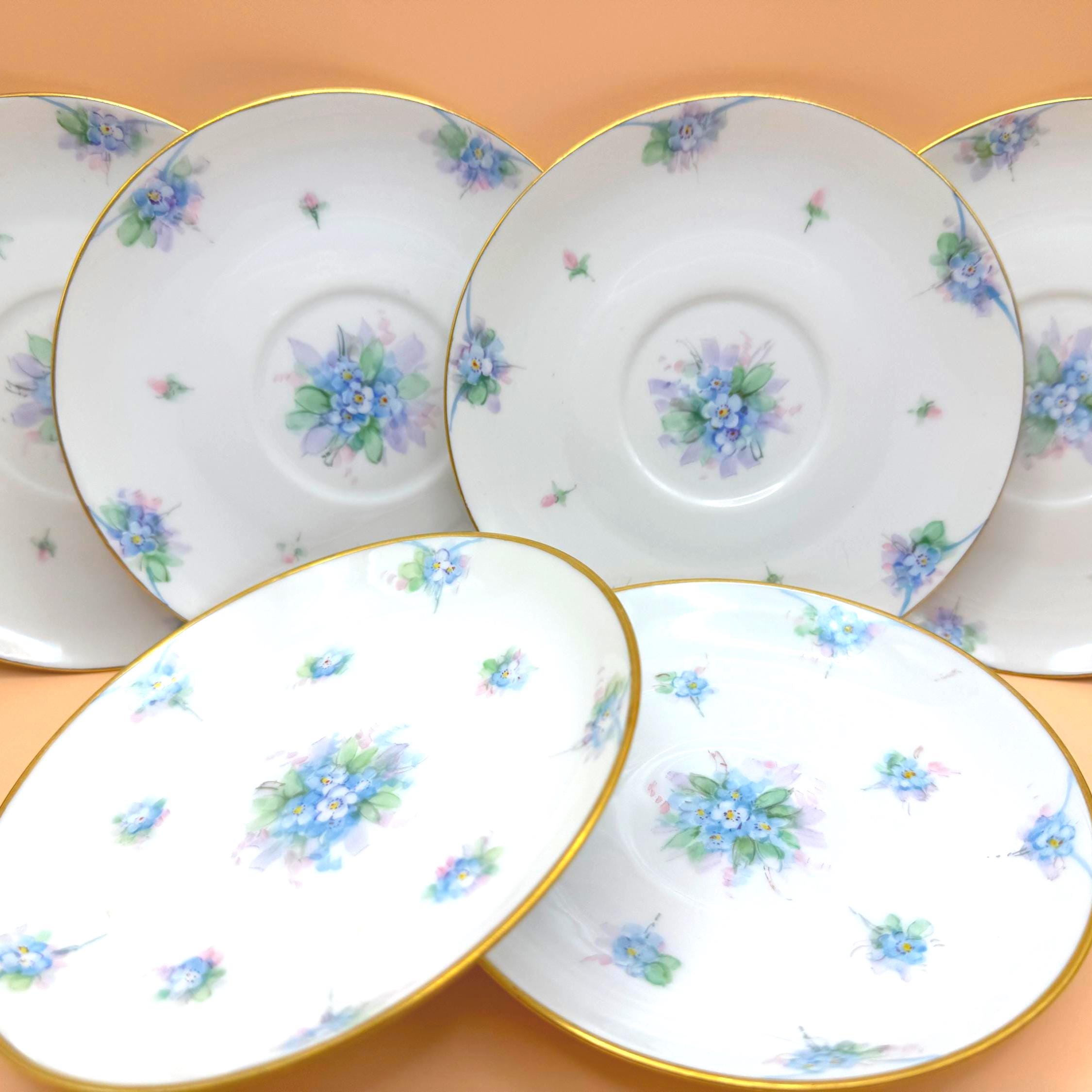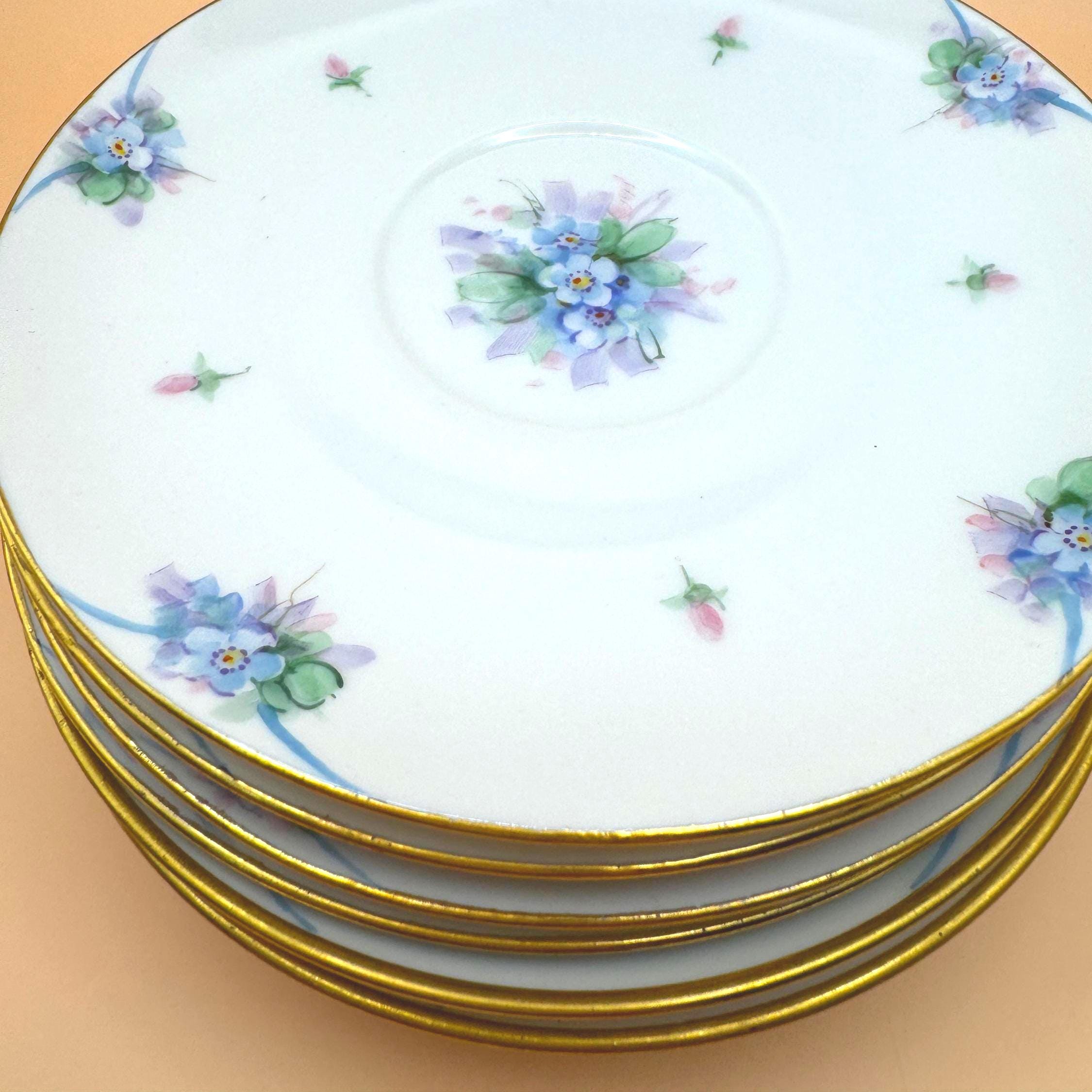 🪻CONDITION: Excellent vintage condition. No chips or cracks. Light age appropriate wear consistent with vintage porcelain. Please note: the saucers are white; any blue tint seen in photos is due to lighting and the natural translucency of porcelain. (See photos for more detail)